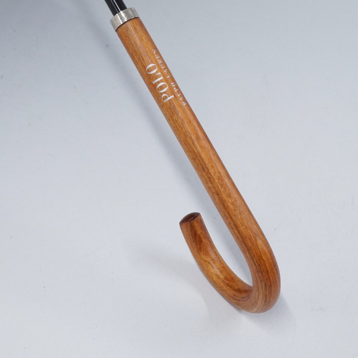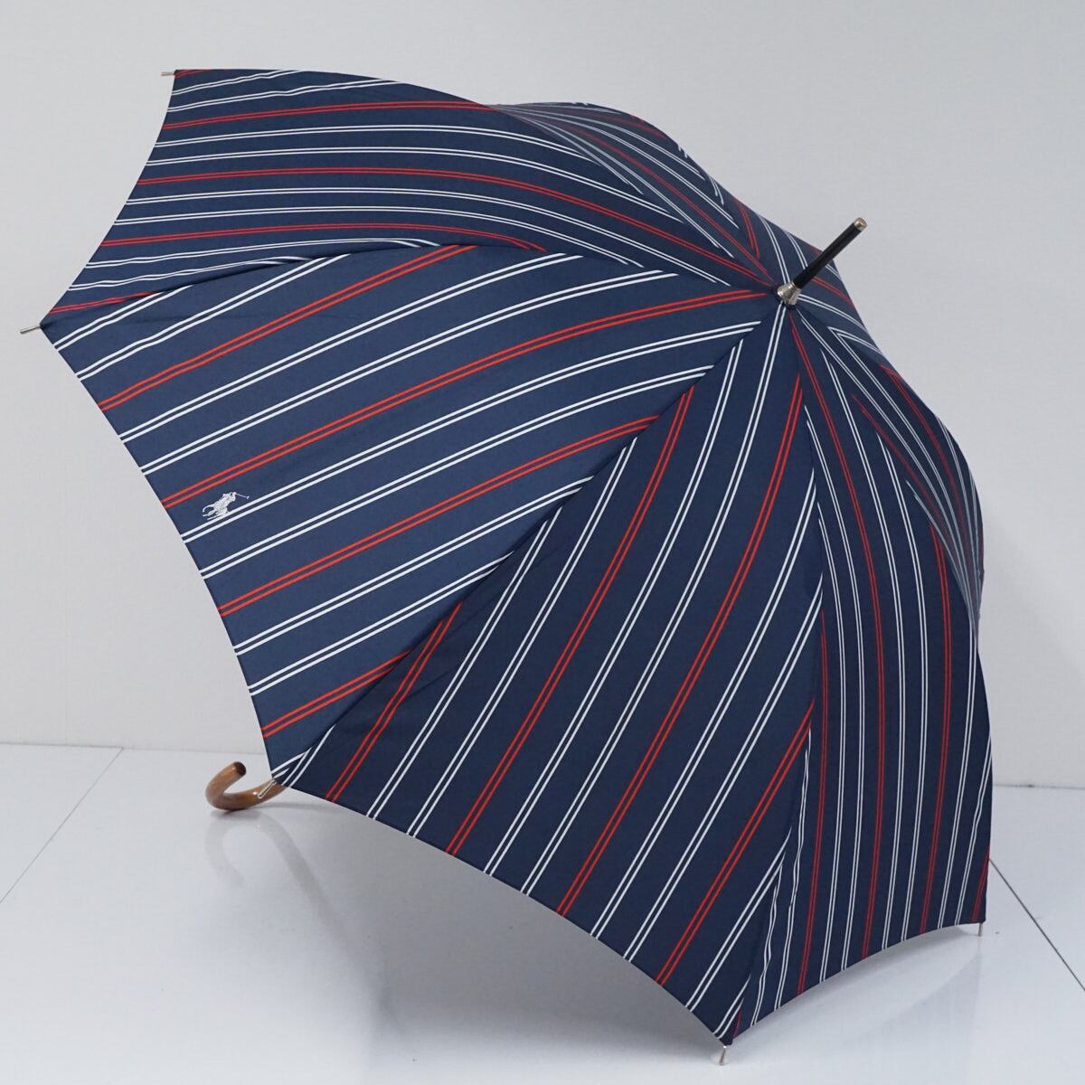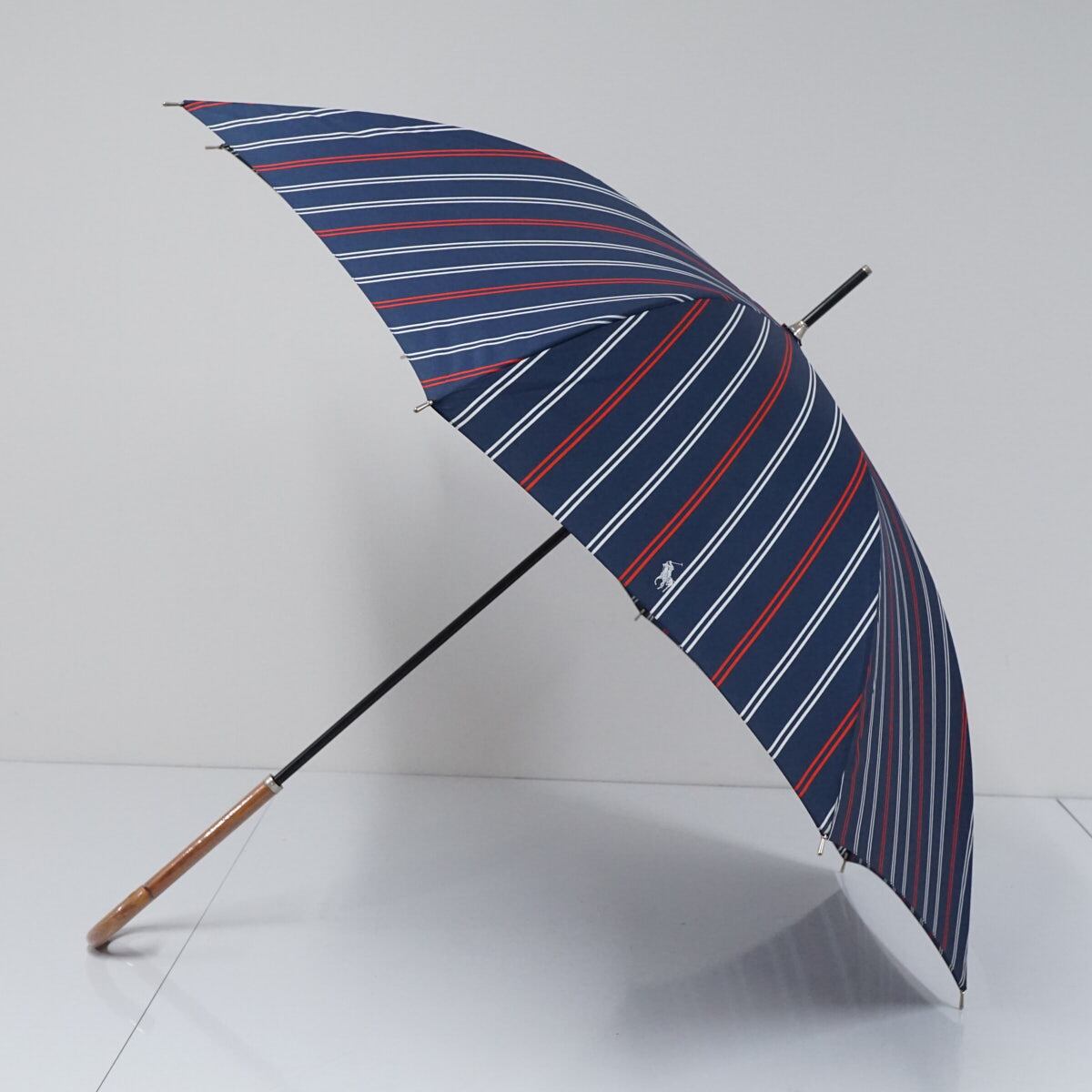 傘 Polo Ralph Lauren ラルフローレン USED美品 2連ボーダー 手元木製 ジャンプ傘 ストライプ ネイビー 60cm S2626