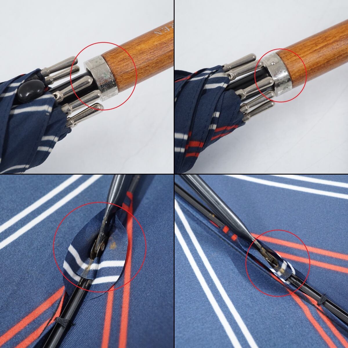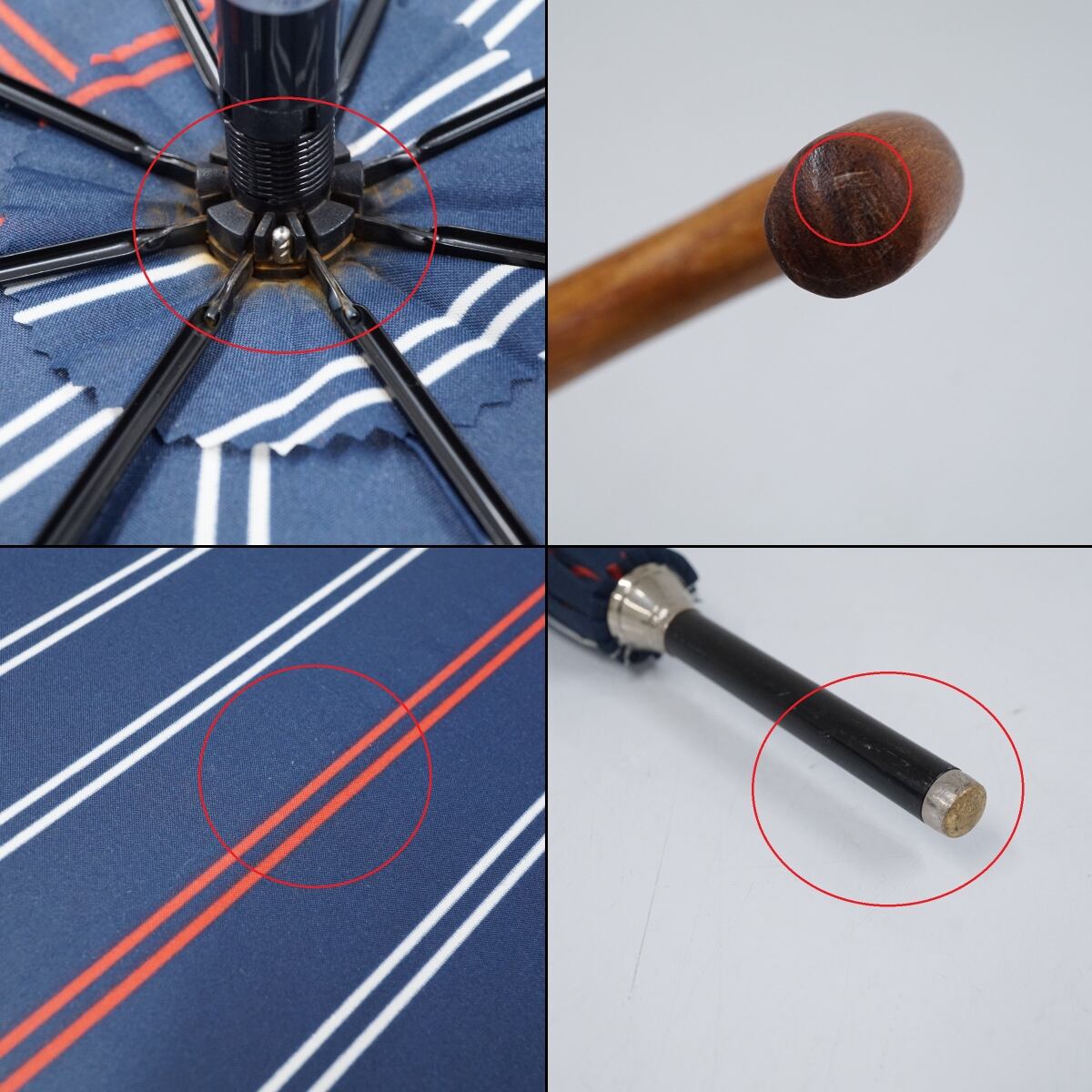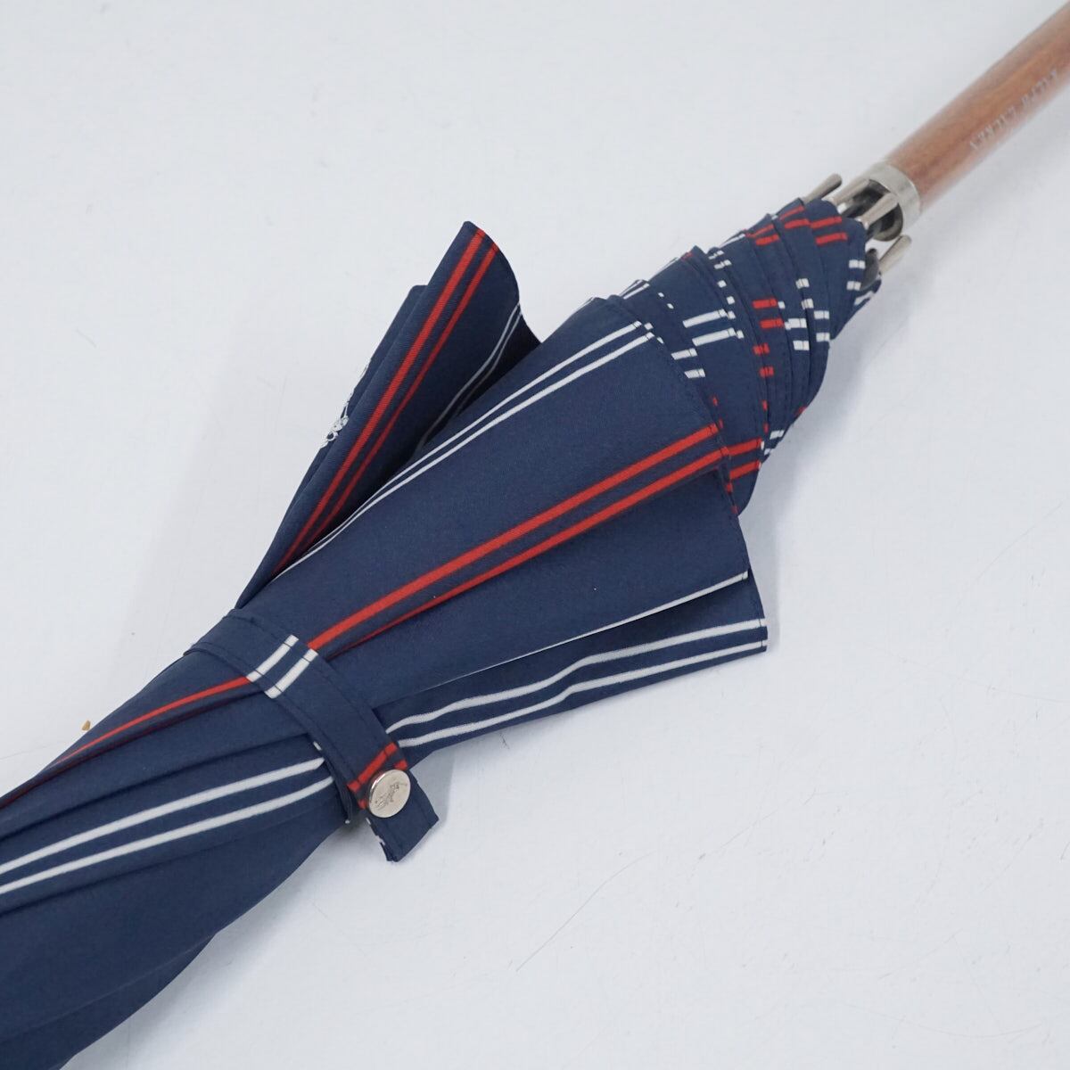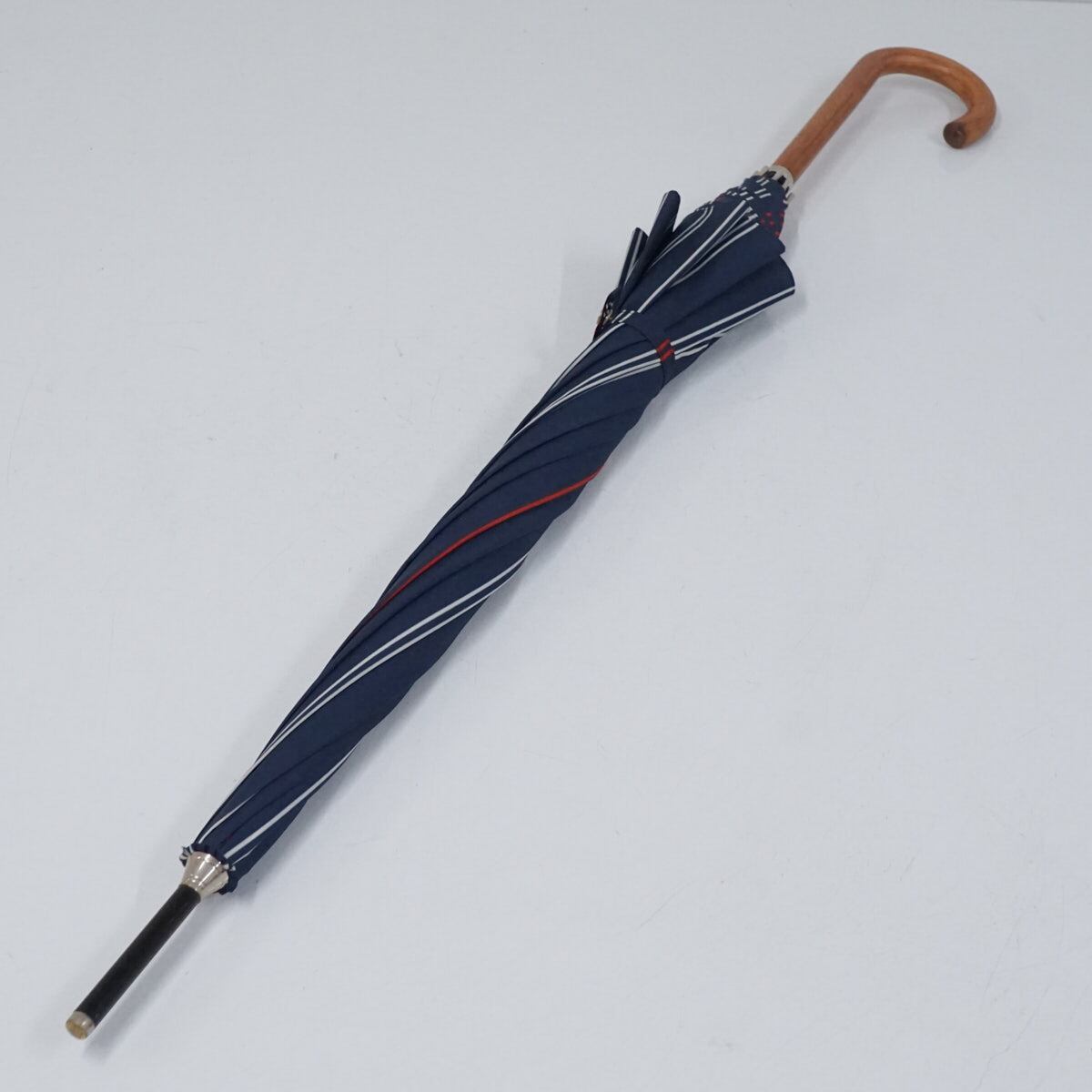 傘 Polo Ralph Lauren ラルフローレン USED美品 2連ボーダー 手元木製 ジャンプ傘 ストライプ ネイビー 60cm S2626