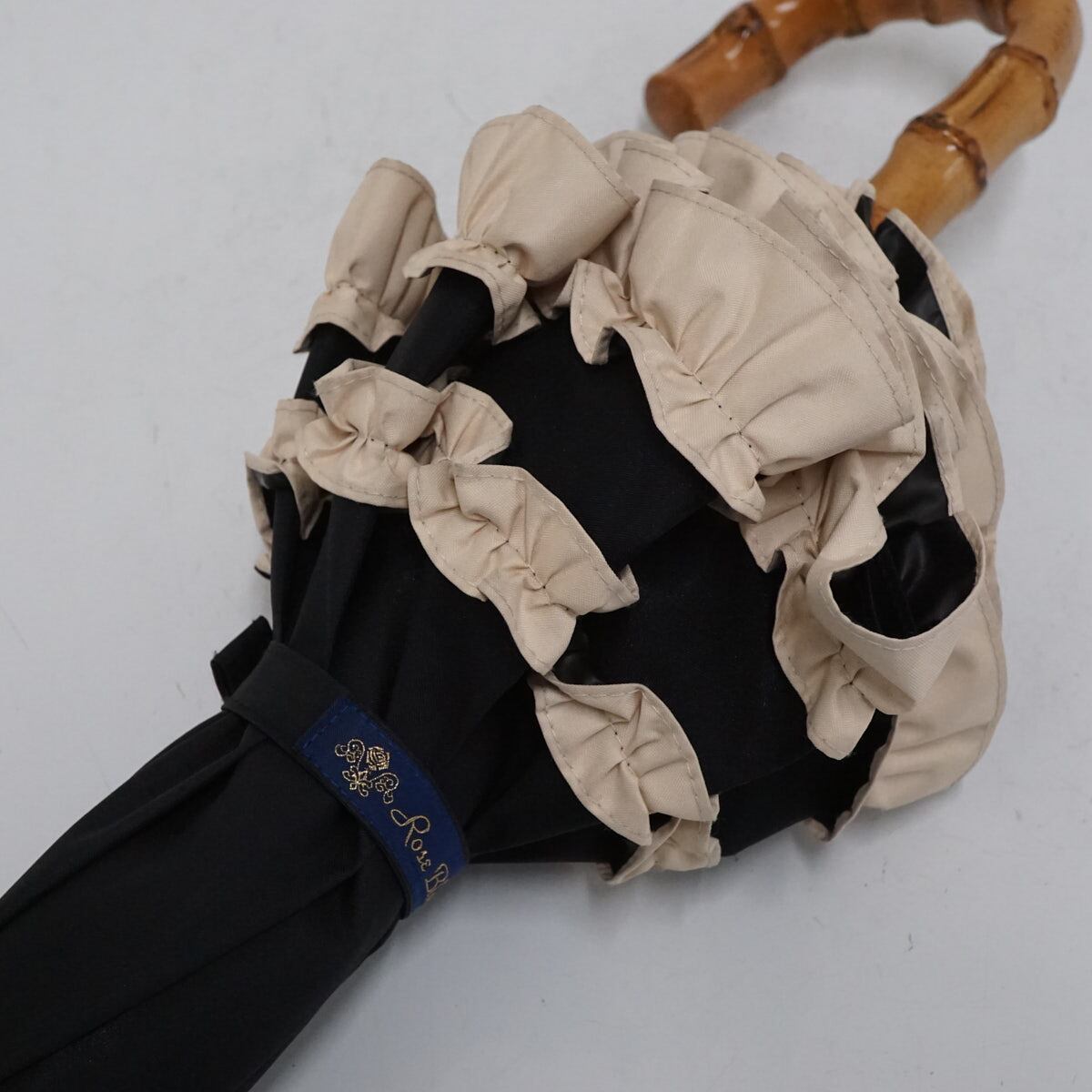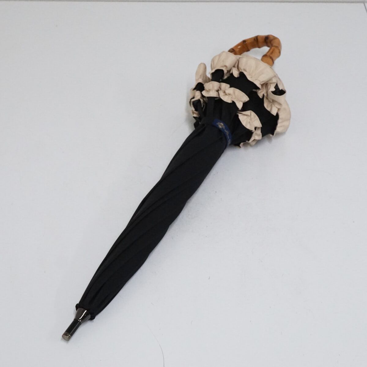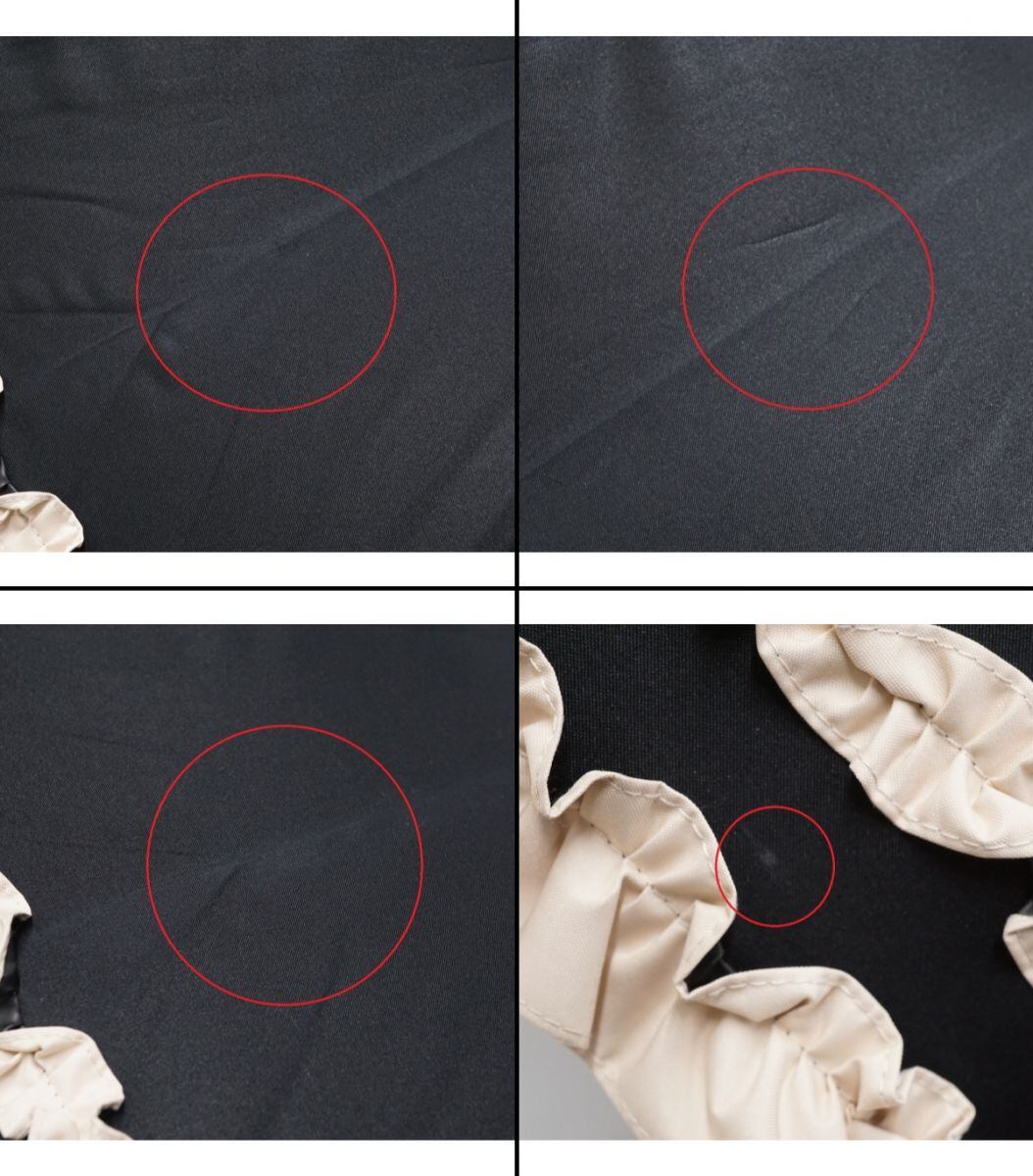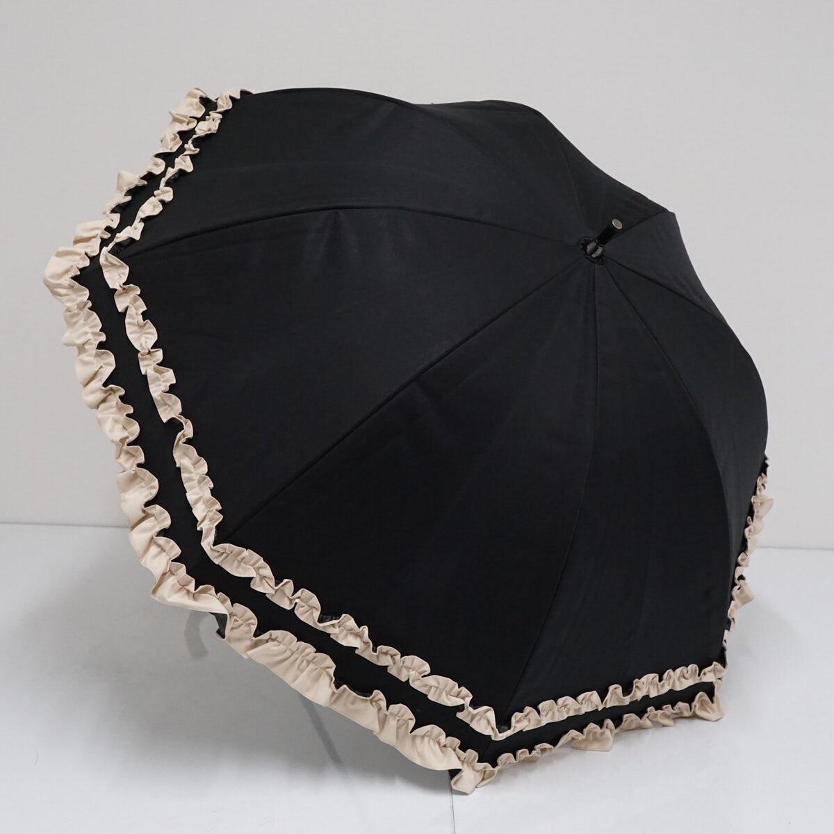日傘 芦屋ロサブラン 完全遮光日傘 USED美品 ショートサイズ ダブルフリル ブラック×ベージュ 遮光 遮熱 50cm S2634