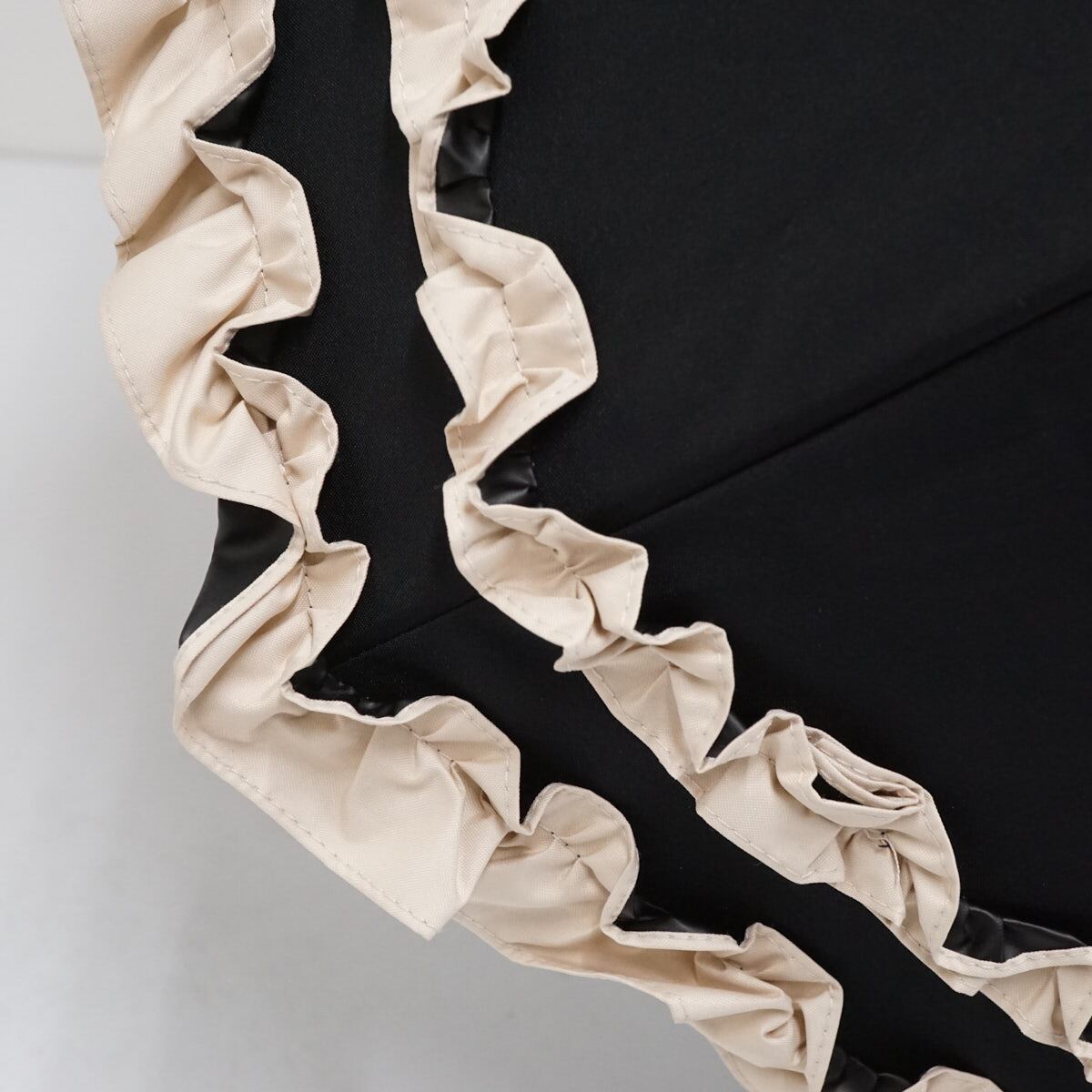 生地のカラーはブラックで、外周のダブルフリルが華やかな人気のデザインです。