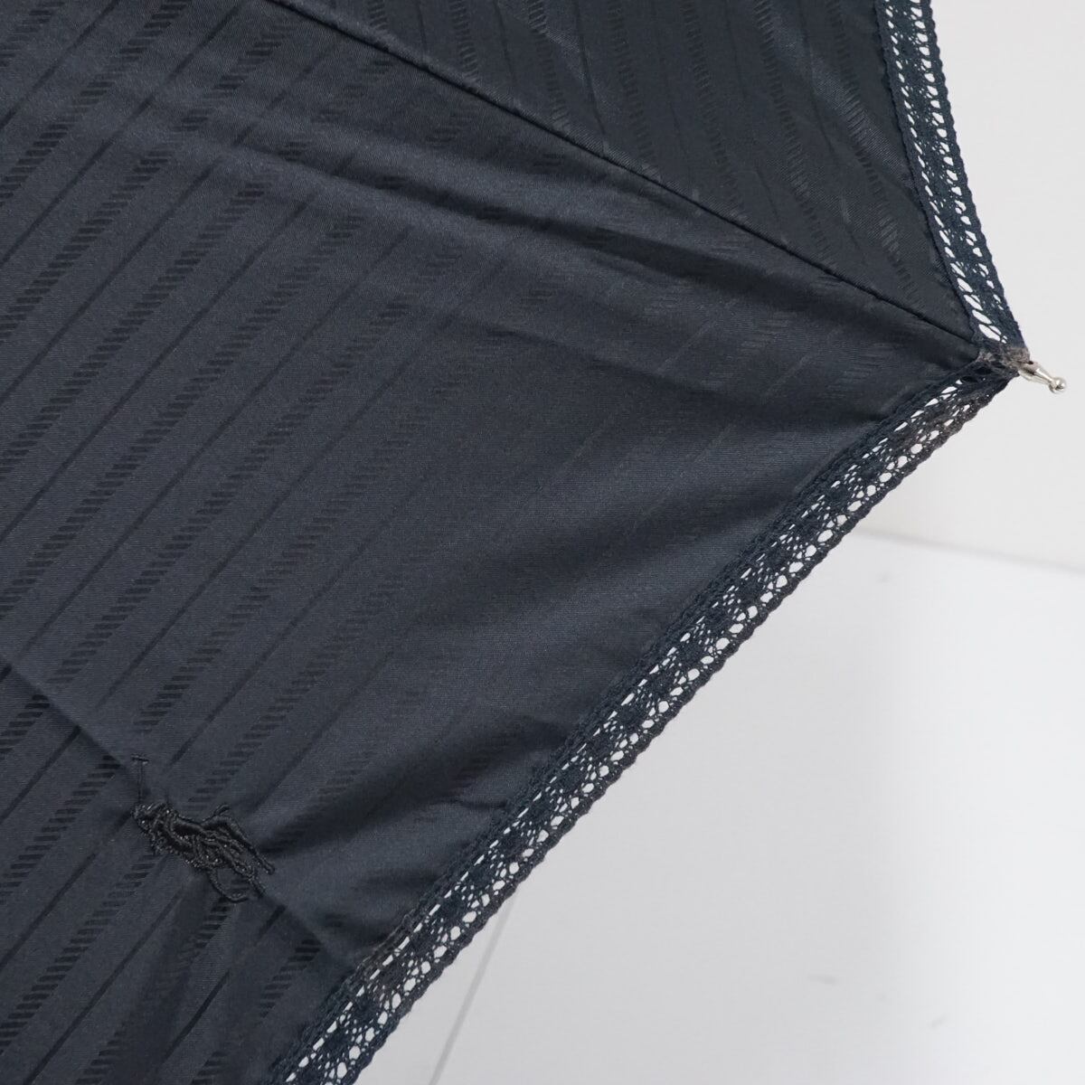 晴雨兼用日傘 Polo Ralph Lauren ラルフローレン USED品 ボーダー ブラック ポロ刺繍 レース 遮光 UV 軽量 50cm A2635