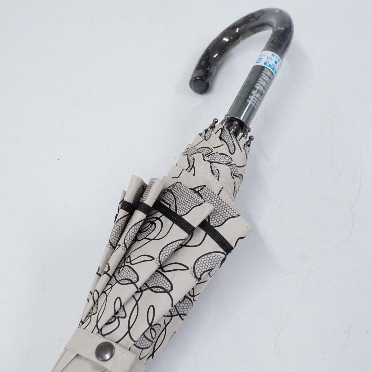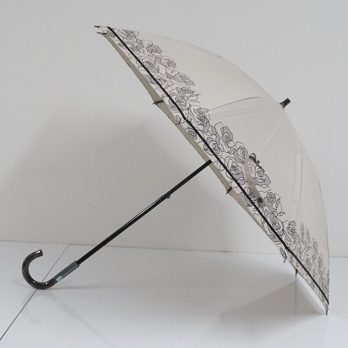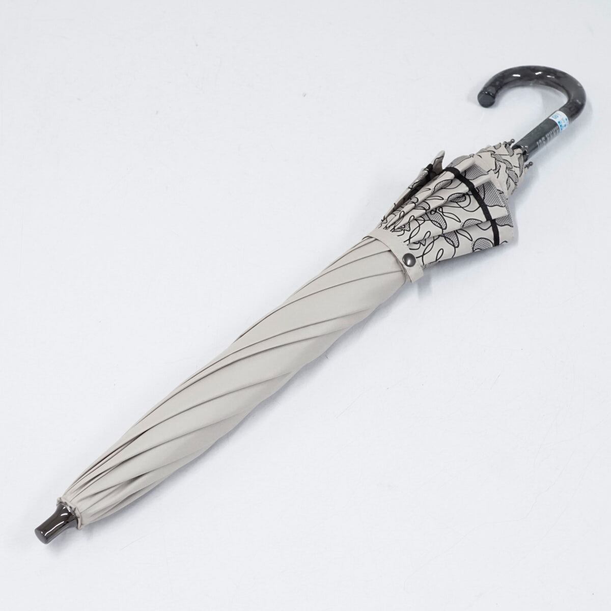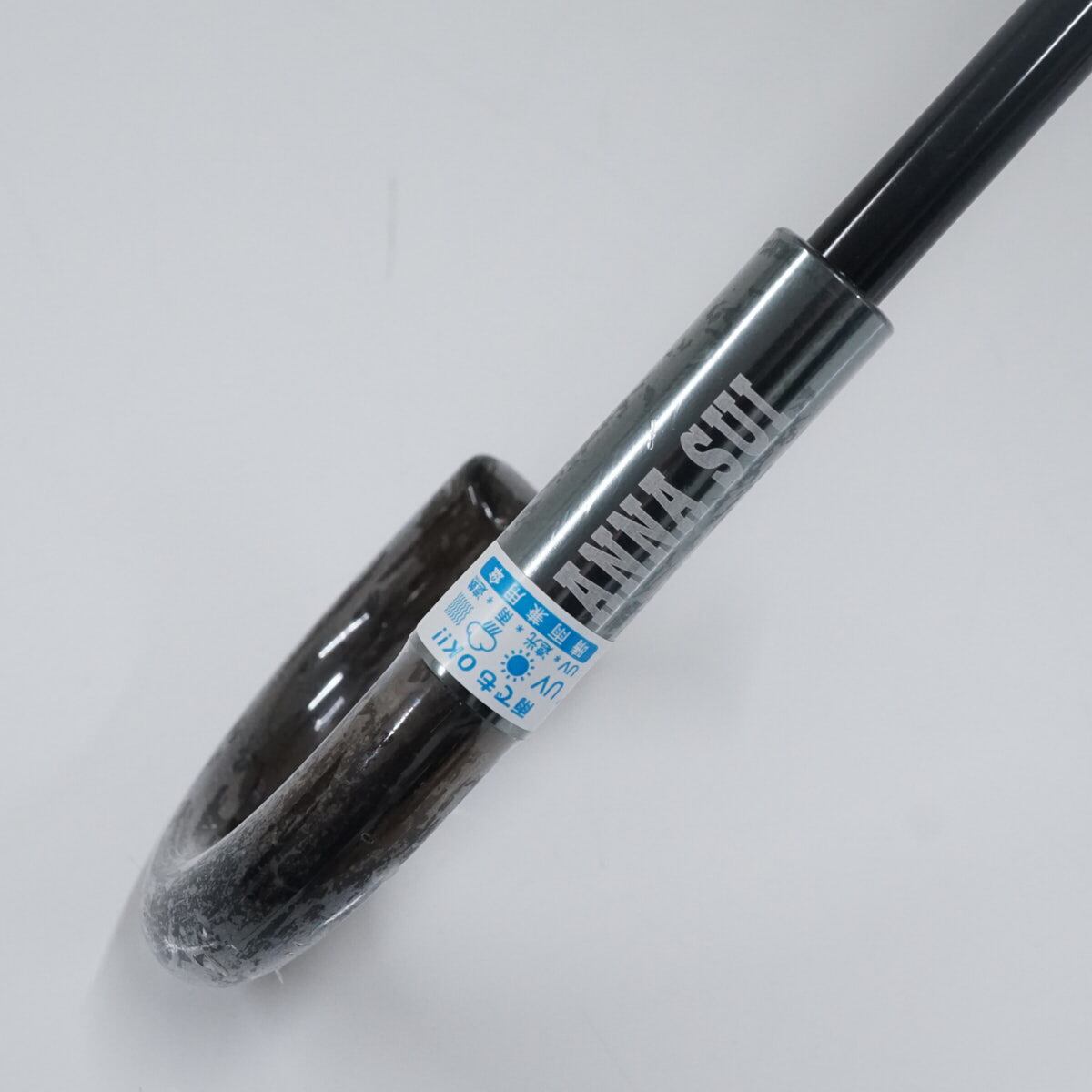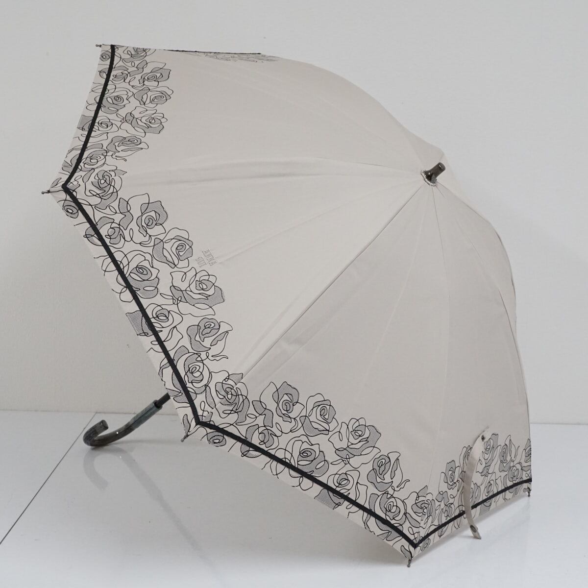 ANNA SUI アナスイ 晴雨兼用日傘 USED美品 ロゴ刺繍 フラワー ベージュ 遮熱 遮光 UV グラス骨 47cm S2628