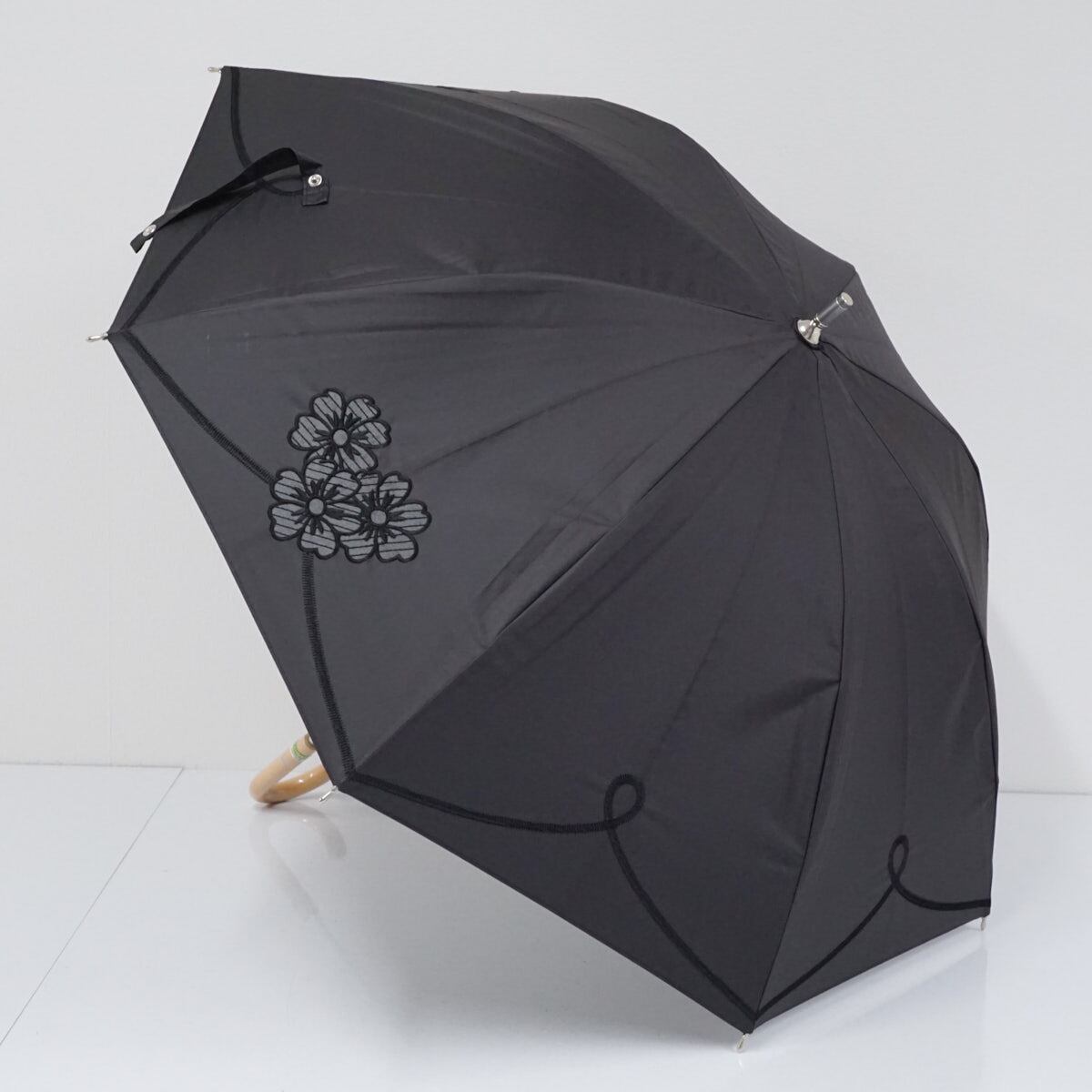 晴雨兼用日傘 mila schon ミラショーン USED美品 遮光 遮熱 ブラック フラワー UV 47cm A2642