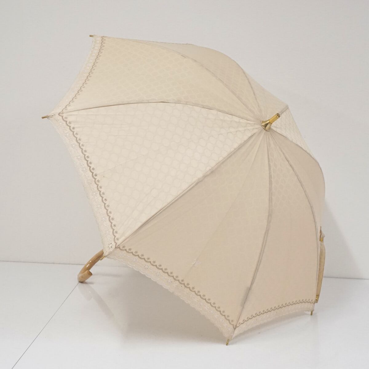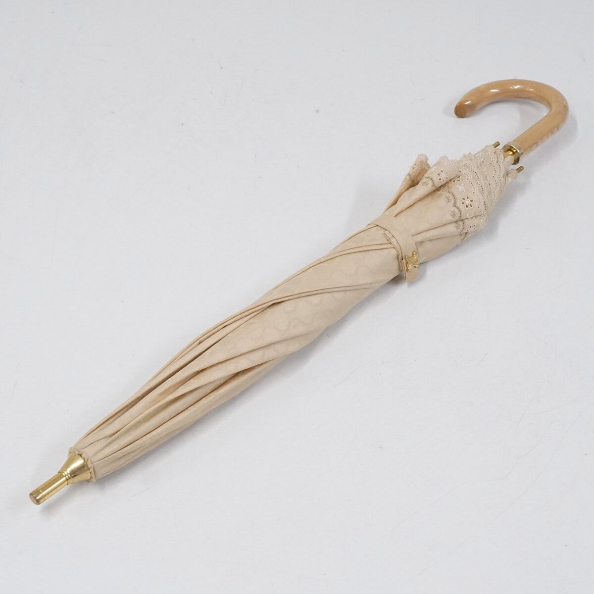 日傘 CELINE セリーヌ USED美品 マカダム ベージュ ロゴ 刺繡 ブランド 47cm S2629