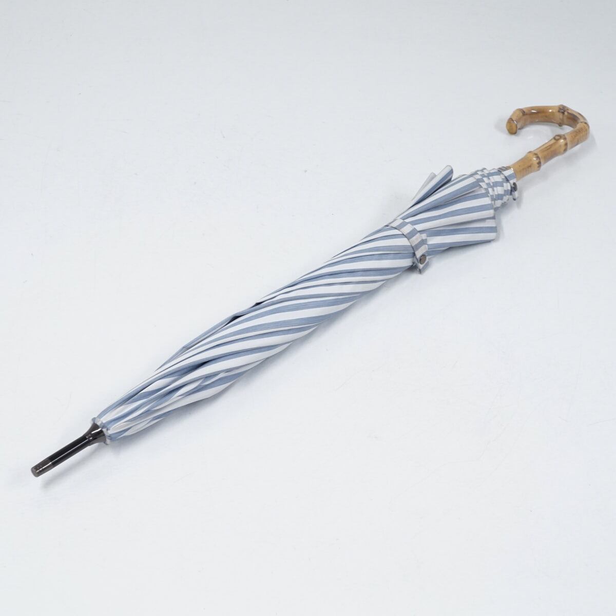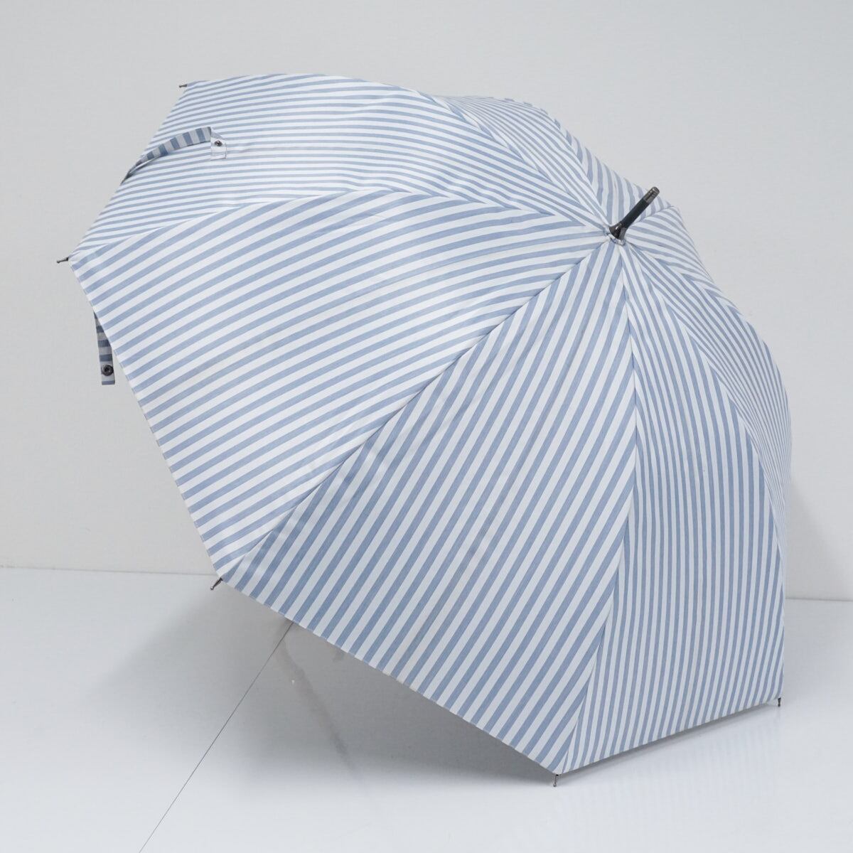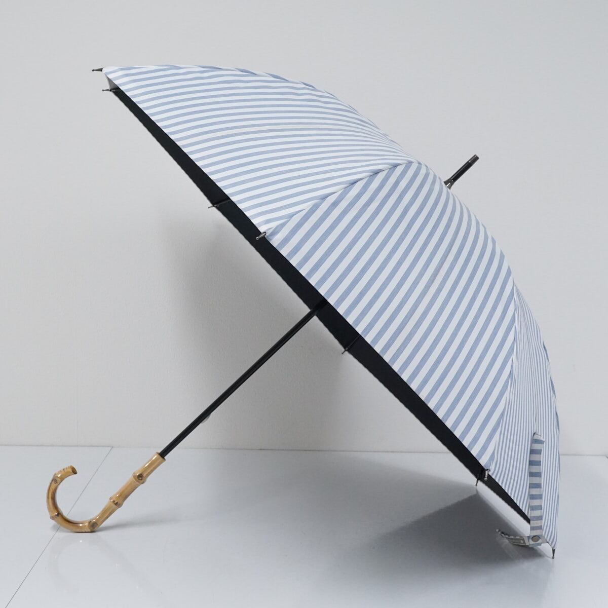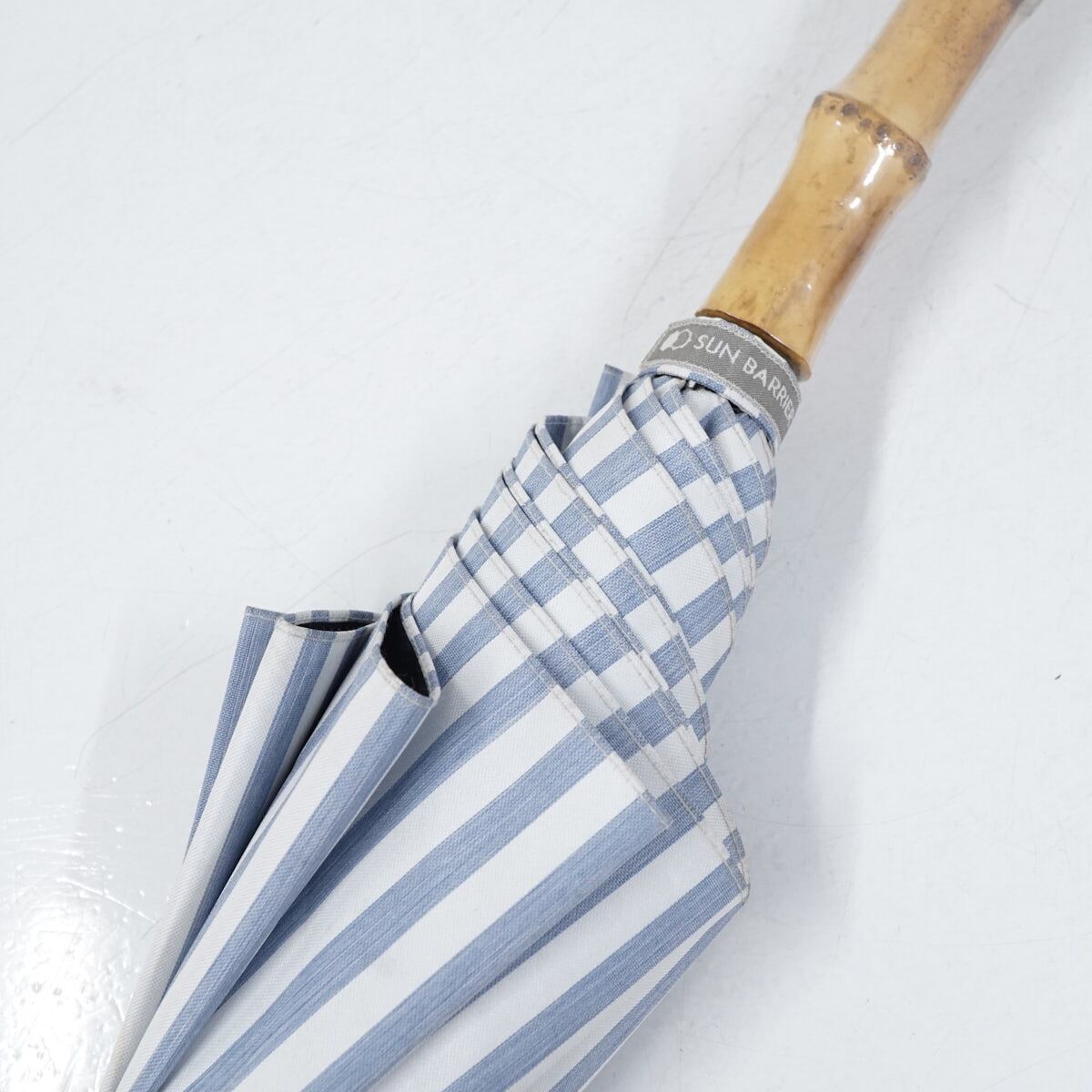 サンバリア100 完全遮光日傘 USED美品 晴雨兼用 ストライプ ブルー UV 遮光 遮熱 Mサイズ 55cm S2646