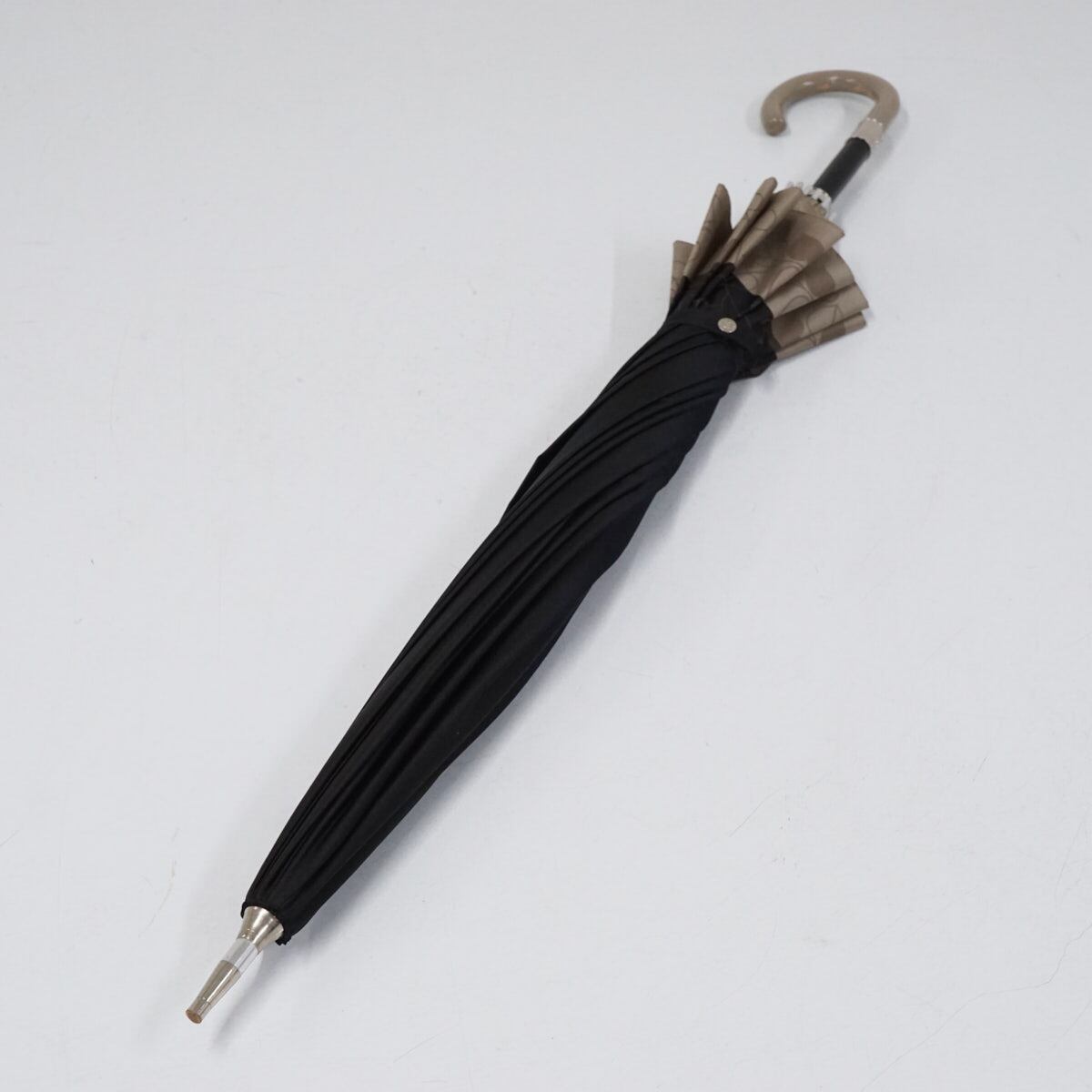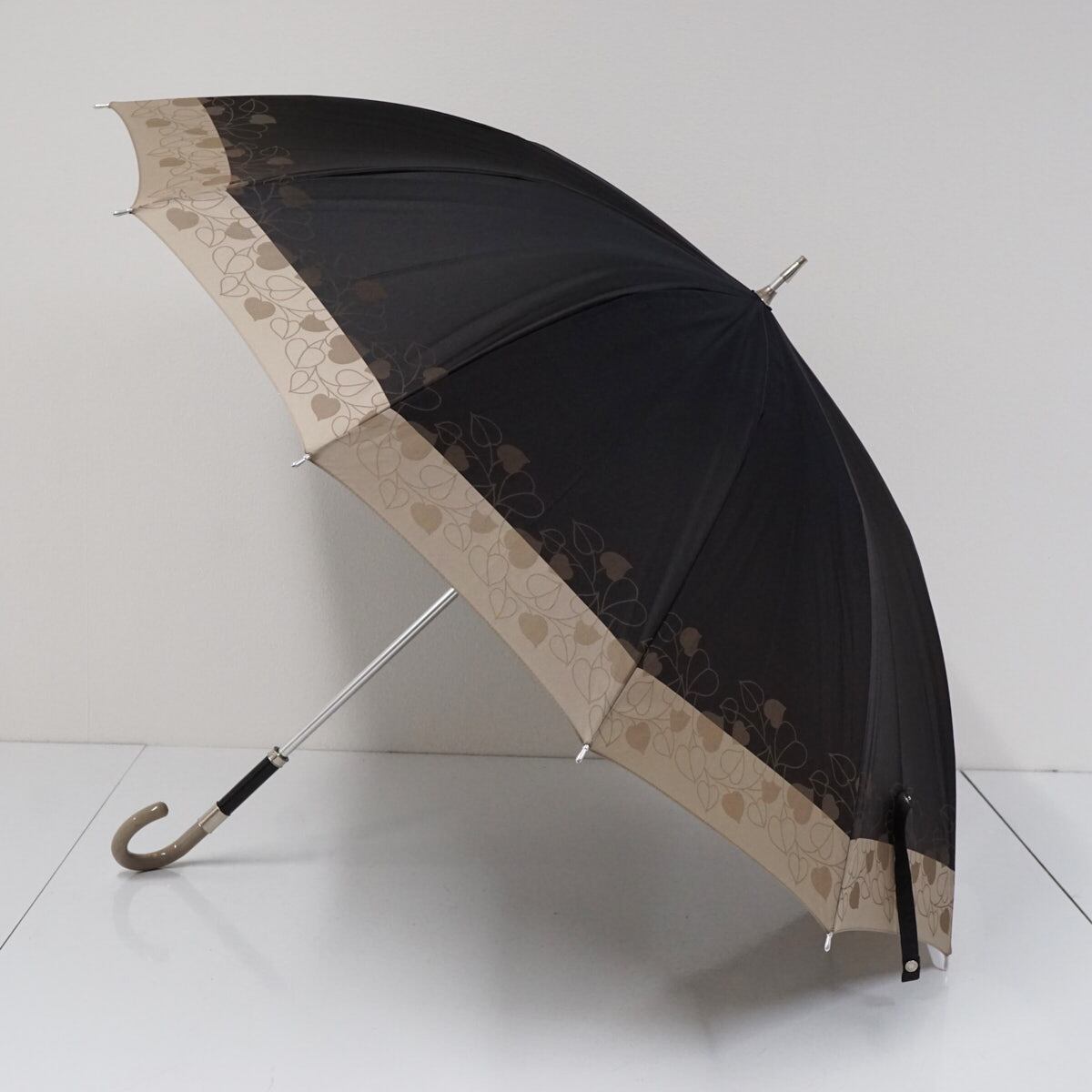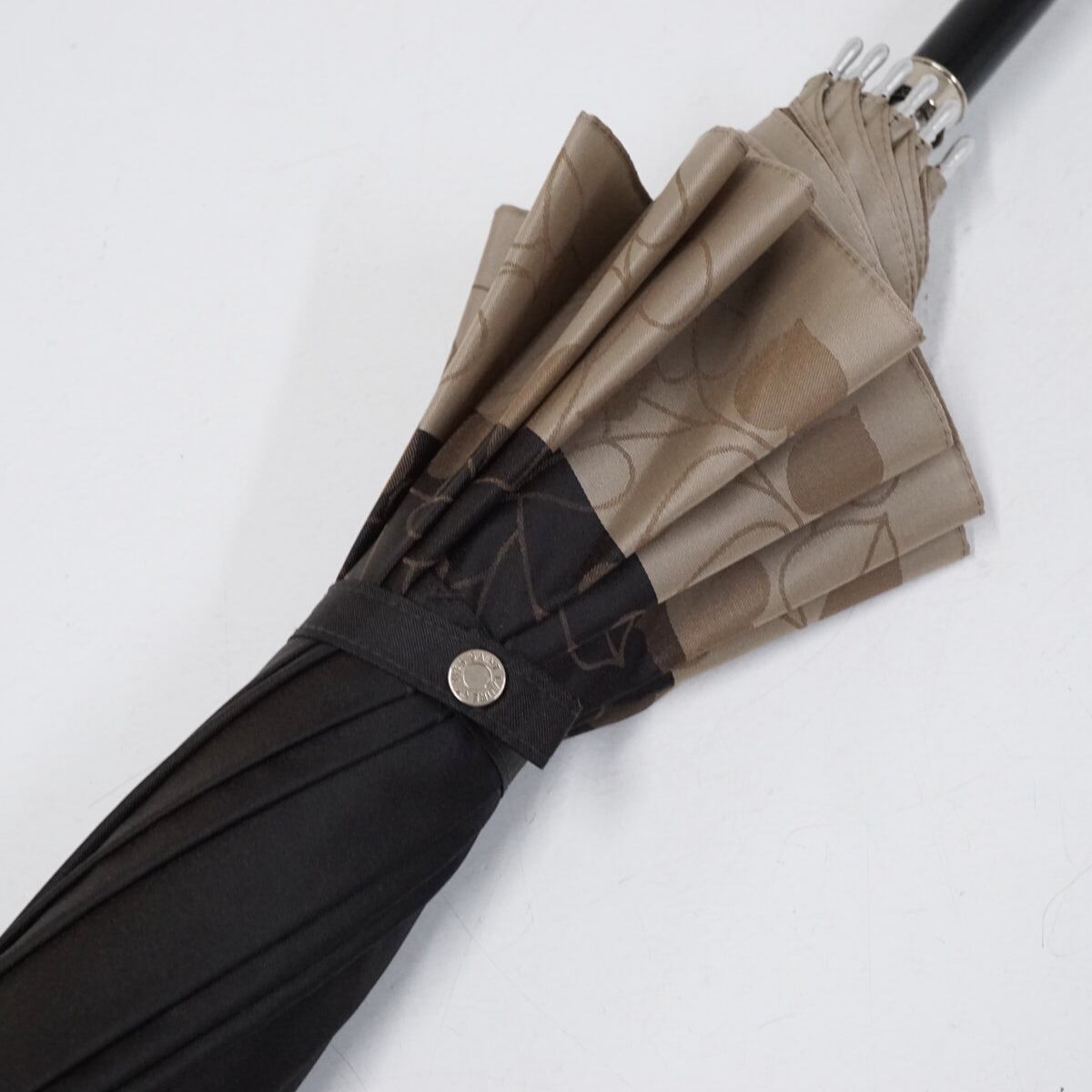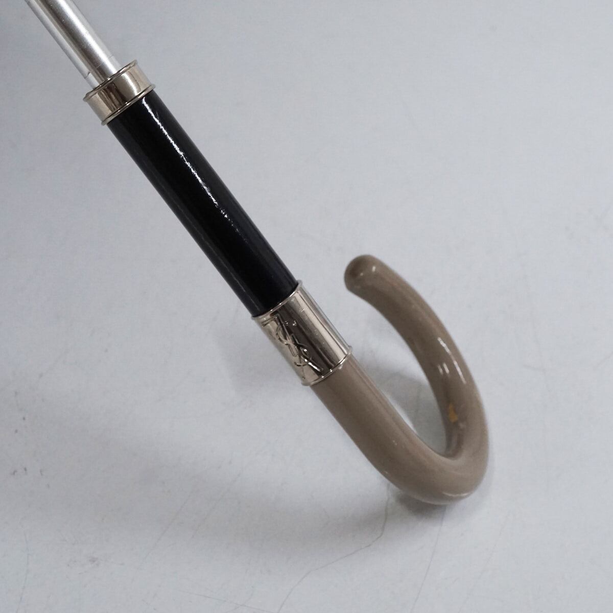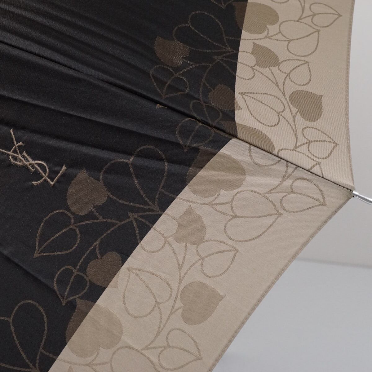 傘 YSL イヴサンローラン USED品 リーフ 葉 ボタニカル ブラック×ベージュ ジャガード グラス骨 手開き式 57cm S2664