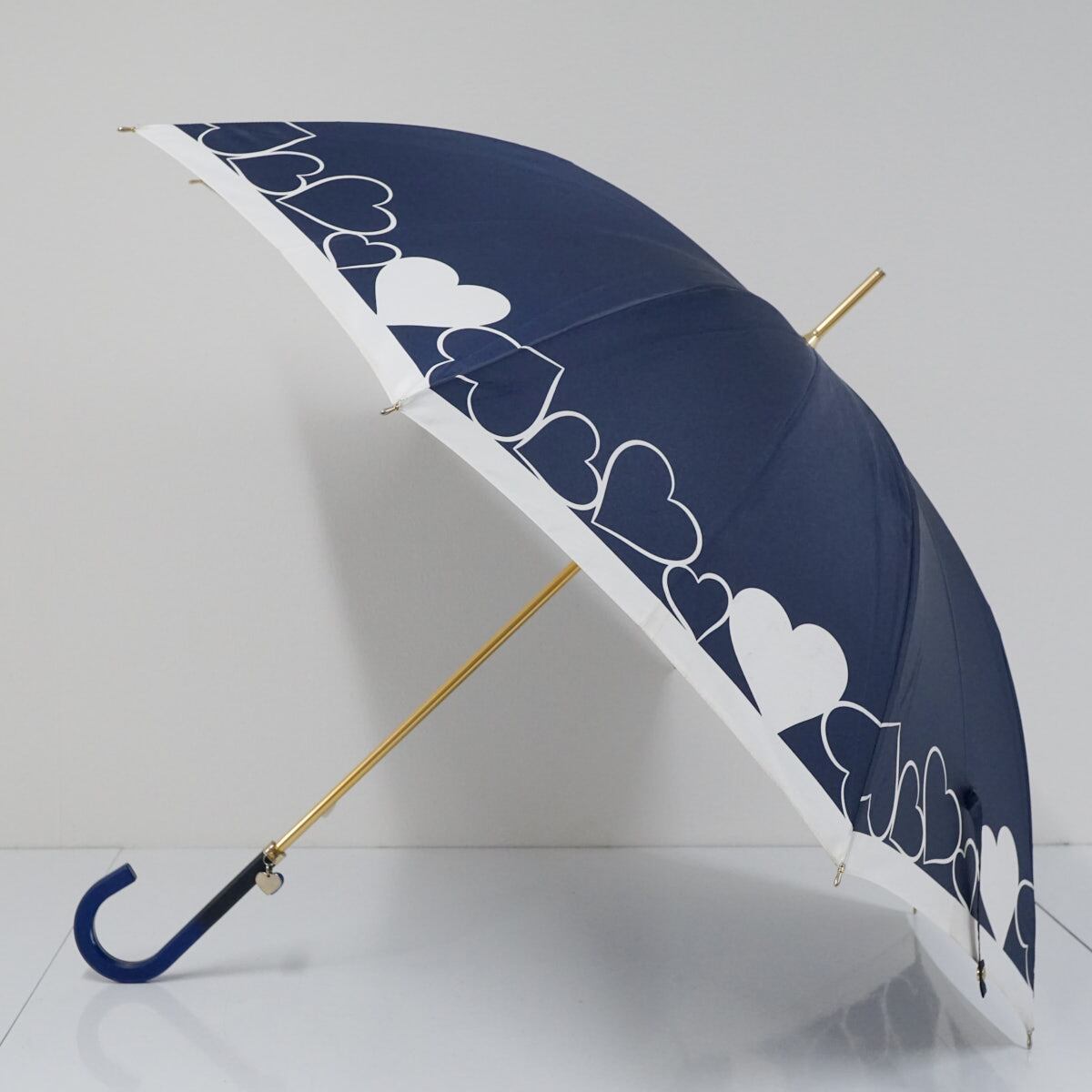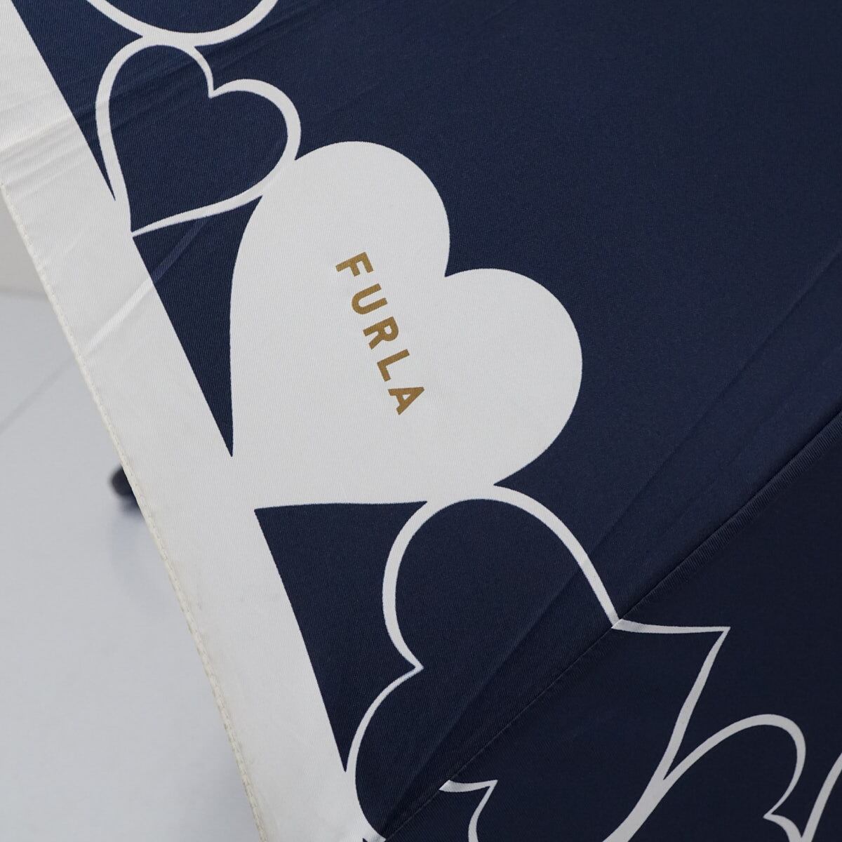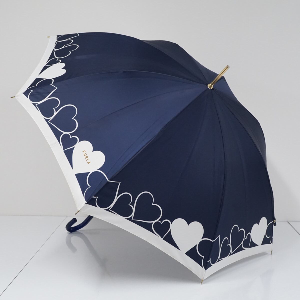 傘 FURLA フルラ USED品 ネイビー ハート ロゴ 雨傘 ブランド かわいい 60cm S2654