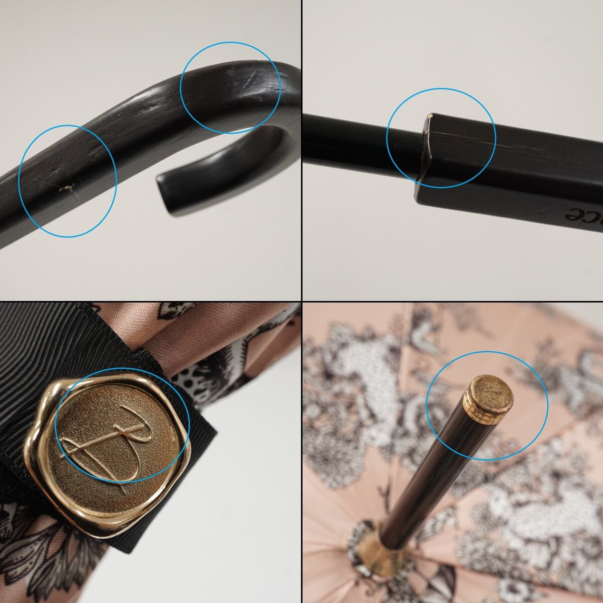 傘 Beaurance LX ビューランス USED美品 オリジナルプリント アニマル フラワー ベージュ 木製手元 グラス骨 60cm S2672