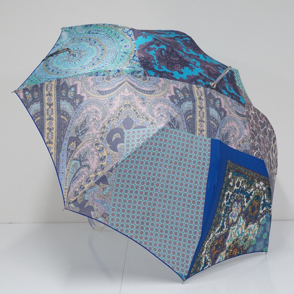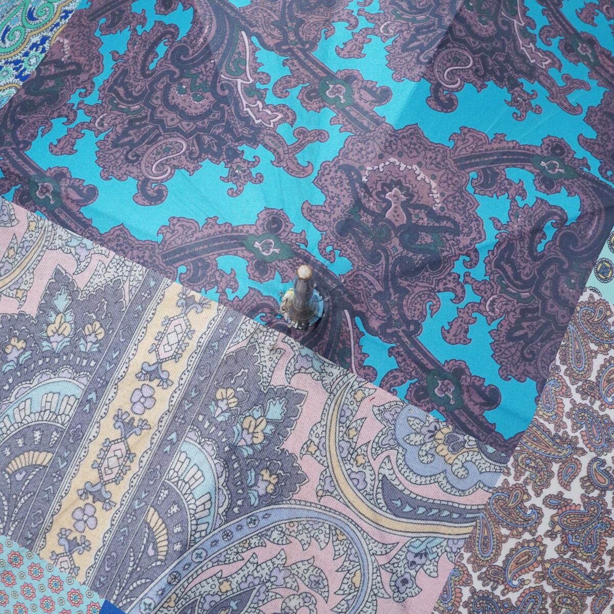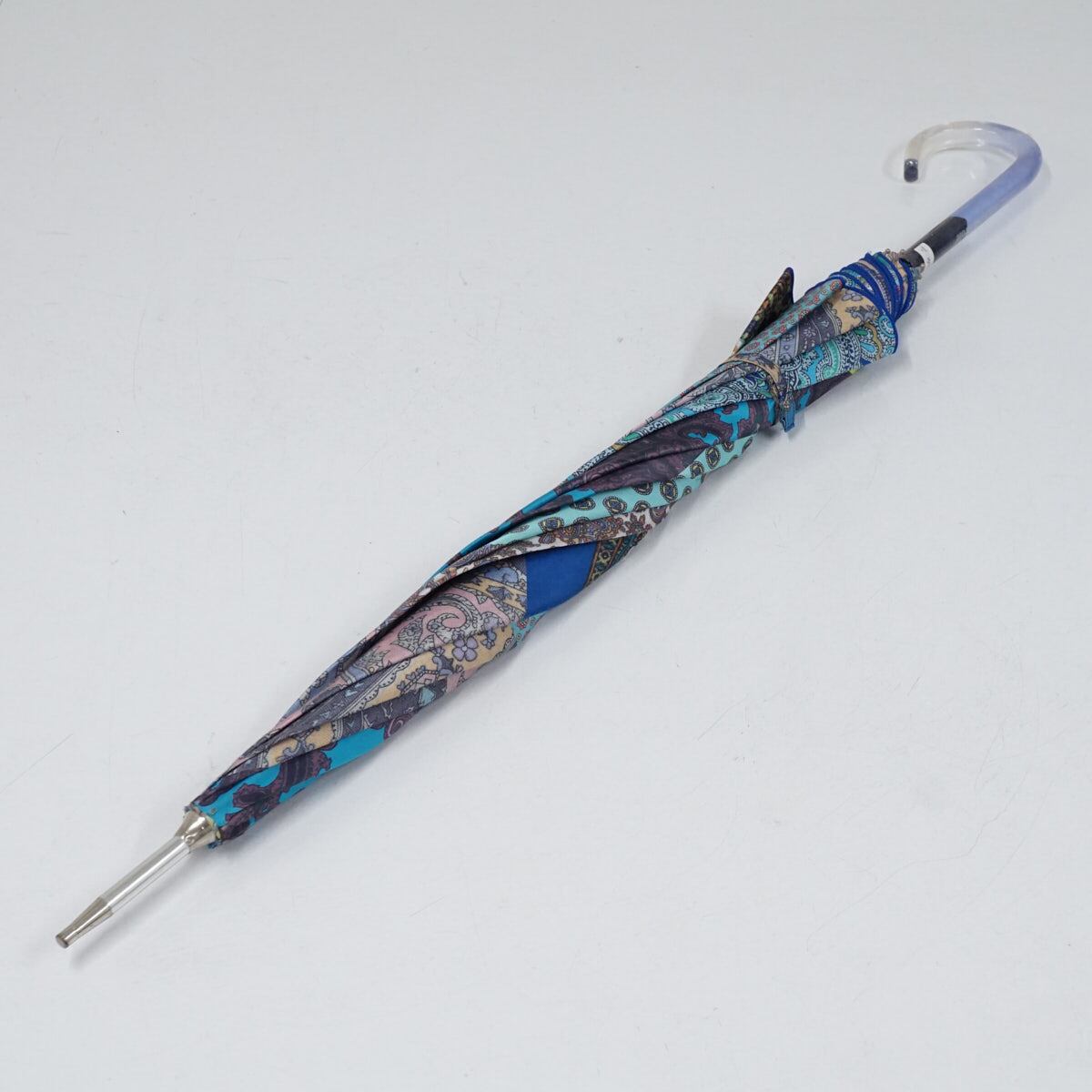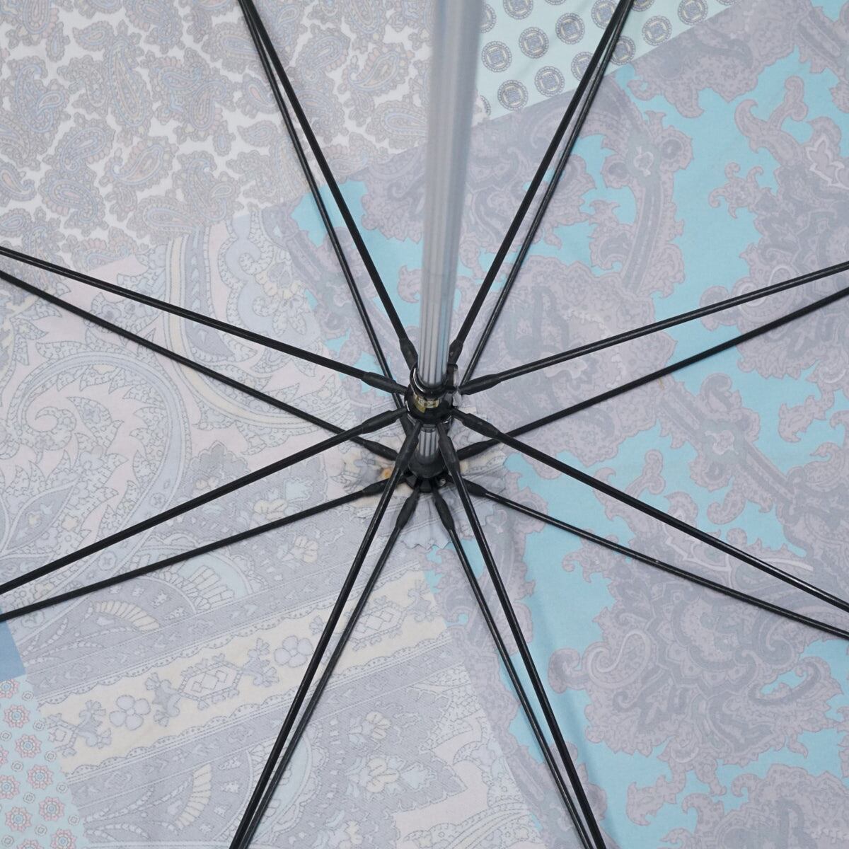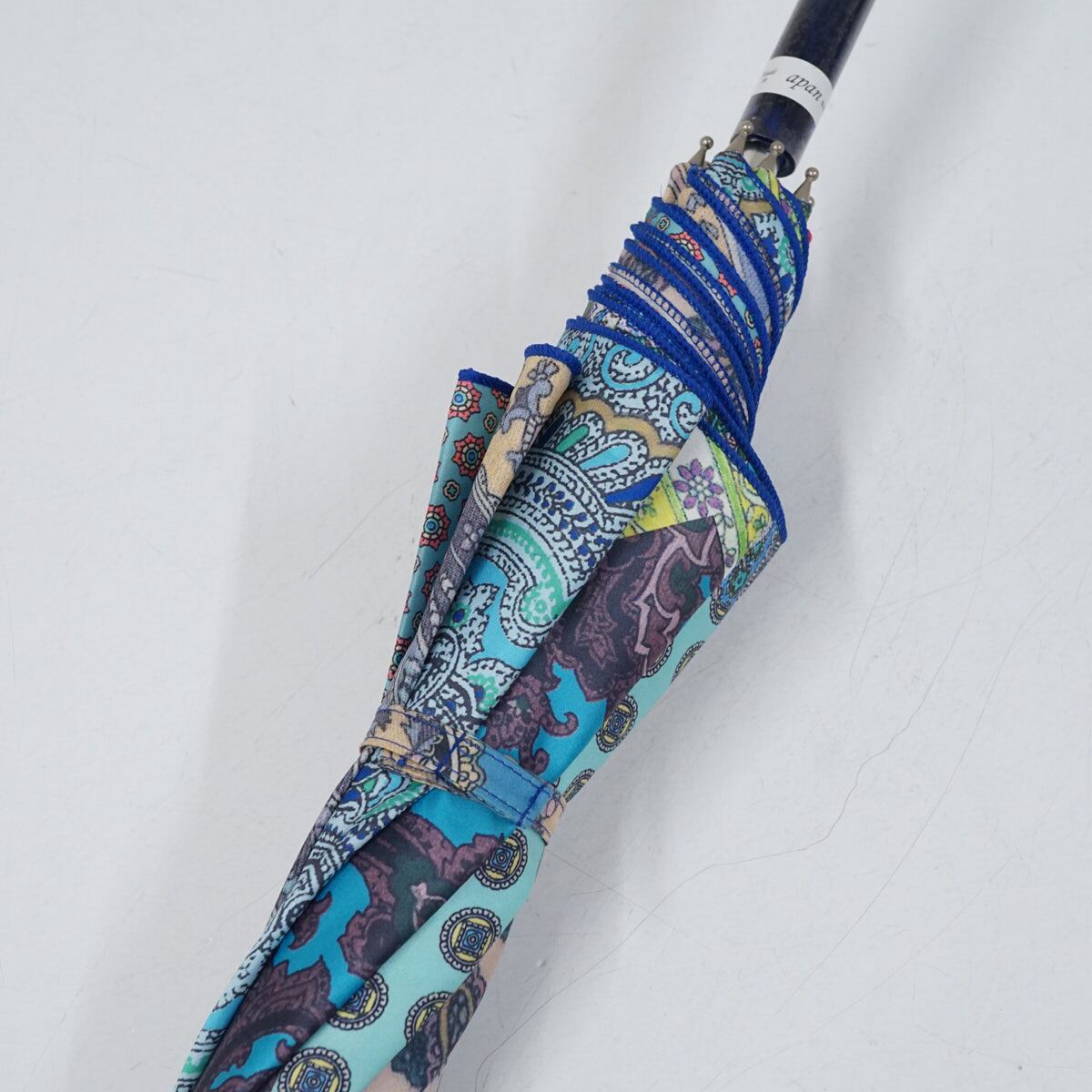 傘 Drole Drole ドローレドローレ 高級傘 USED美品 テキスタイル ブルー系 一枚張り 軽量 グラス骨 60cm S2661