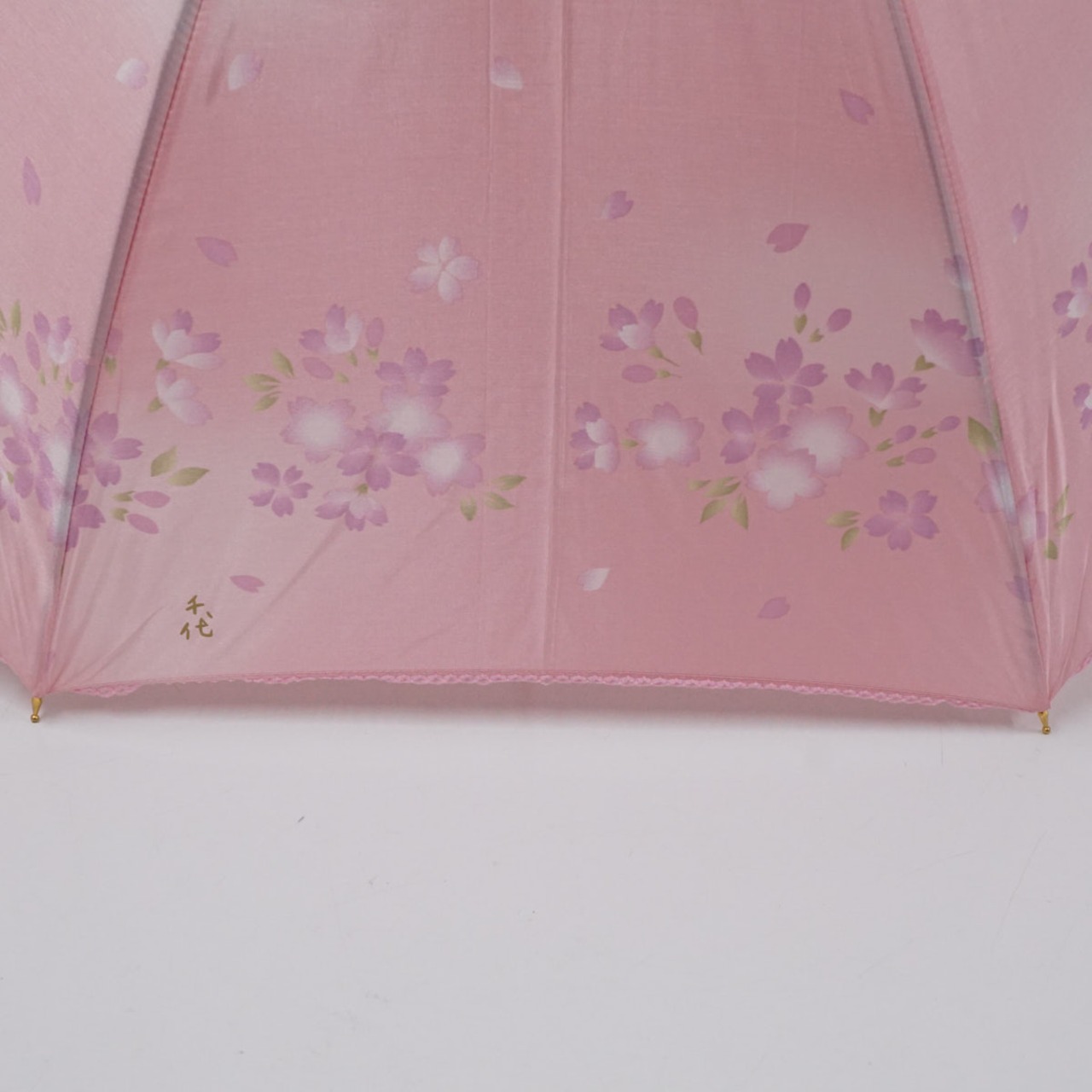 【新品未使用】 晴雨兼用日傘 宇野千代 タグ付き 桜 和風 レース 木製手元 ロゴ 刺繍 和装 着物 ピンク 58cm A2676