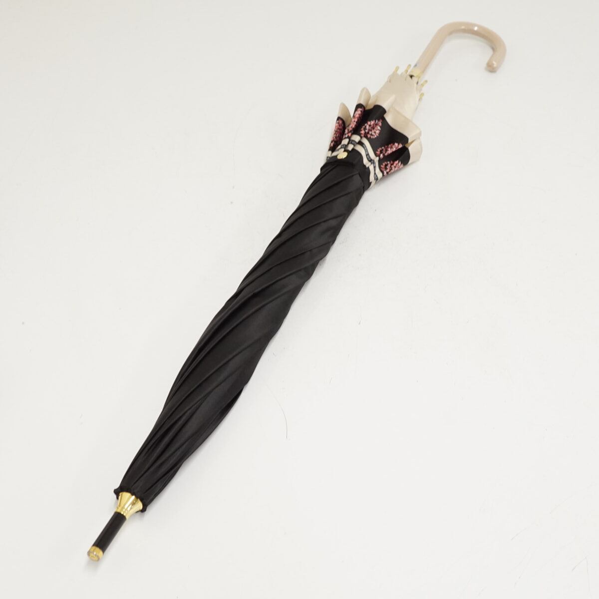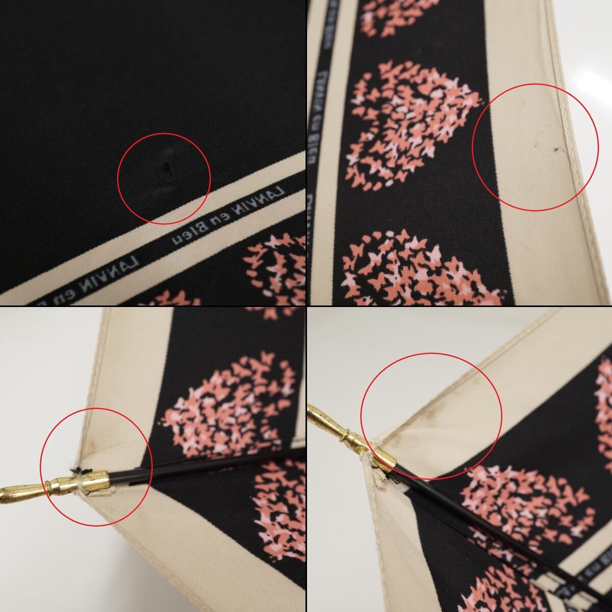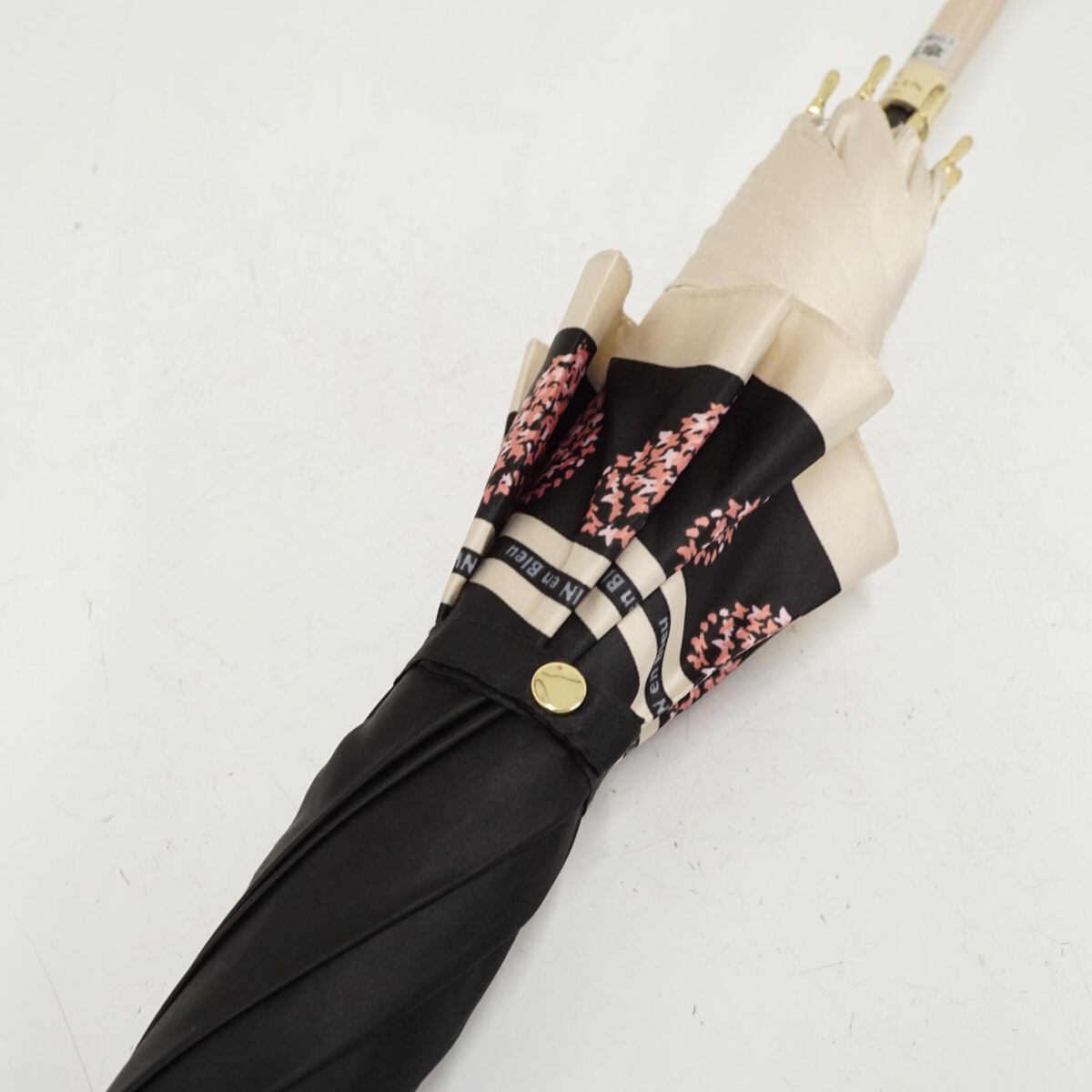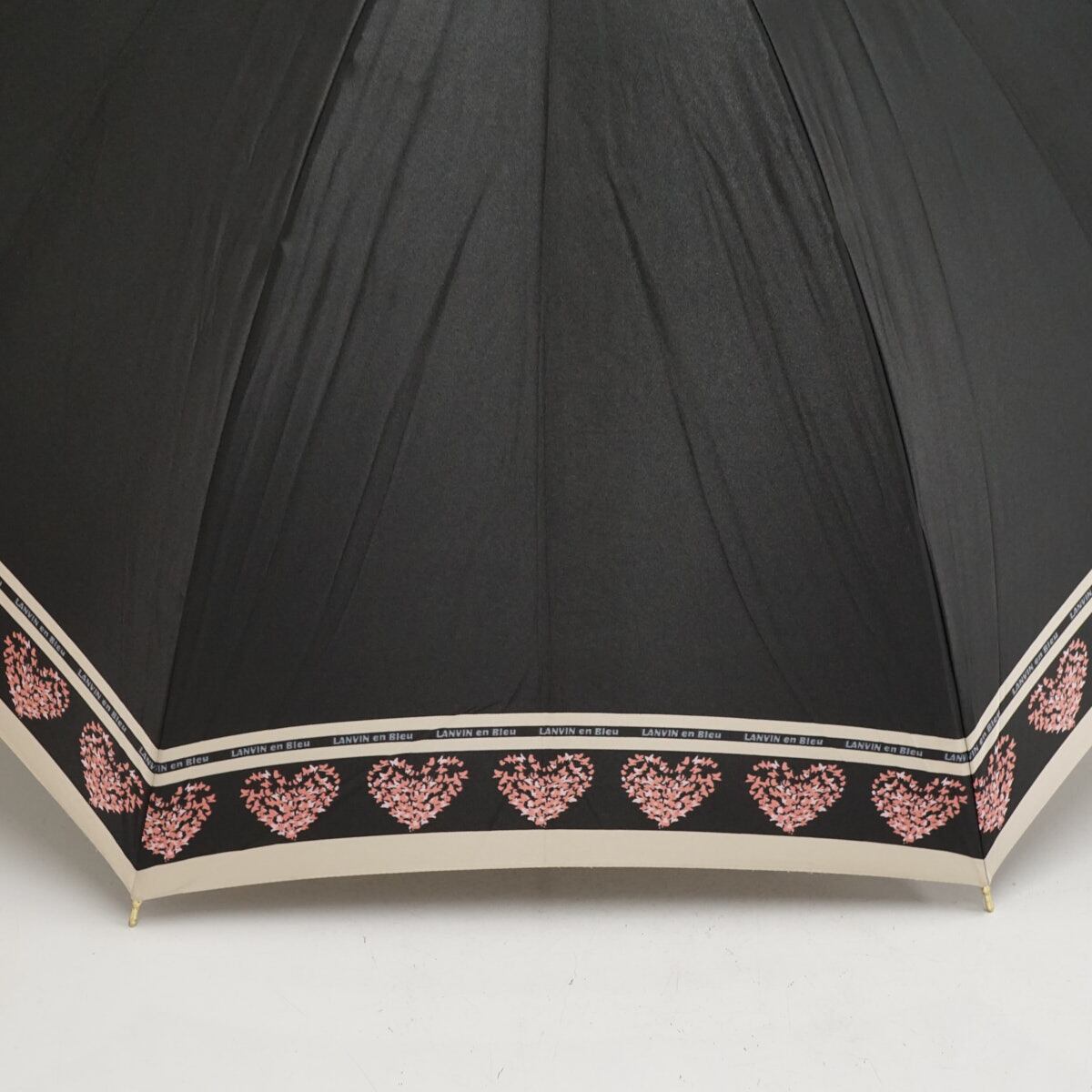 耐風傘 LANVIN en Bleu ランバンオンブルー USED美品 ハート ピンク ロゴ ジャンプ ブラック 60cm A3310