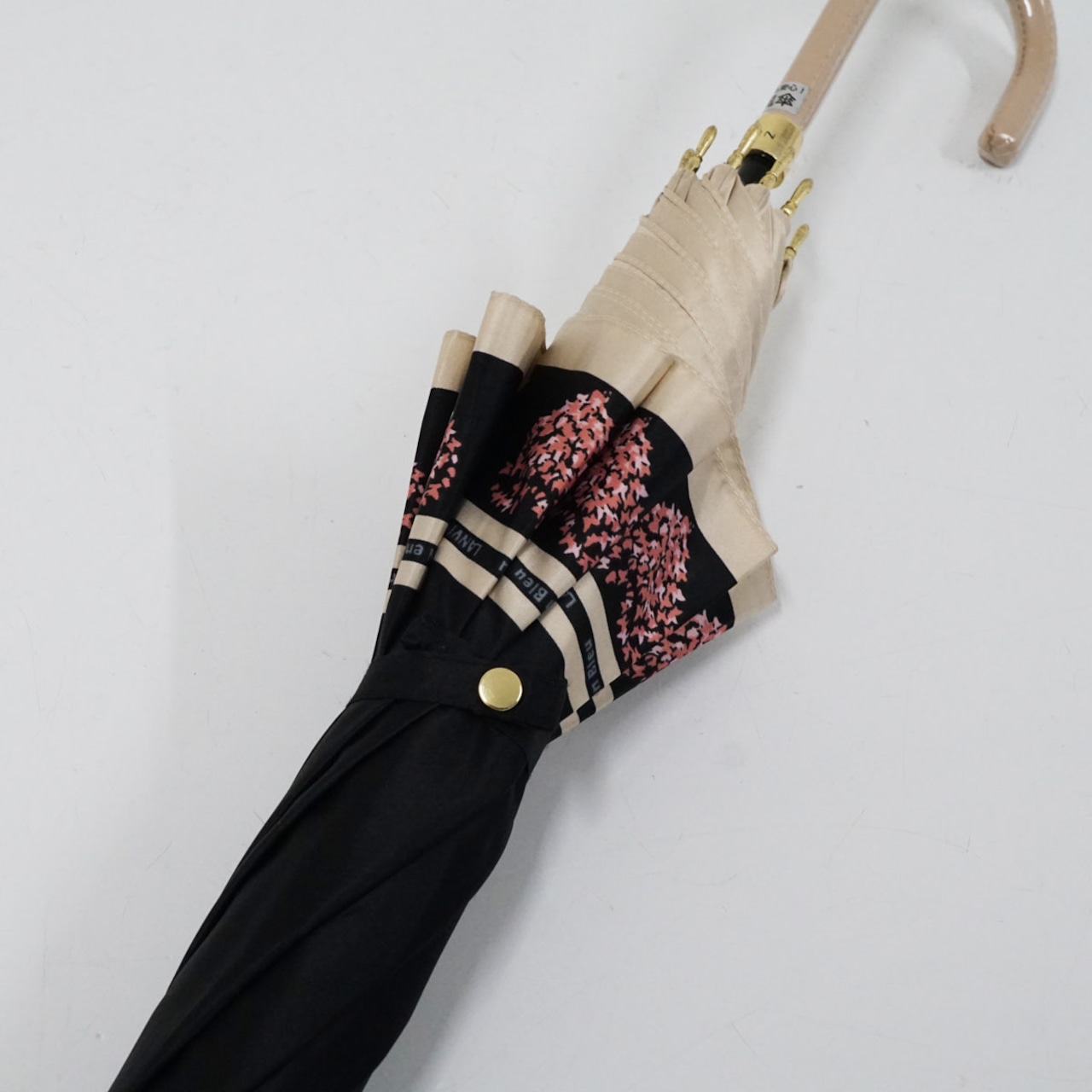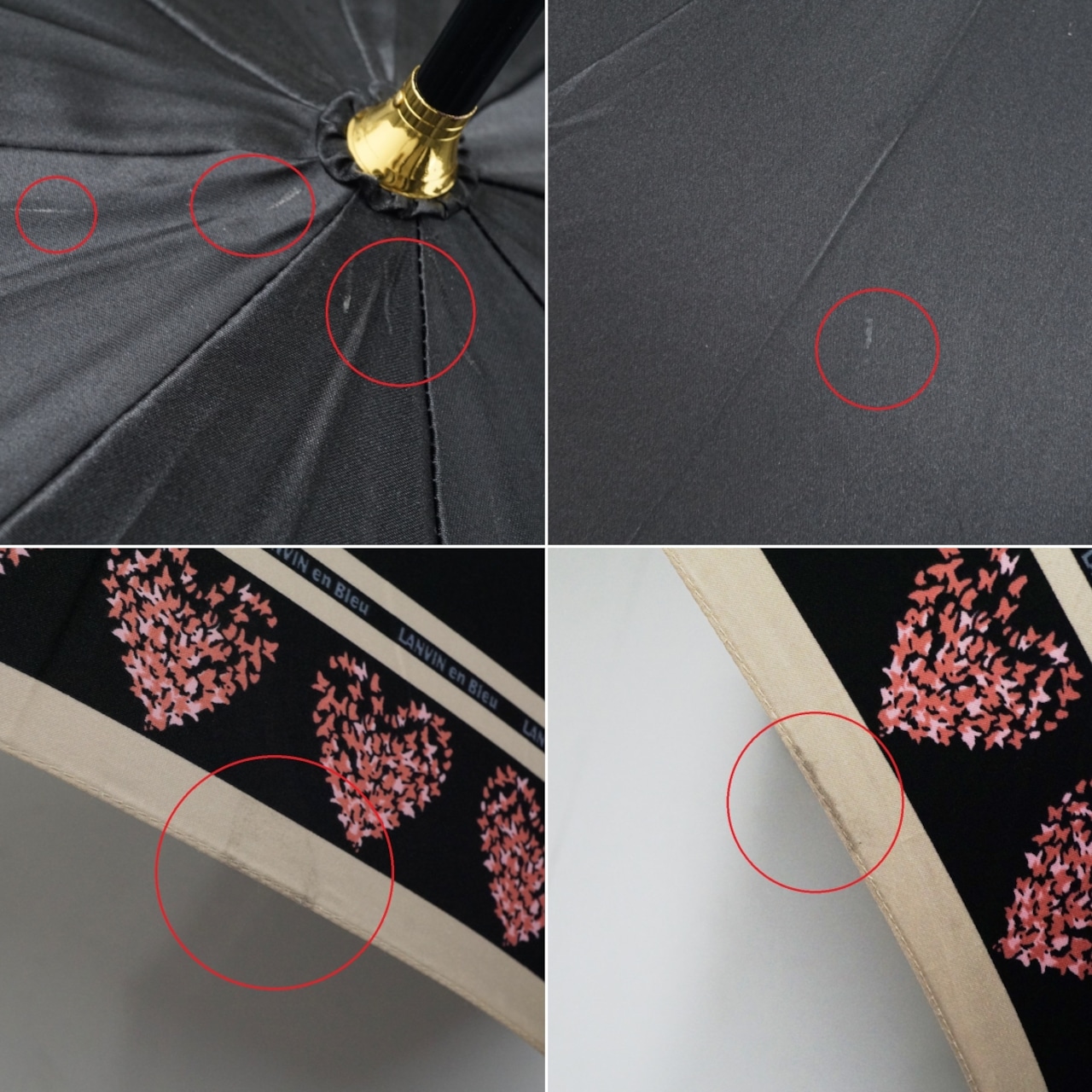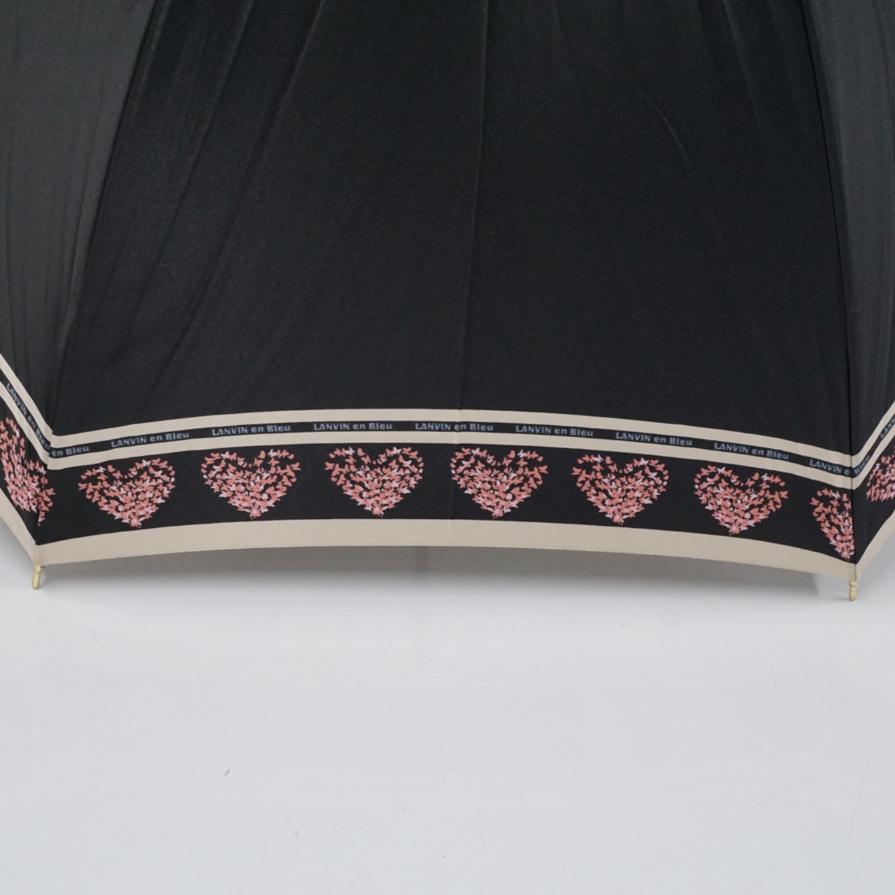 傘 LANVIN en Bleu ランバンオンブルー USED美品 耐風傘 ハート ピンク ロゴ ジャンプ ブラック 60cm A2680