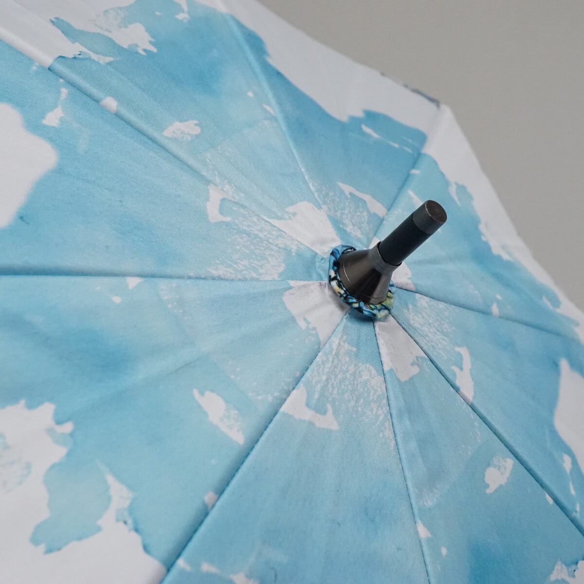 ターコイズブルーを基調とした全体の色合いと、手元の寒竹素材が涼しさを感じさせてくれます。
