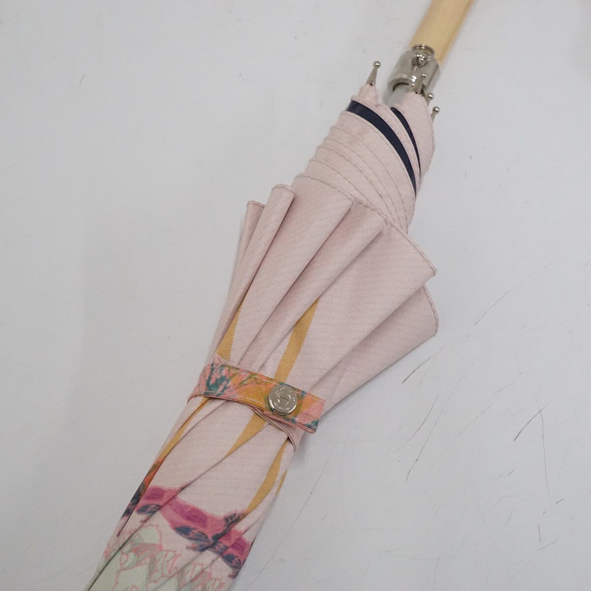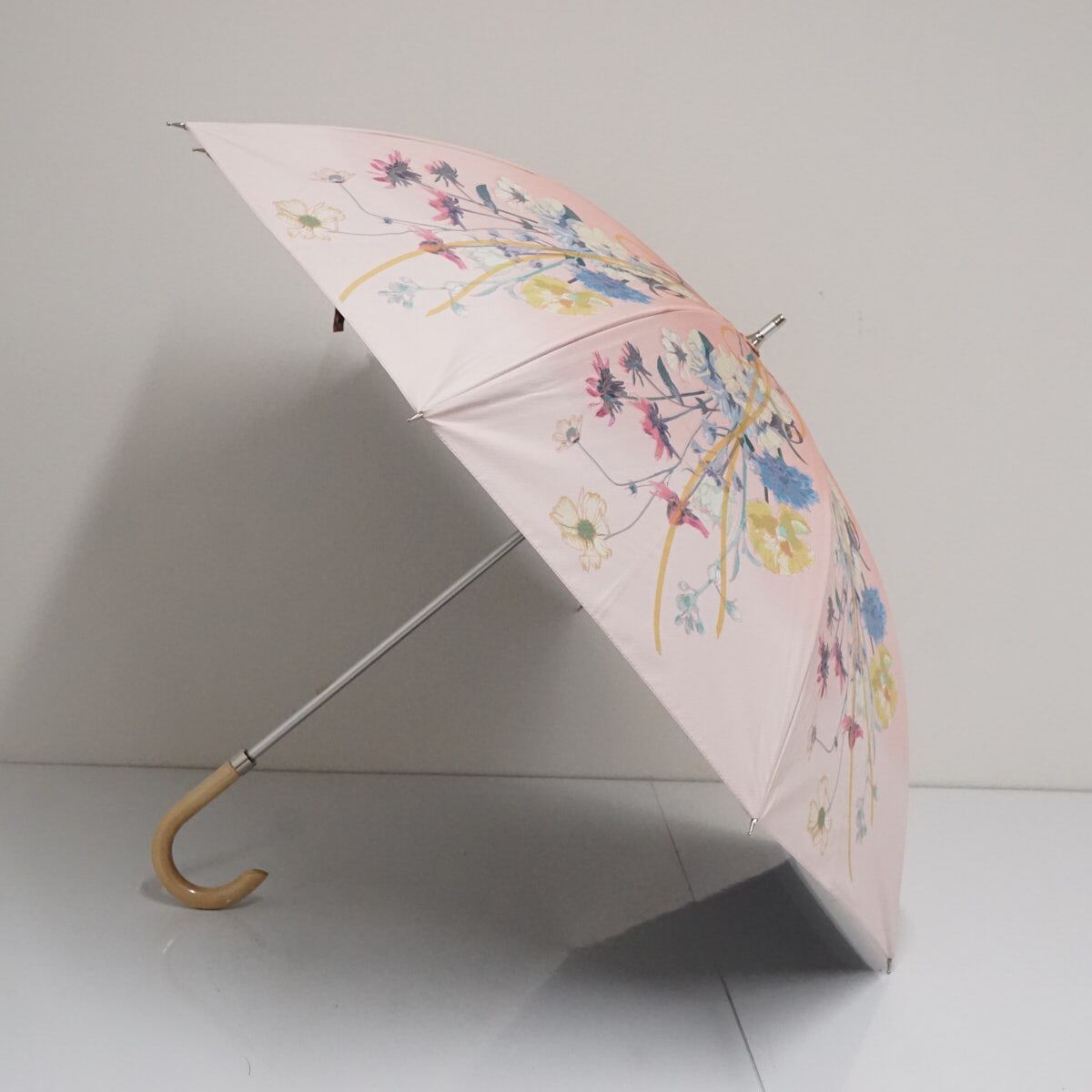 晴雨兼用傘 HANWAY ハンウェイ USED美品 フラワー 花柄 グラデーションカラー 遮光 グラス骨 木製手元 ピンク 55cm S2682