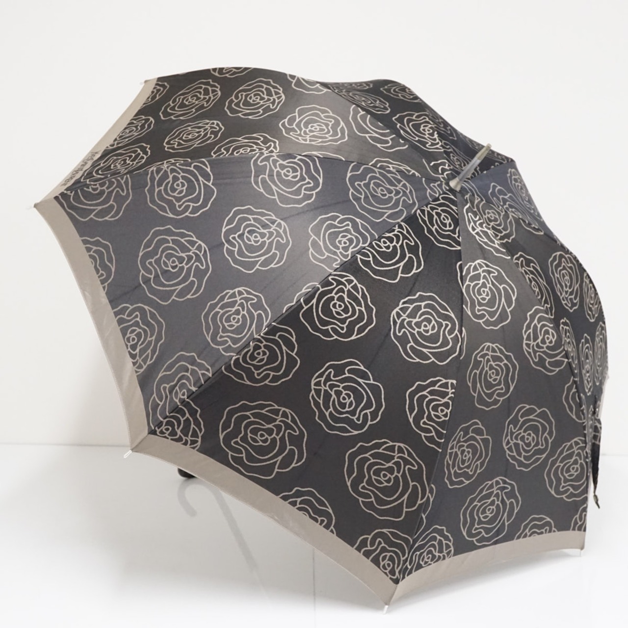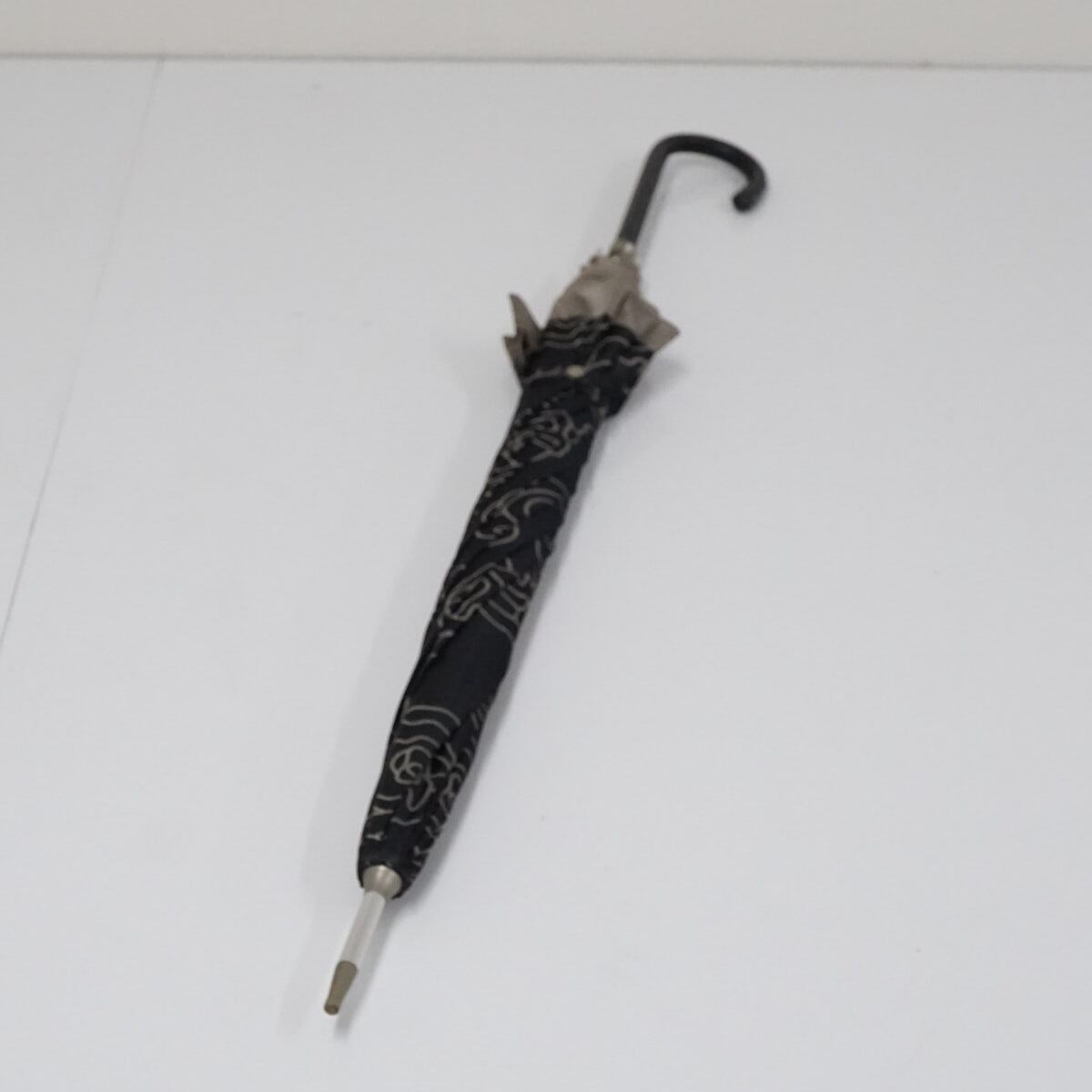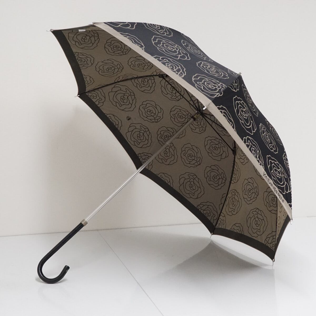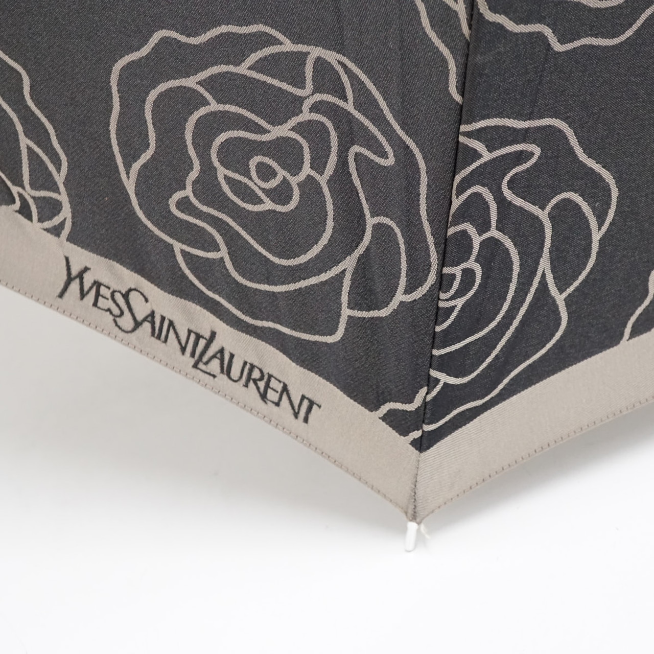 傘 YSL イヴサンローラン USED美品 フラワー ローズ ジャガード グラス骨 ブランド 高級 ブラック 60cm S2686
