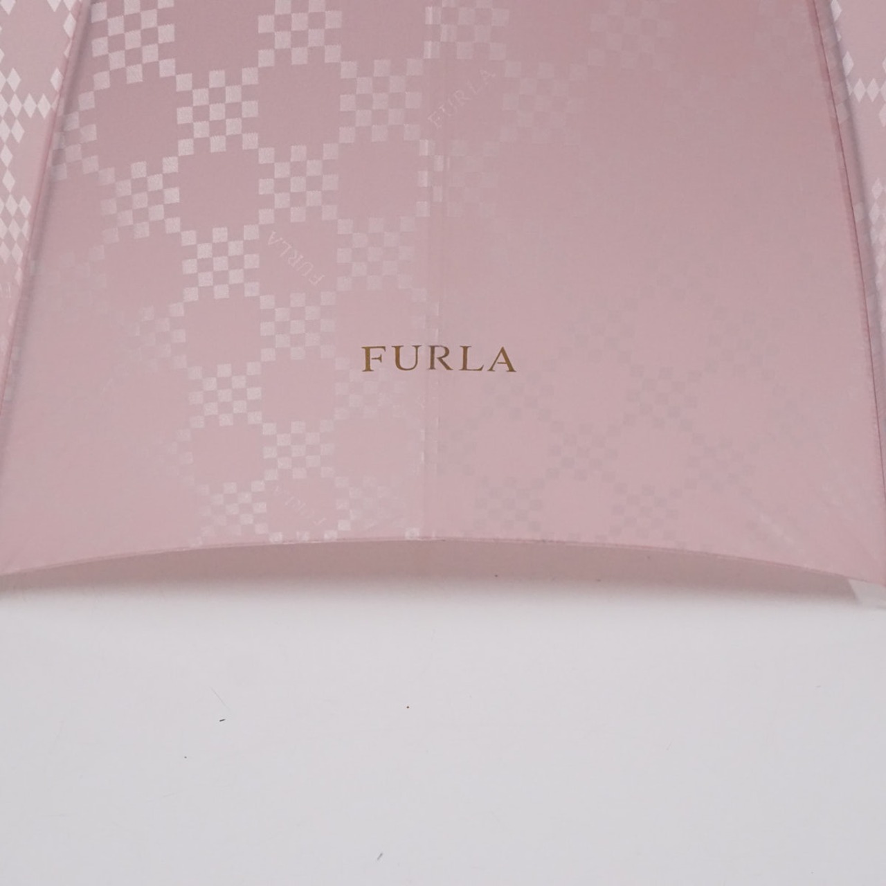傘 FURLA フルラ USED美品 チェック チェッカー 市松模様 ブランド ロゴ ジャンプ ピンク 60cm S2687
