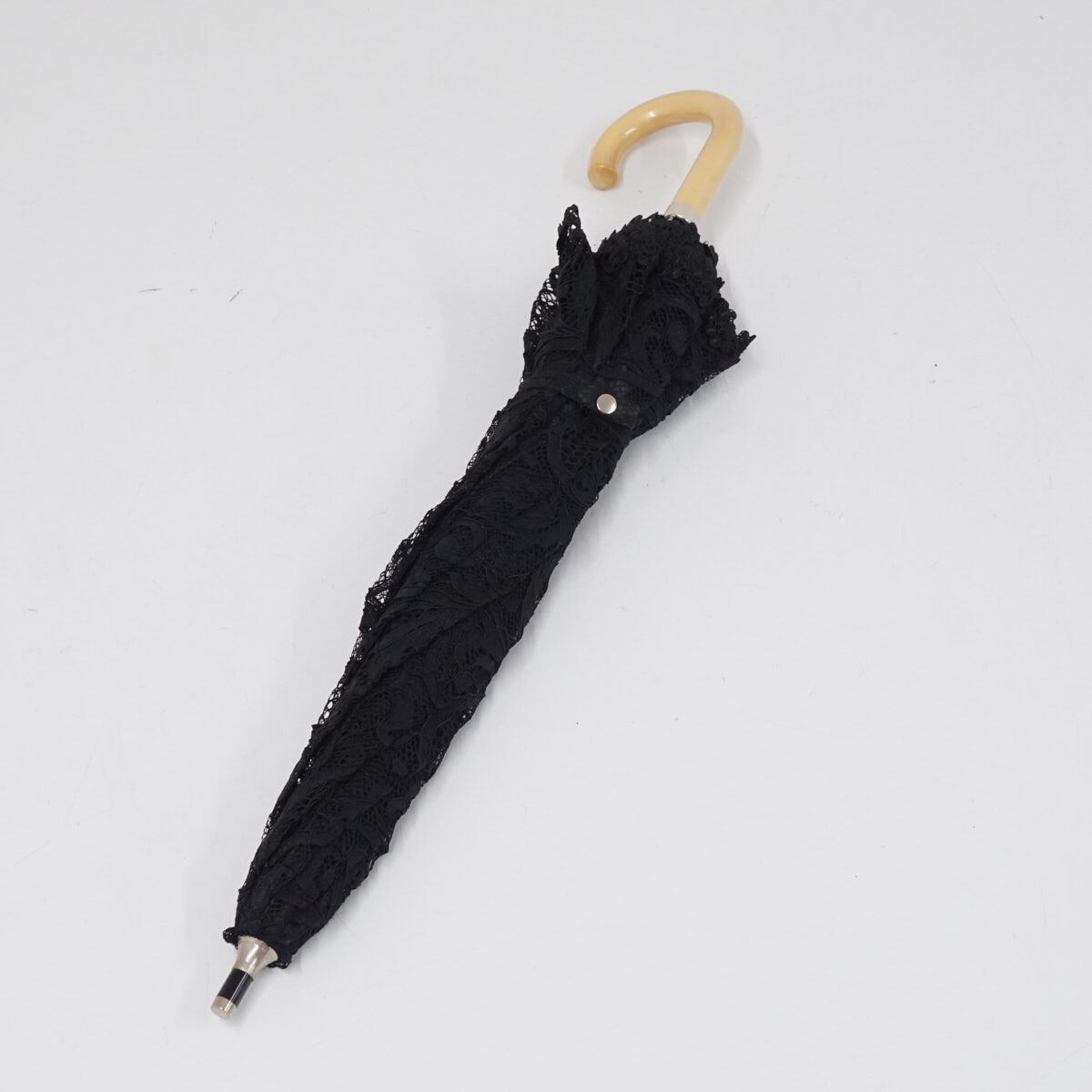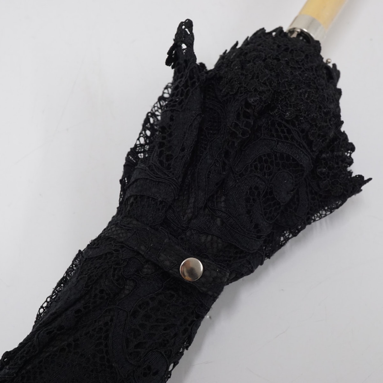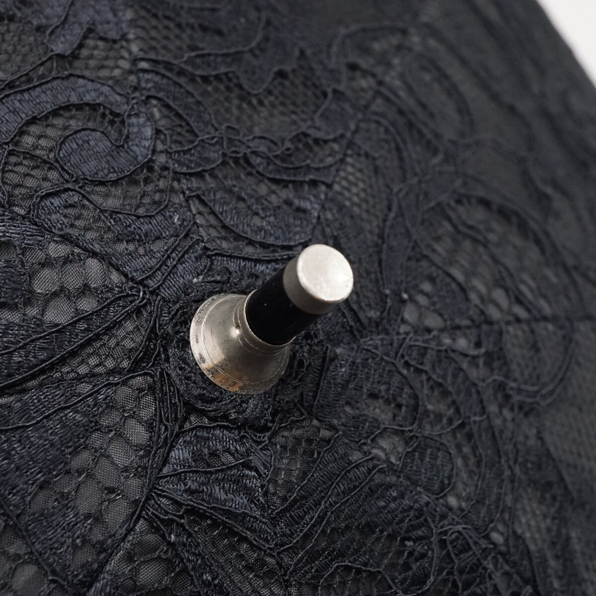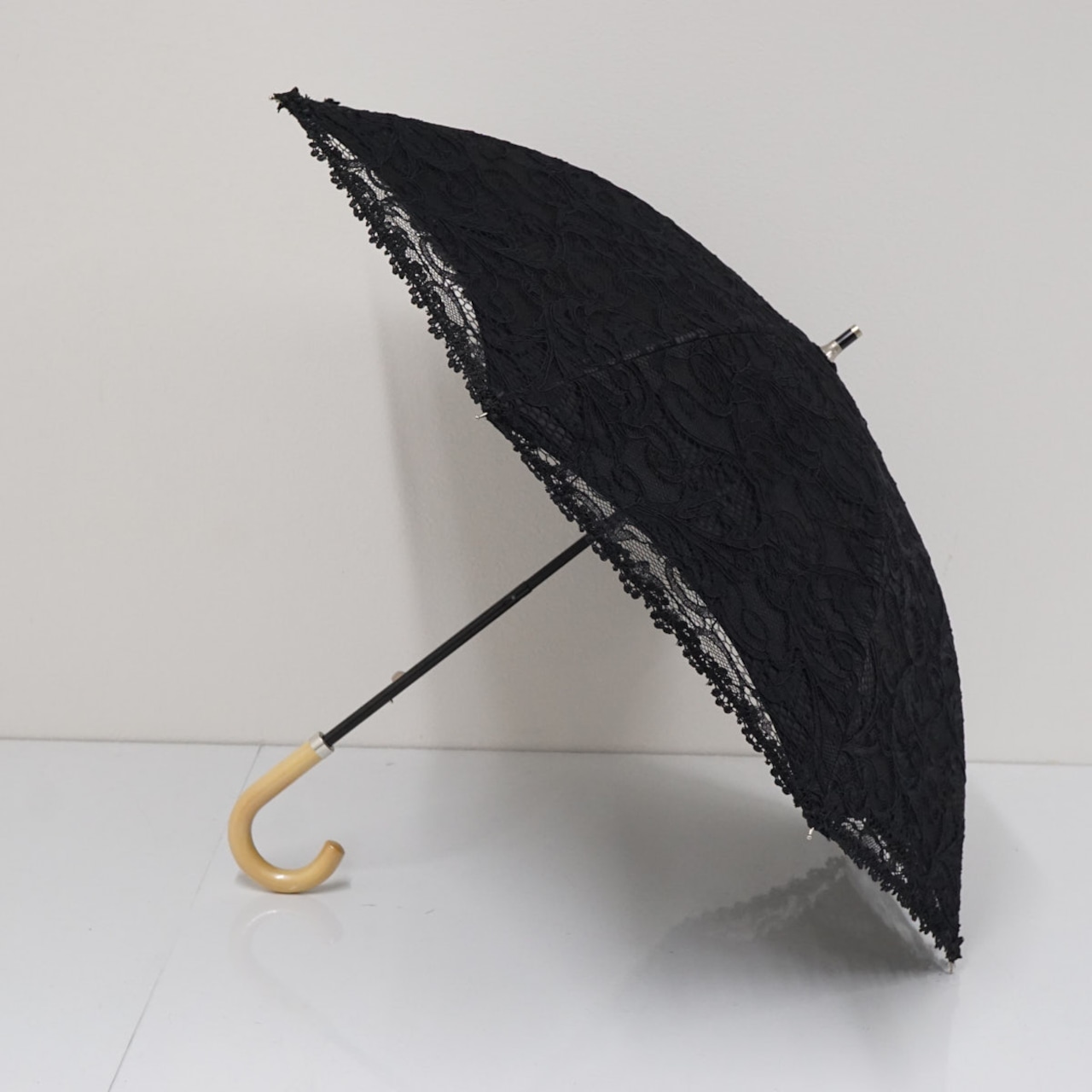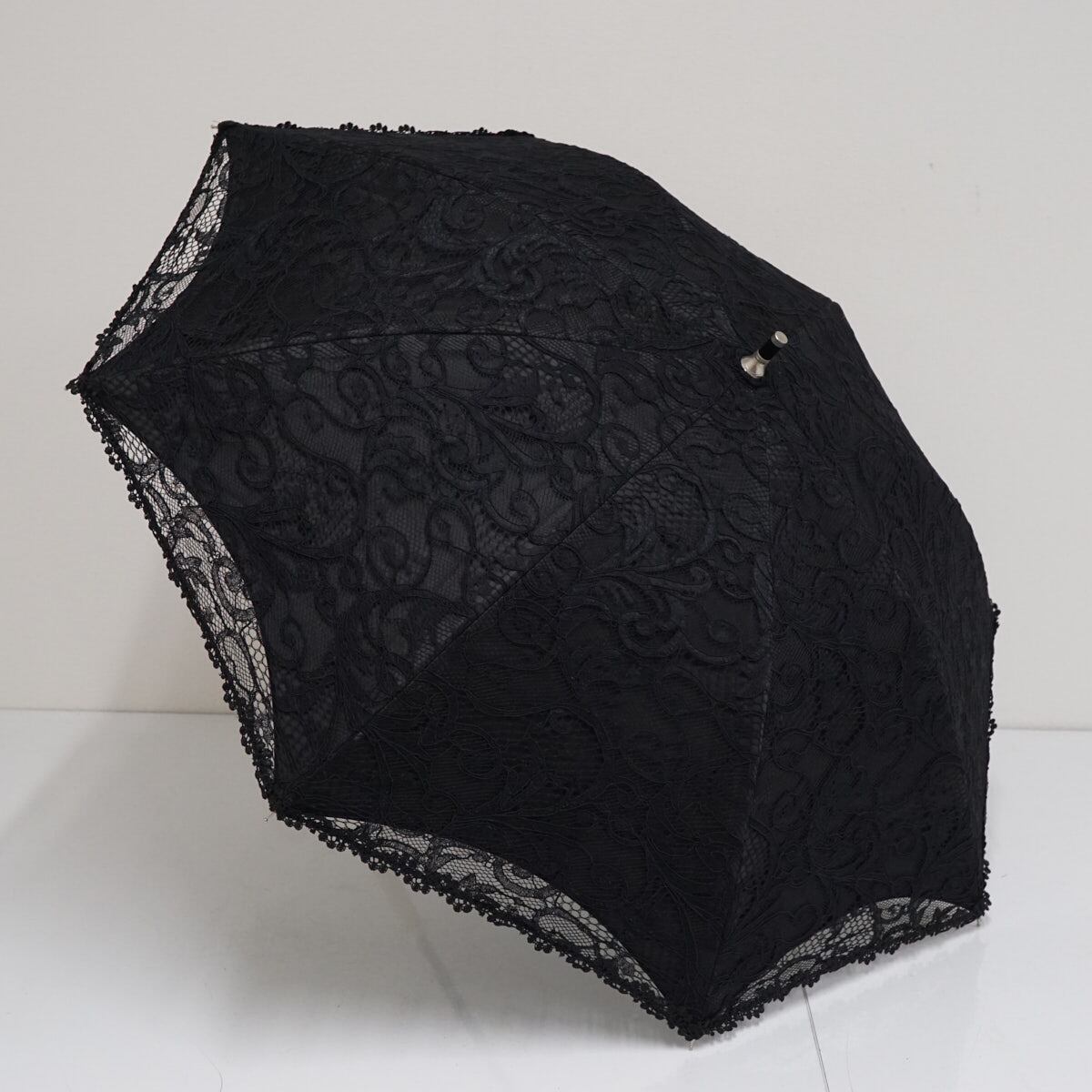 日傘 近沢レース店 高級 USED超美品 総レース エレガント 長日傘 木製手元 ブラック 45? S2696