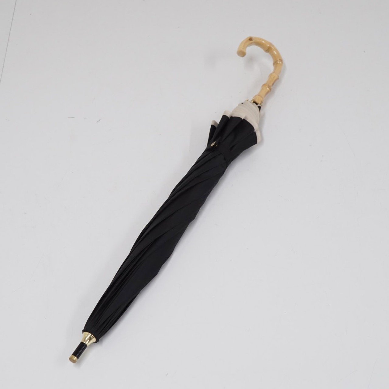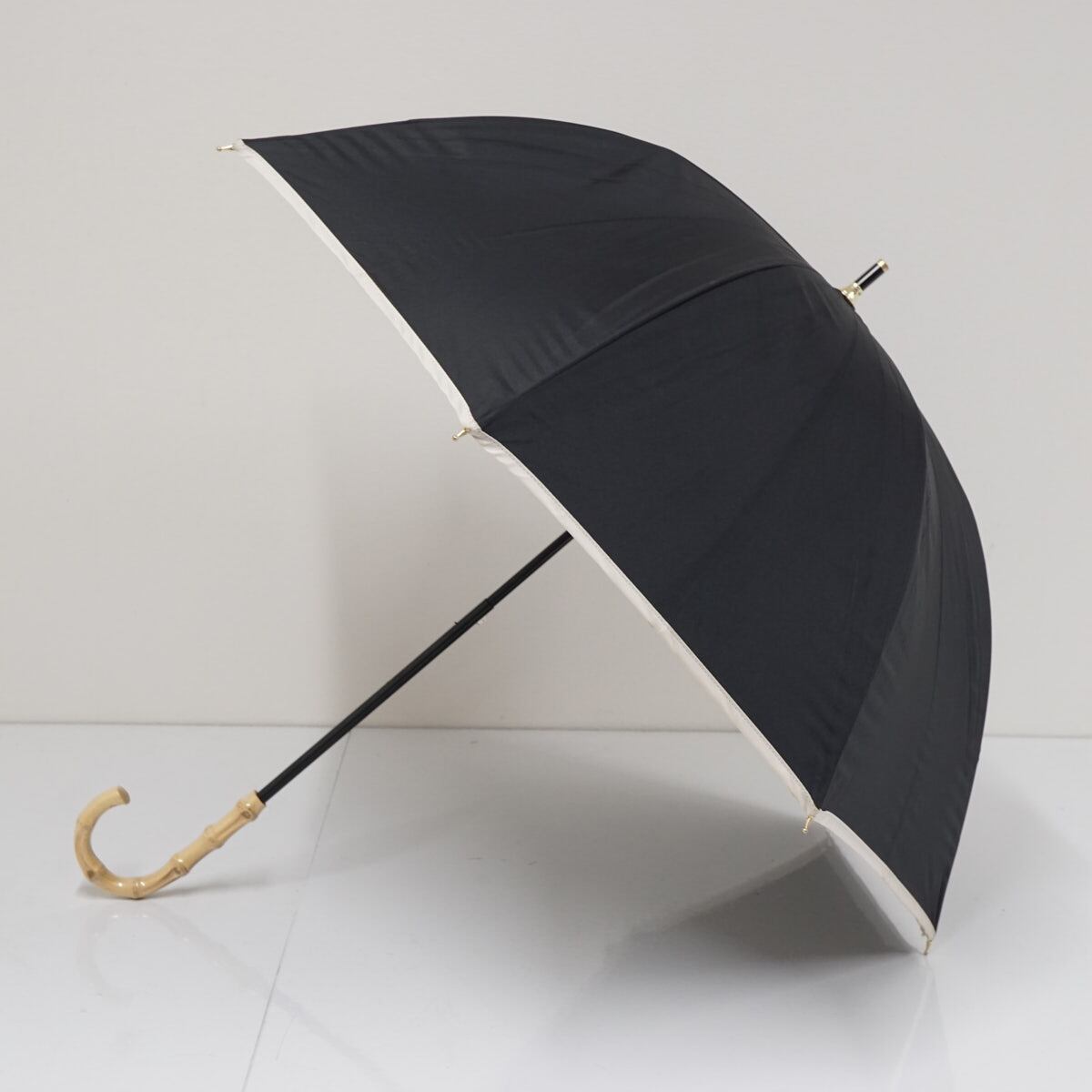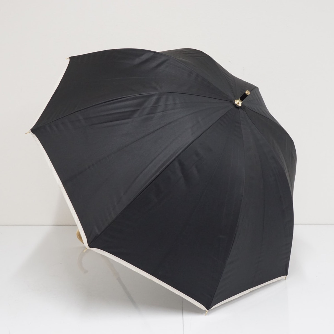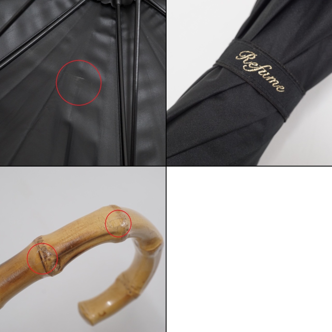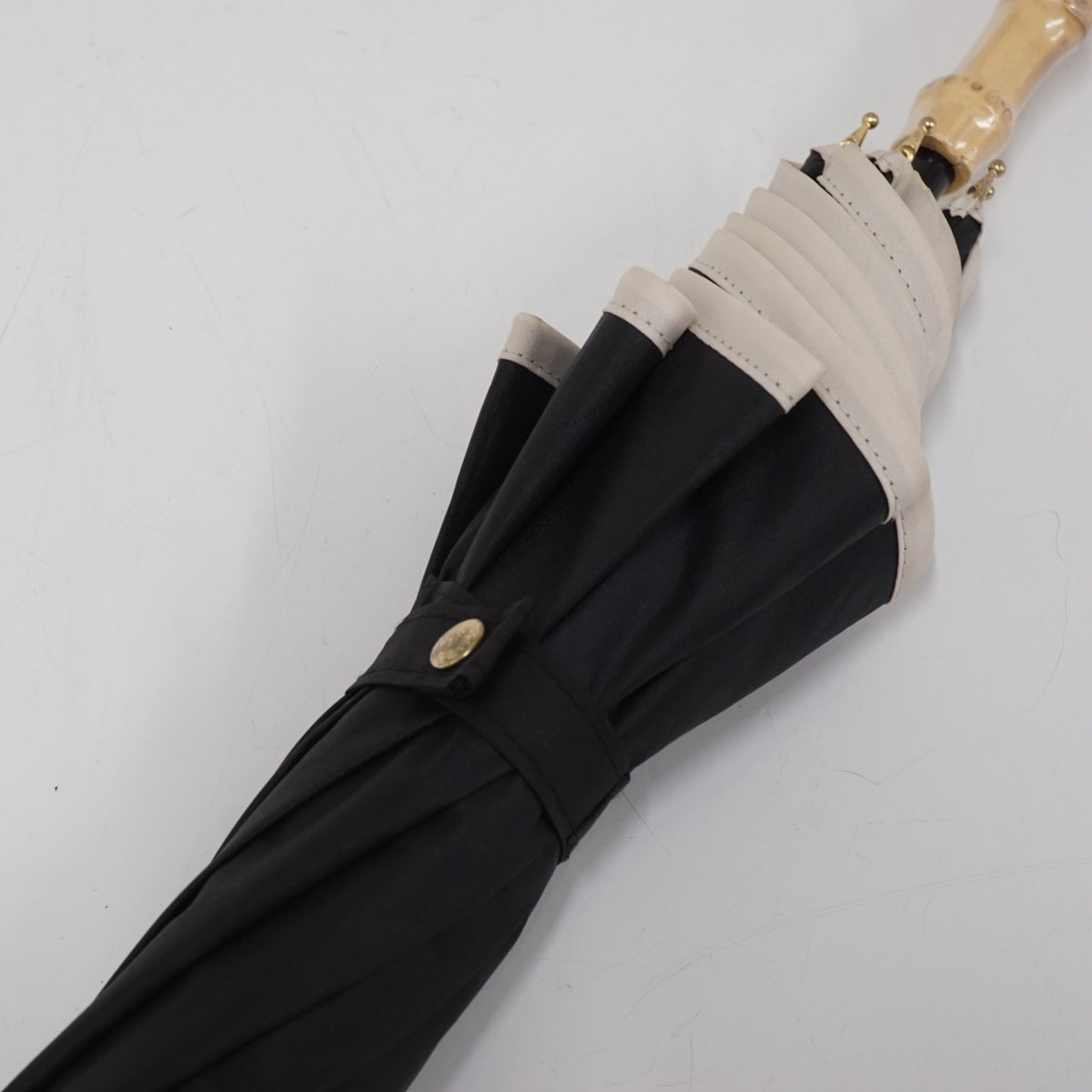 晴雨兼用日傘 Refume レフューム USED美品 完全遮光 UVカット 竹手元 遮光 遮熱 軽量 レディース UV ブラック×ベージュ 50cm S2700