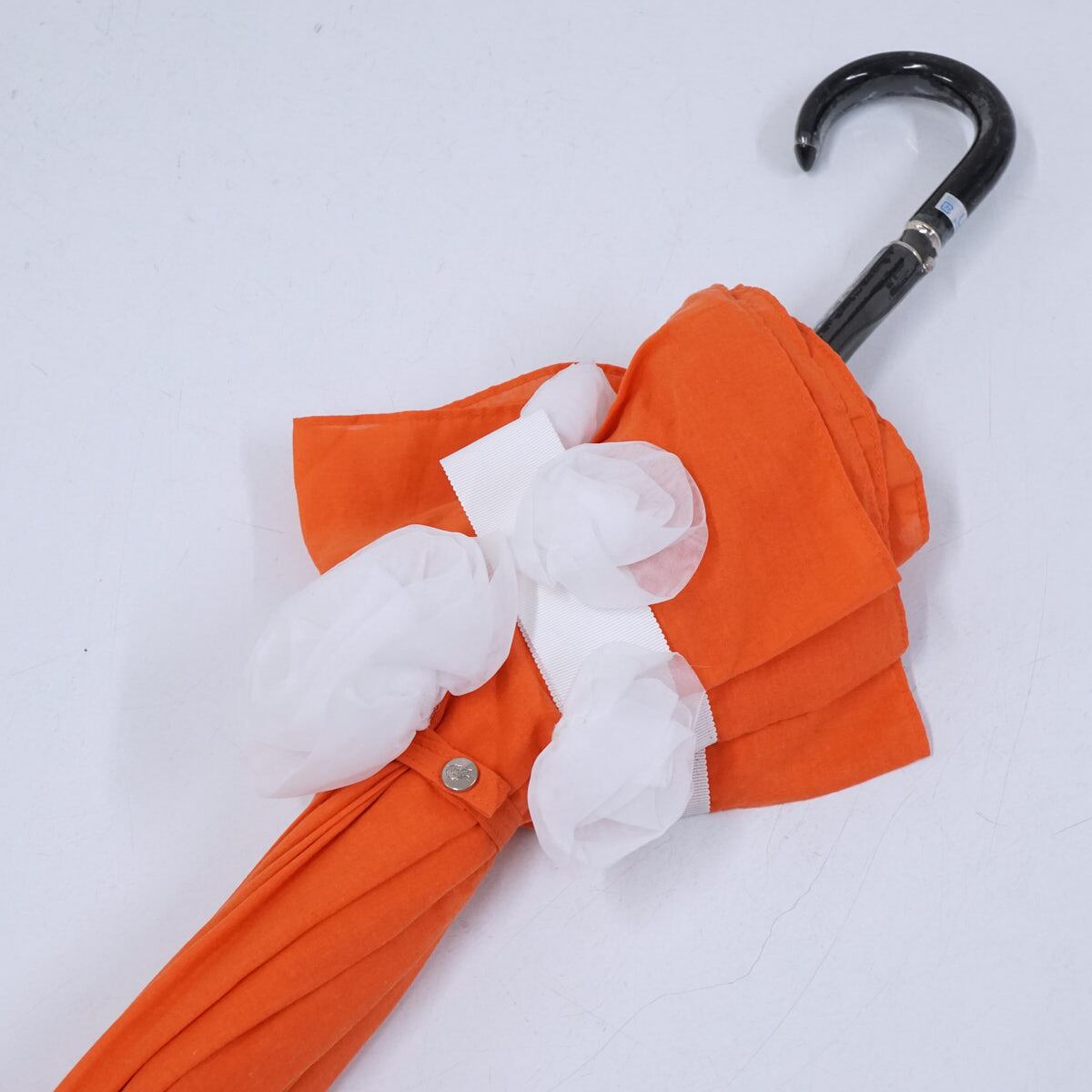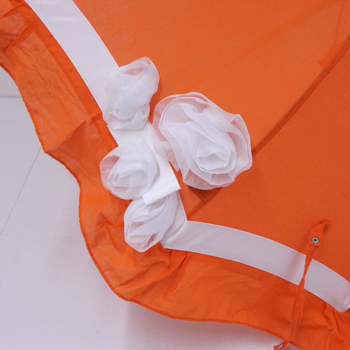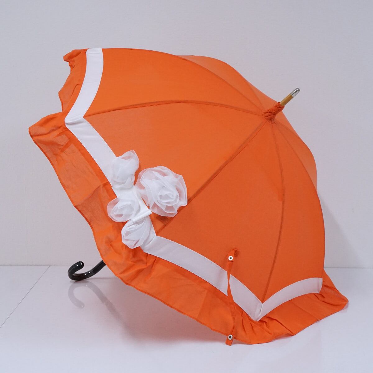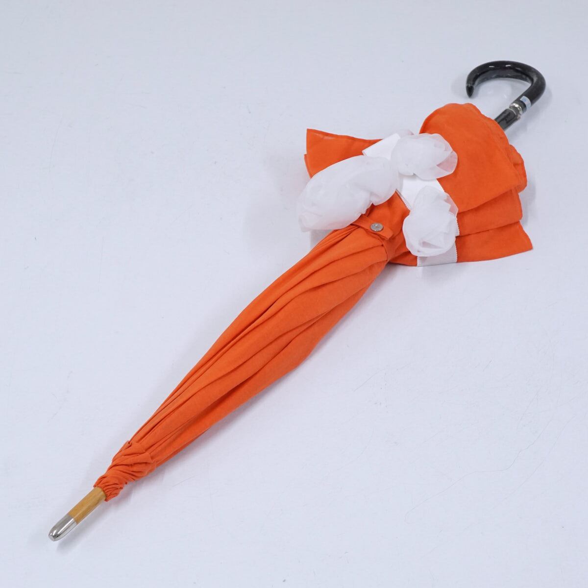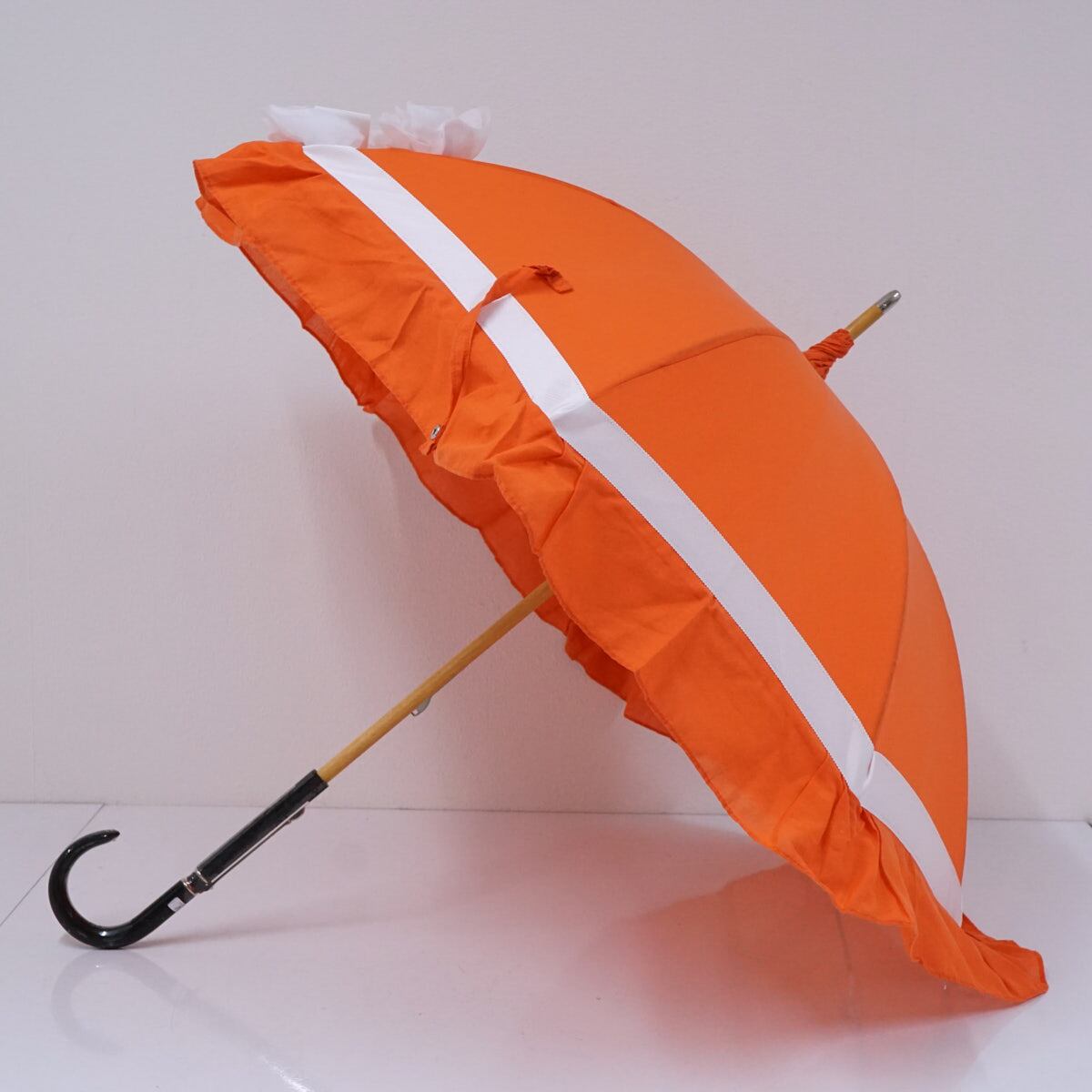 高級婦人日傘 USED美品 オレンジ フラワー フリル グログランリボン 50cm S2720