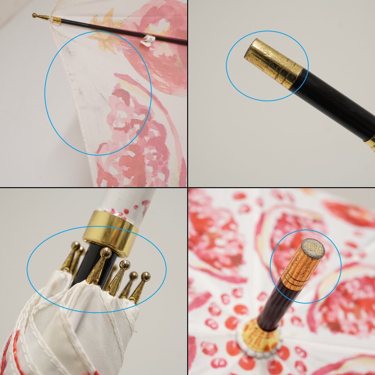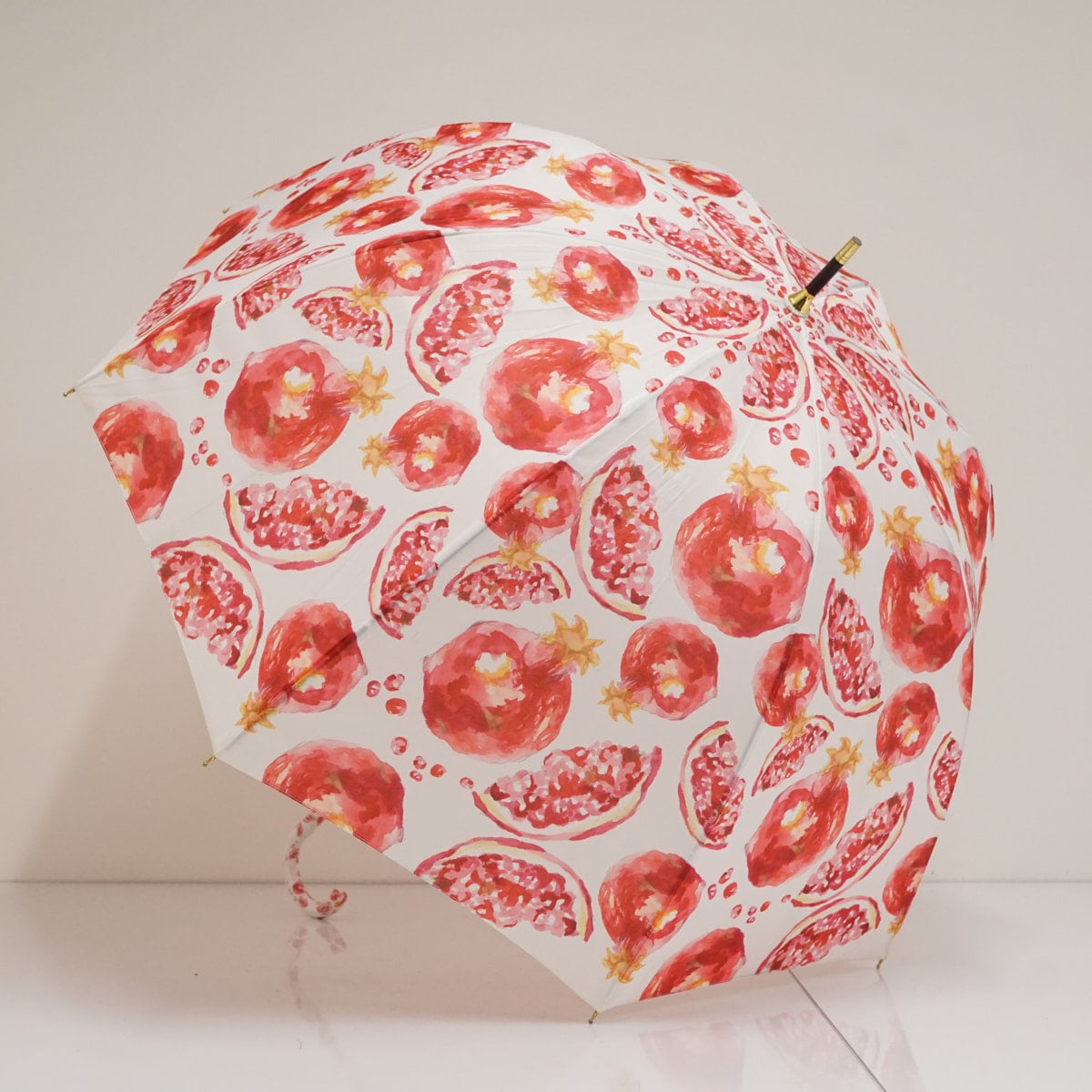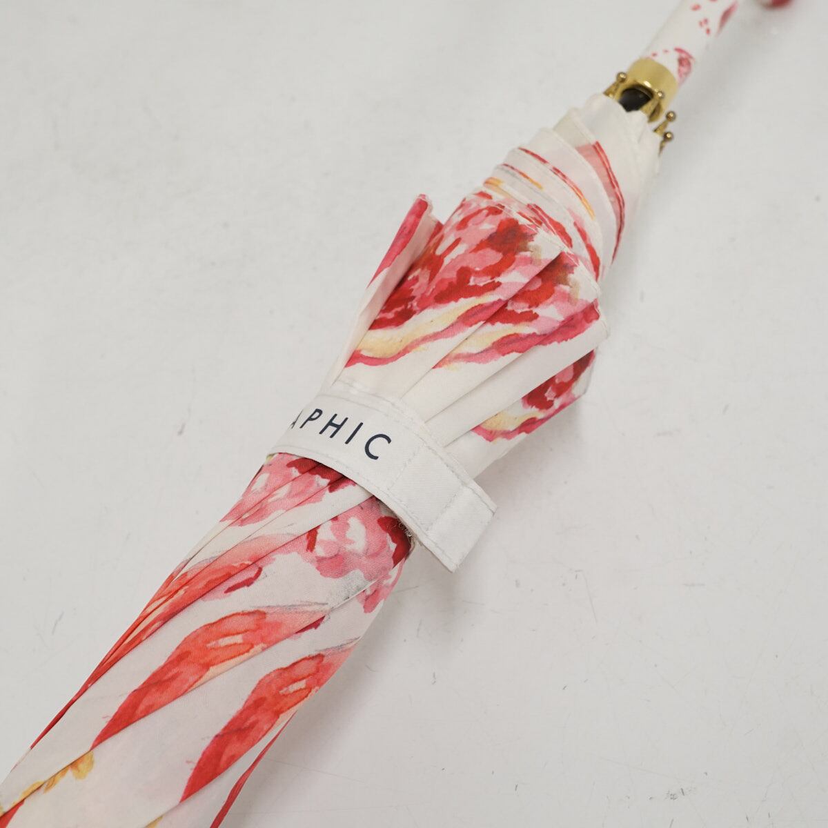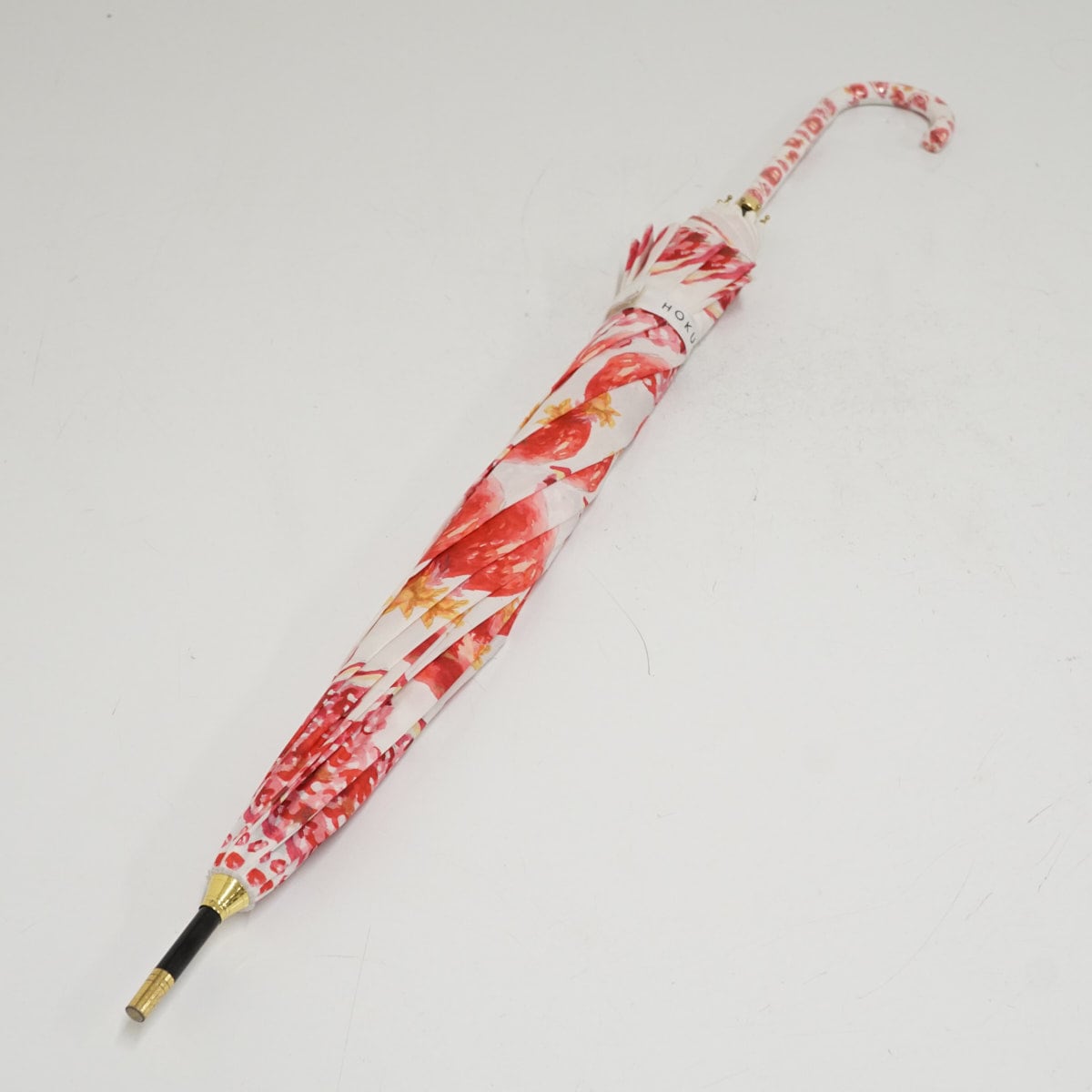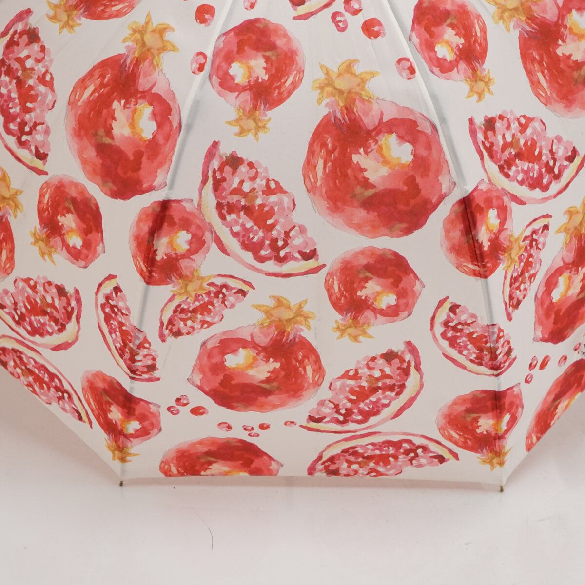 傘 HOKUSAI GRAPHIC 北斎グラフィック USED品 丸屋根深張傘 柘榴 ザクロ ホワイト×レッド グラスファイバーフレーム 58cm A3536