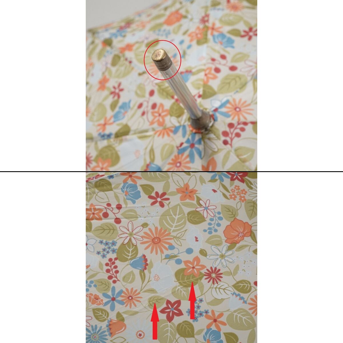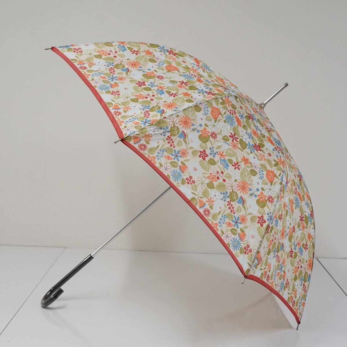 裏地にもうっすらと透ける花々が雨の日のコーディネートを華やかにしてくれます。