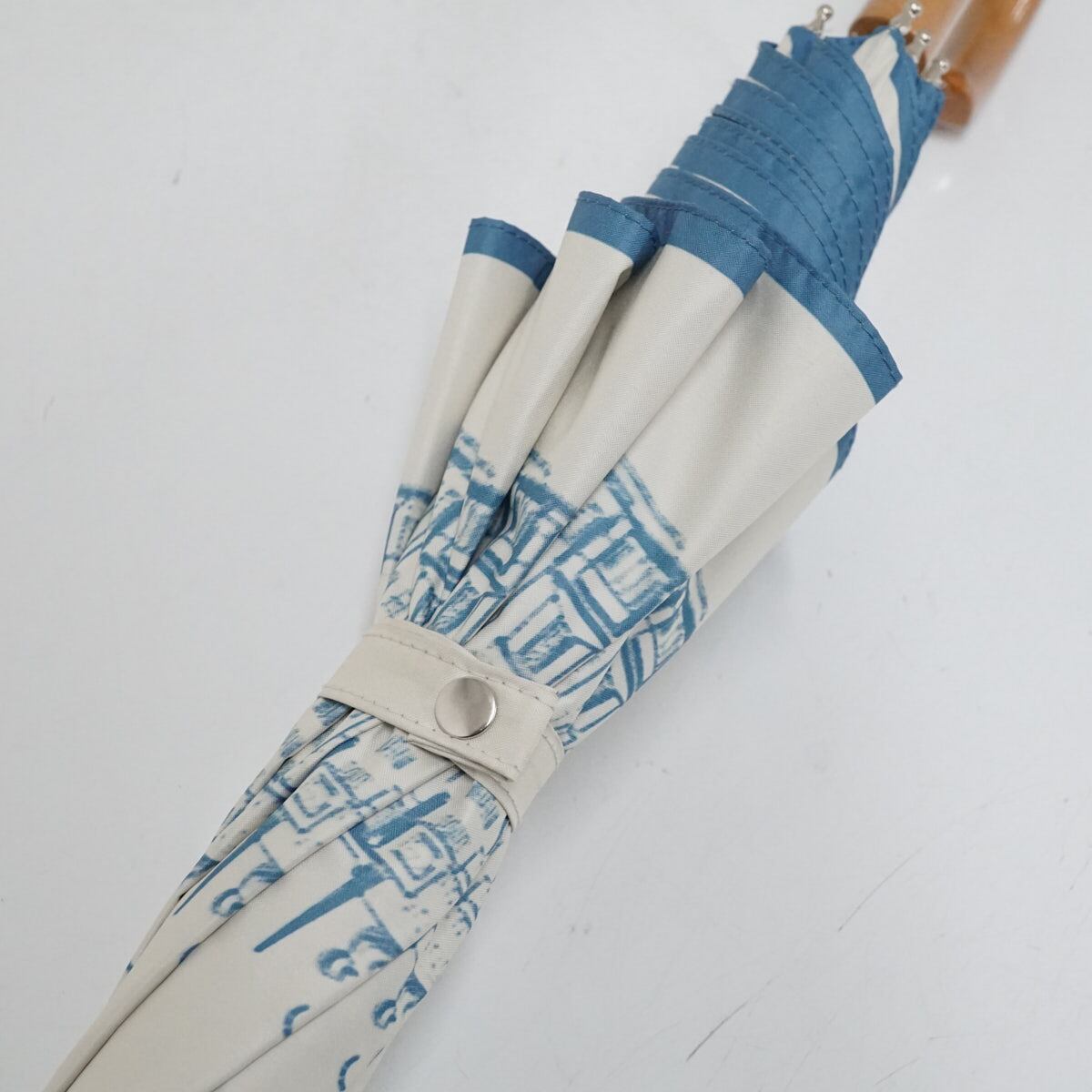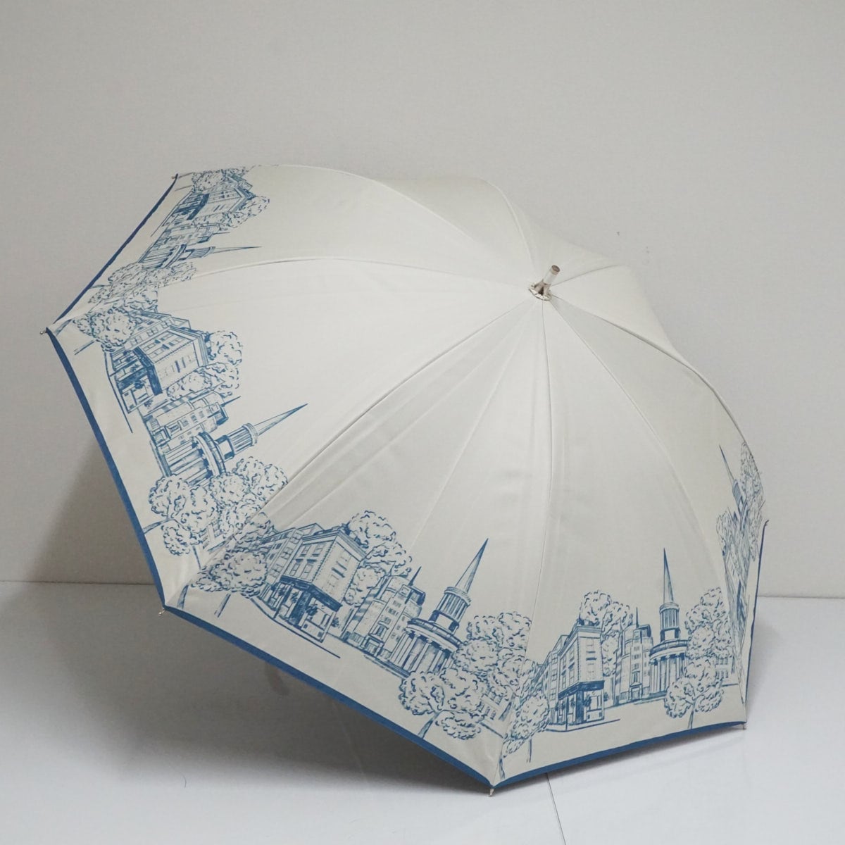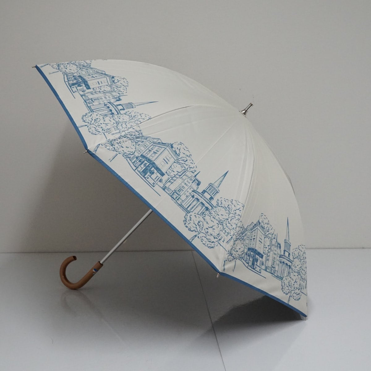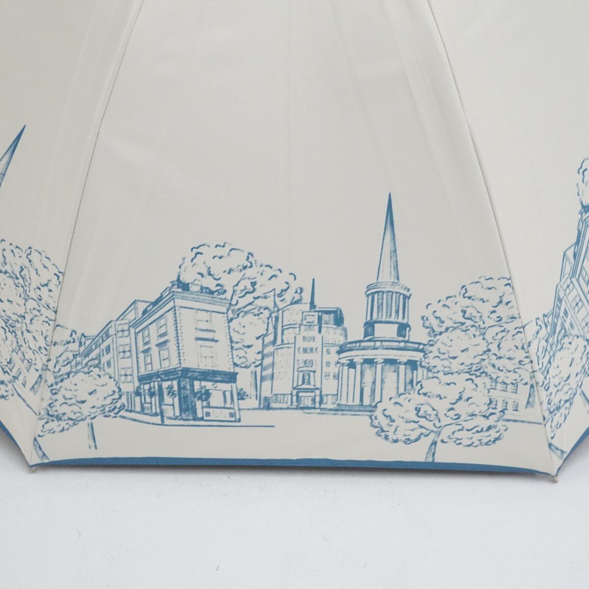 上品な佇まいの街並み柄をプリントした遮光100%のアンブレラです。