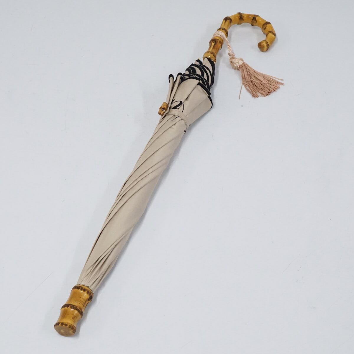 晴雨兼用日傘 an another angelus アンアナザーアンジェラス USED美品 カリグラフィー ロゴ刺繍 ベージュ 50cm S2750