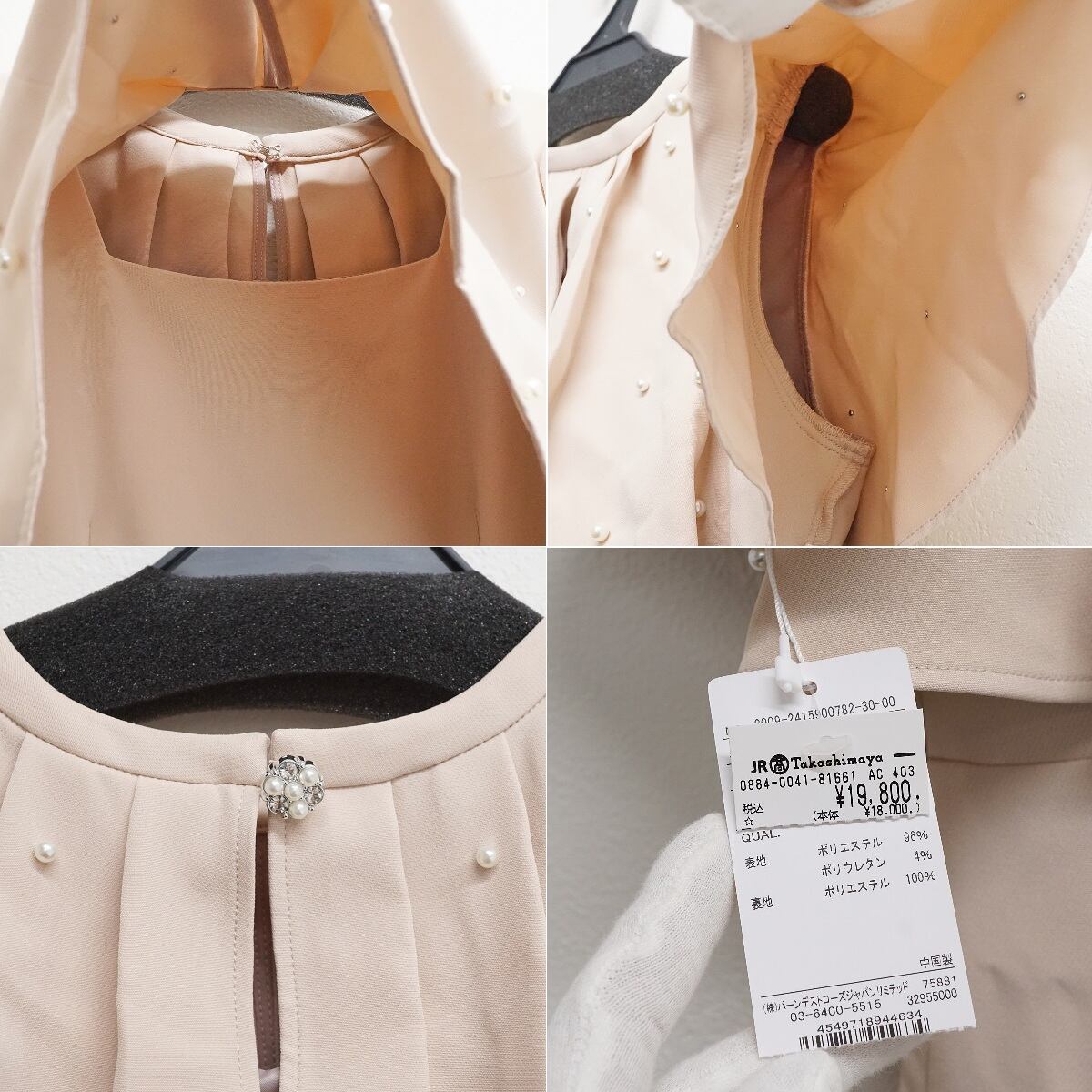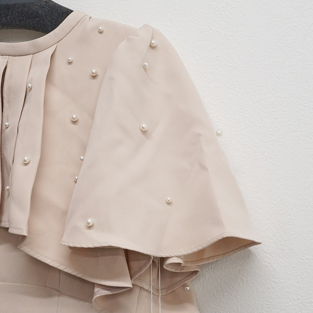 光沢感のあるパールをバックスタイルまで施した華やかなワンピースドレスです。