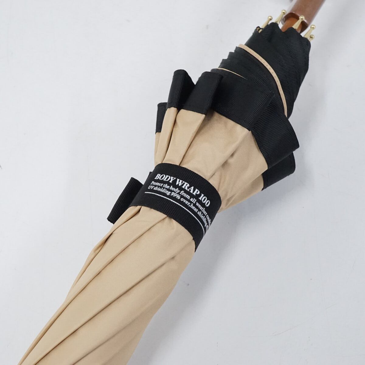 晴雨兼用日傘 A.S.S.A エーエスエスエー USED美品 BODY WRAP グログランテープ レディース キャメル 60cm A2752