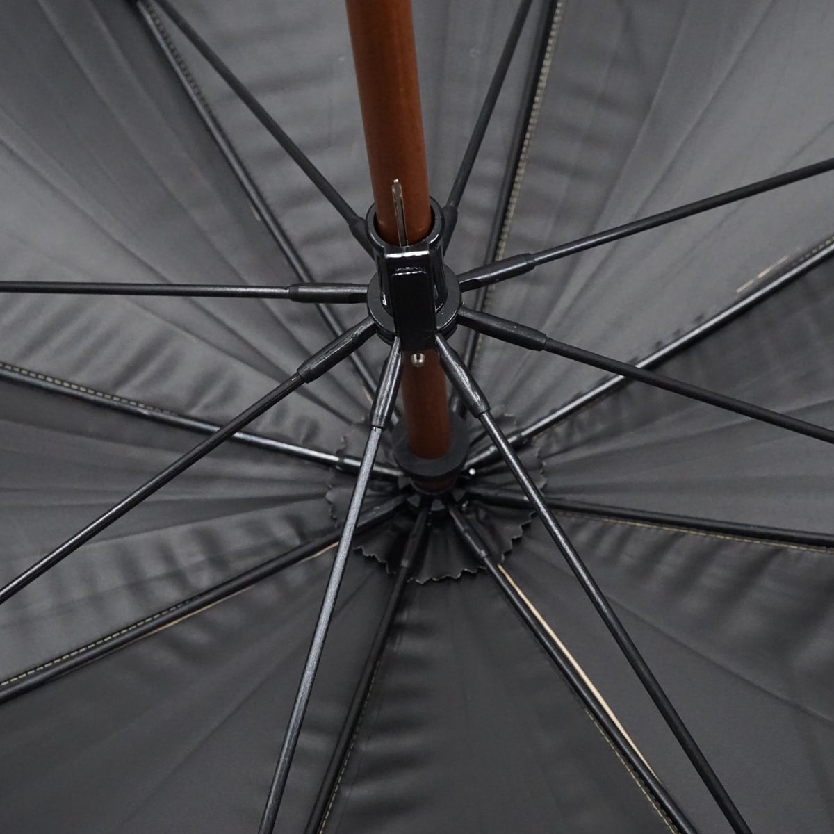 大きな親骨と深張りで丸いシルエットで、日差しや雨から体を包み込むように守ります。