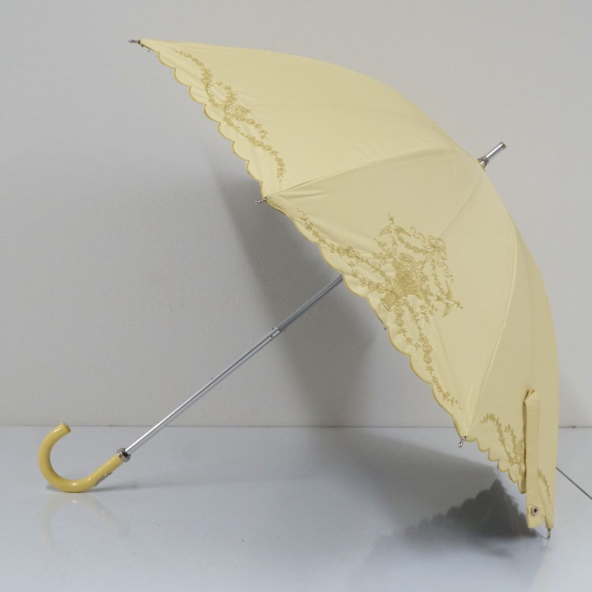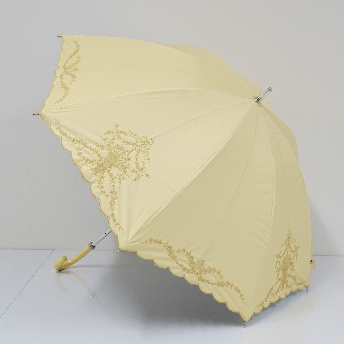 晴雨兼用日傘 LADUREE ラデュレ USED美品 フラワー 刺繍 イエロー サマーシールド かわいい 47cm S2732