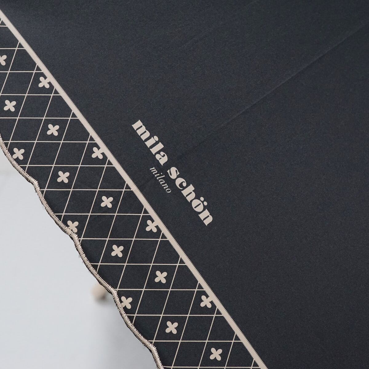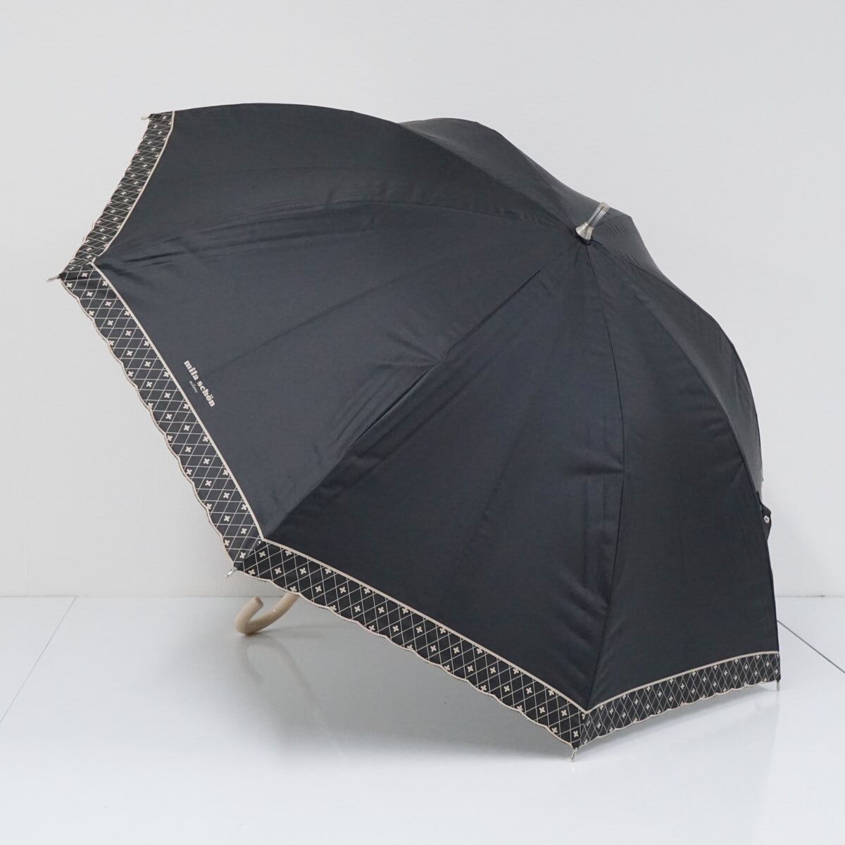 晴雨兼用日傘 mila schon ミラショーン USED美品 遮光 遮熱 ブラック ロゴ 大判 UV 55cm A2733