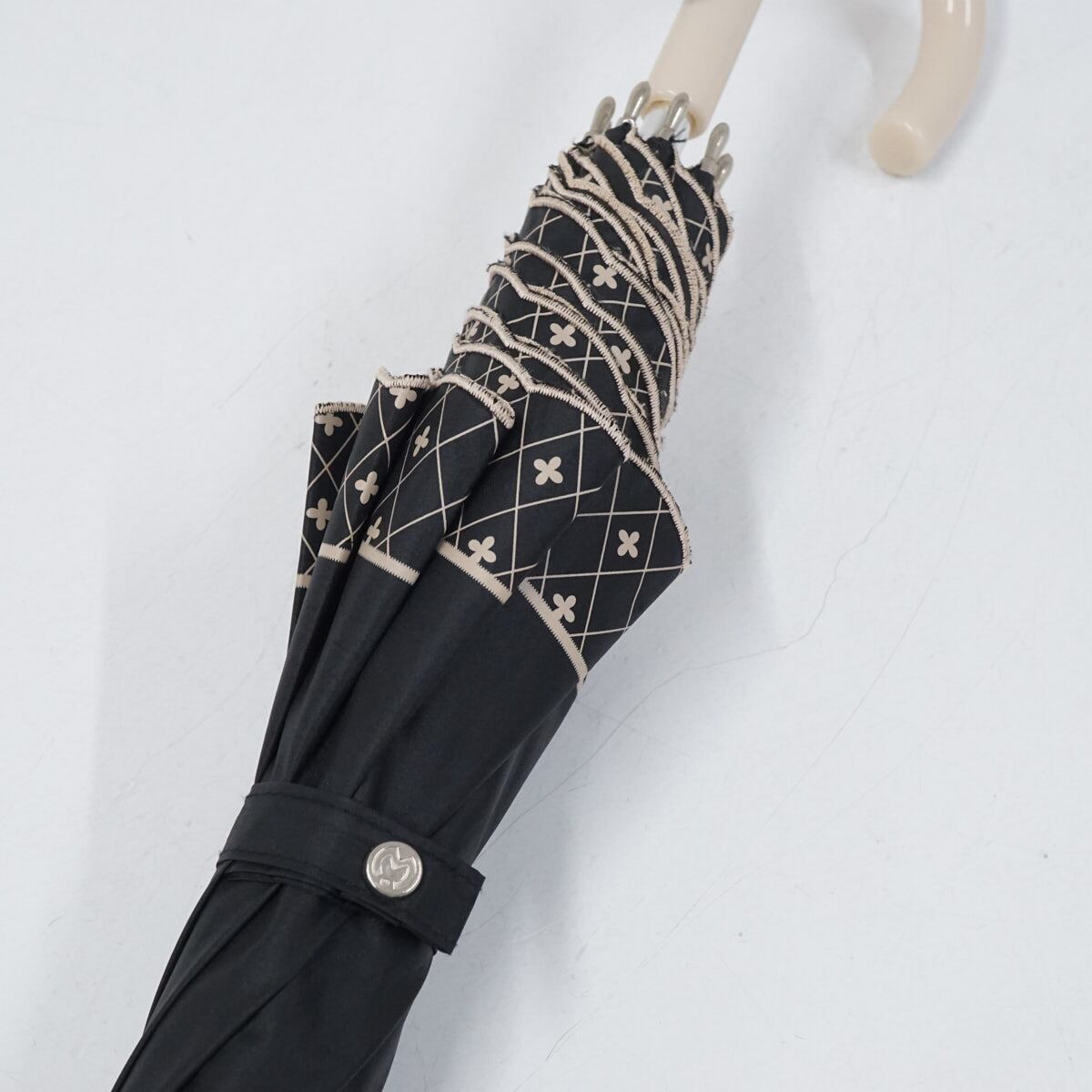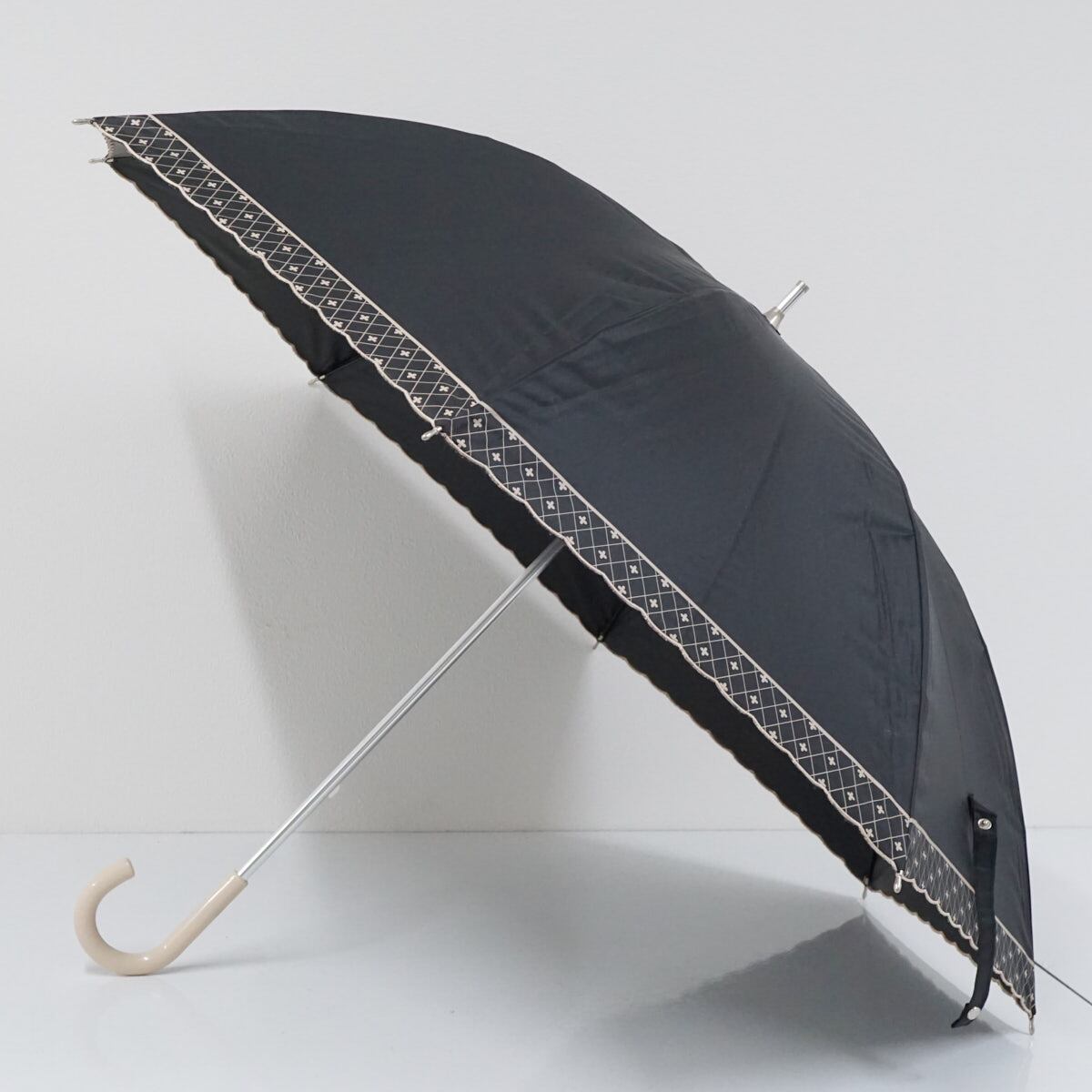 ブラックの生地の縁にプリントを施したエレガントな日傘です。