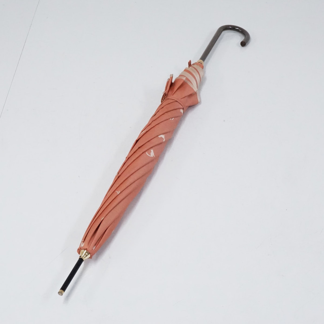 晴雨兼用傘 小宮商店 USED美品 高級 山梨ジャガード織 レディース ひだまりねこ UVカット オレンジ 58cm S2753