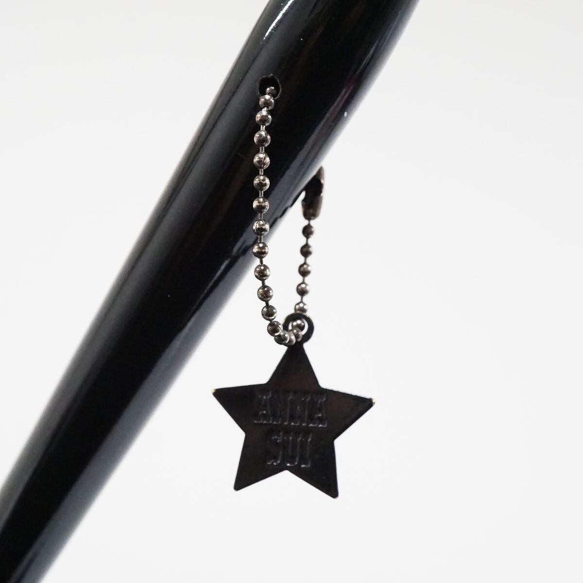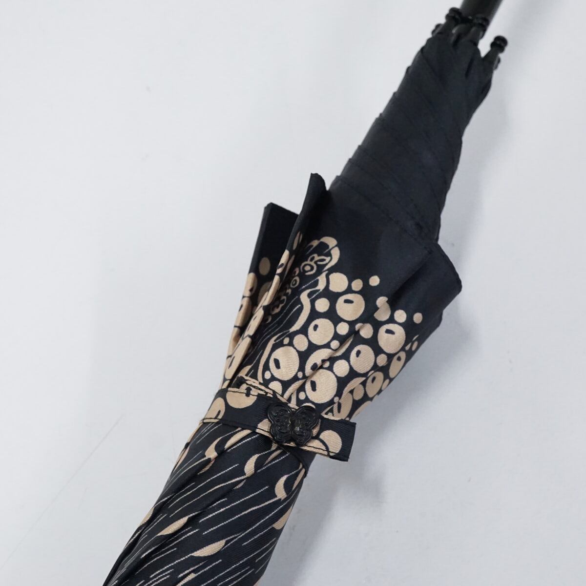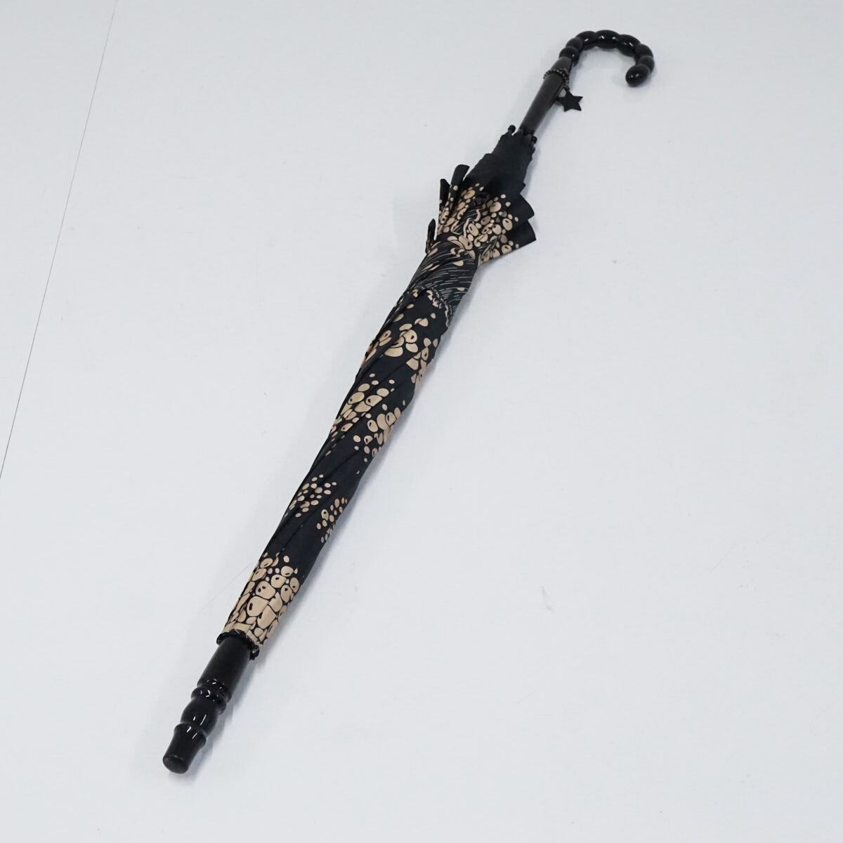 傘 ANNA SUI アナスイ パゴダ傘 USED美品 エキゾチックアート 個性的 グラス骨 チャーム付き ブラック×ベージュ 58cm S2754
