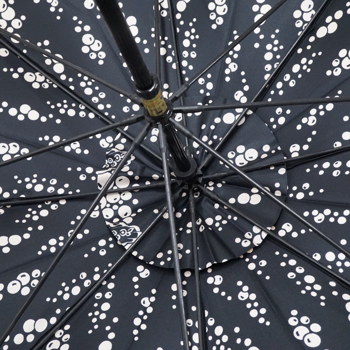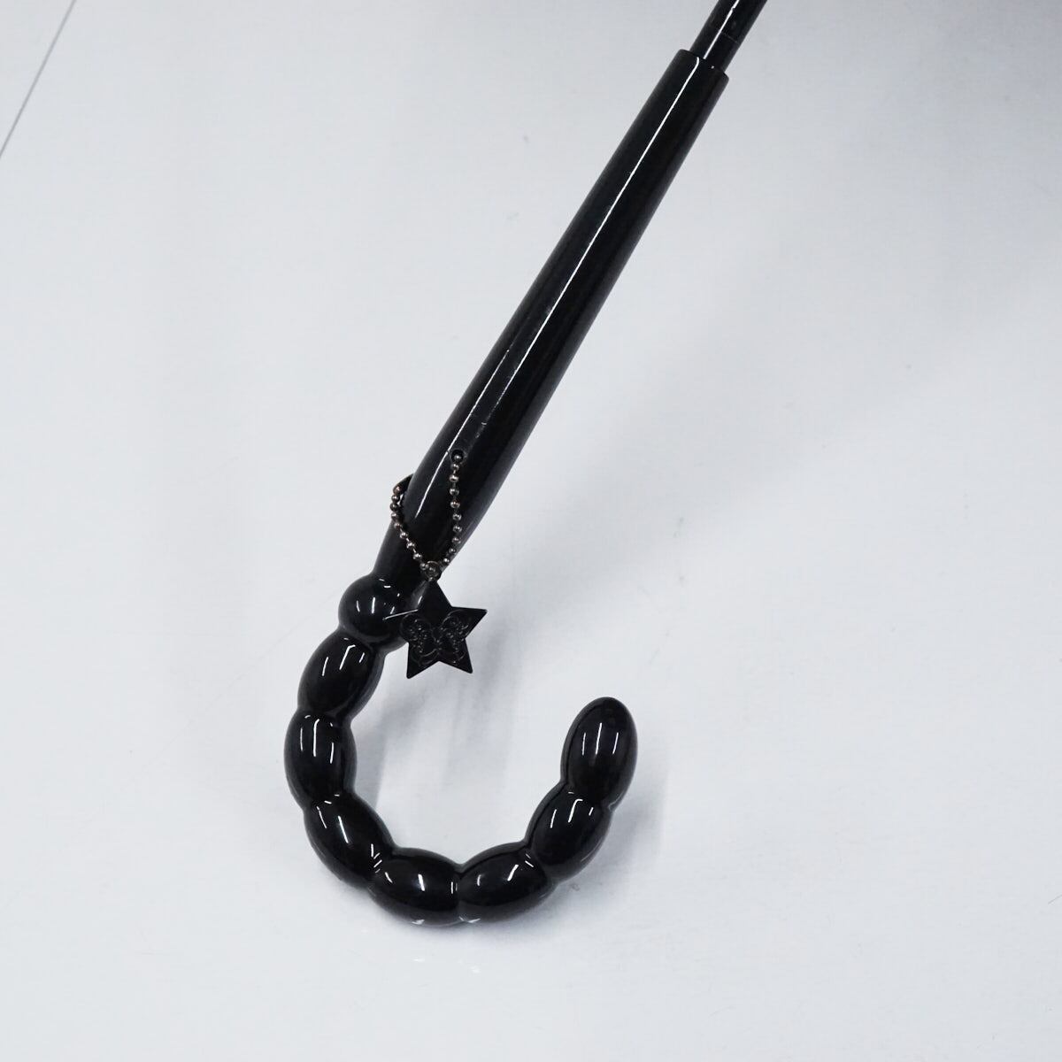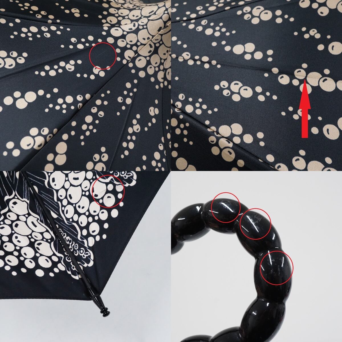 傘 ANNA SUI アナスイ パゴダ傘 USED美品 エキゾチックアート 個性的 グラス骨 チャーム付き ブラック×ベージュ 58cm S2754