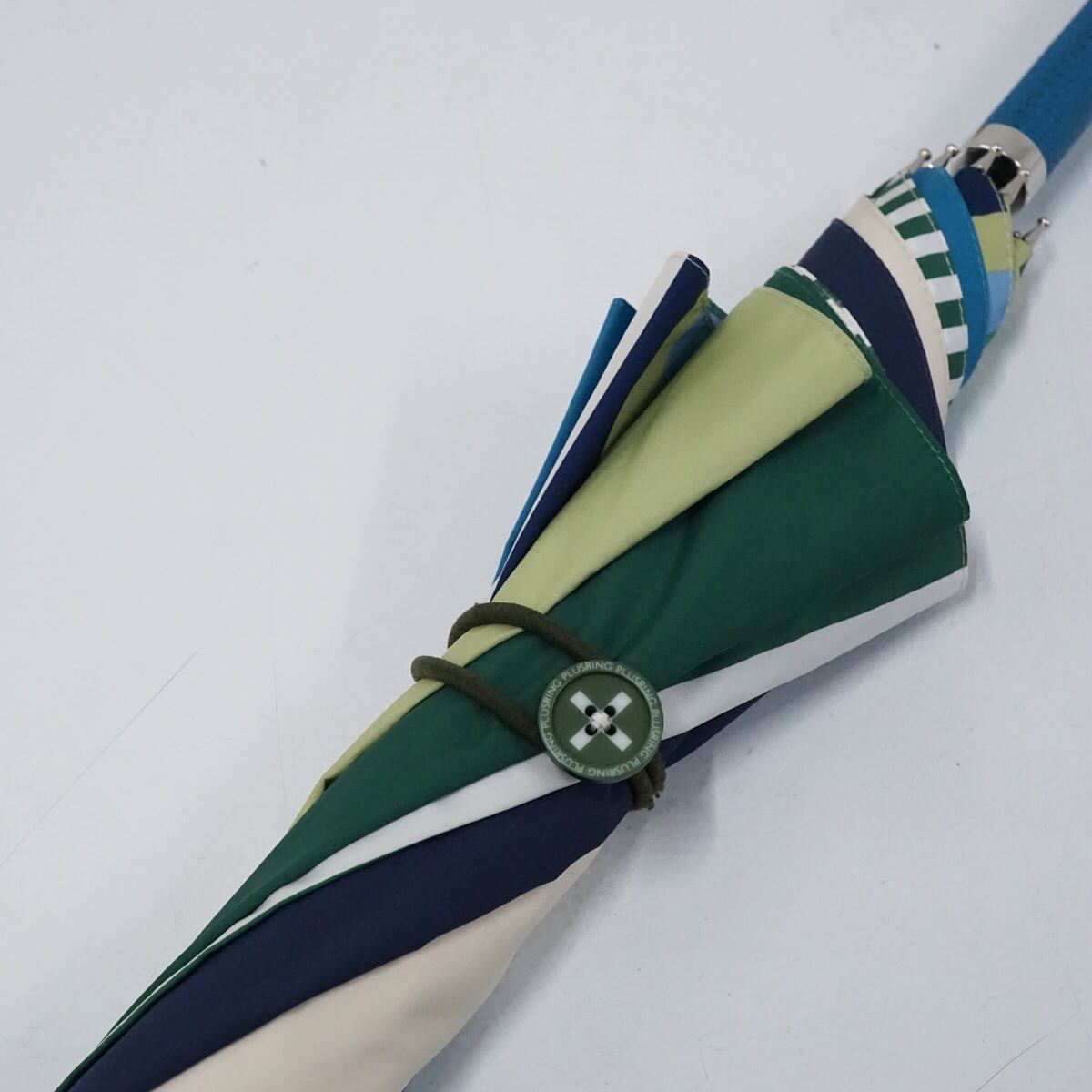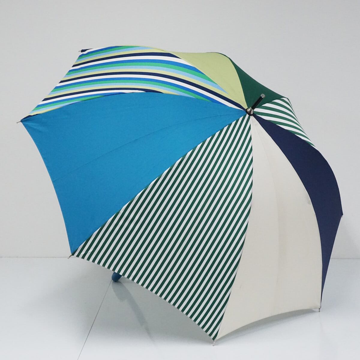 傘 +RING coco プラスリング ココ USED美品 パッチワーク カラフル 派手 おしゃれ ブルー×グリーン 60cm A2756