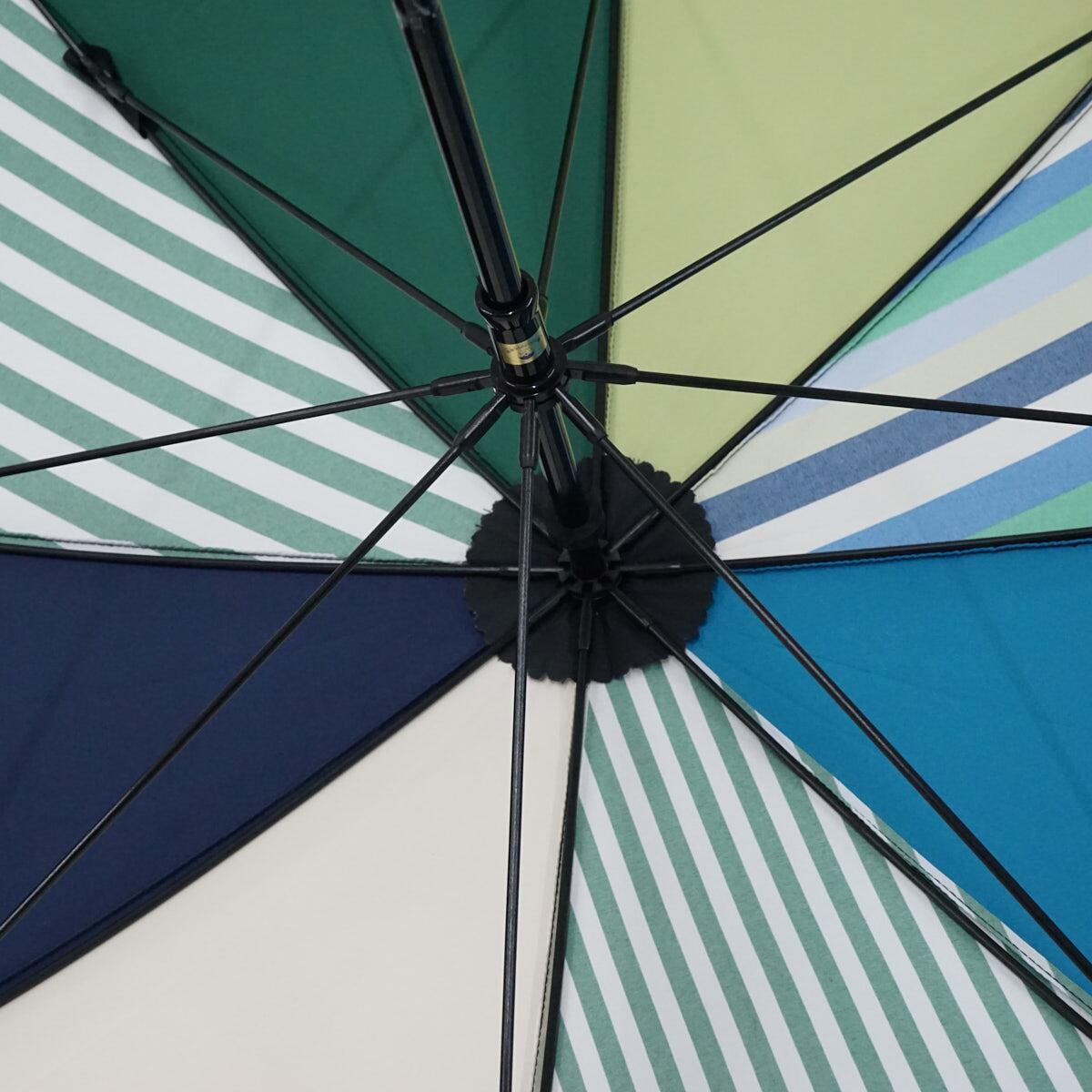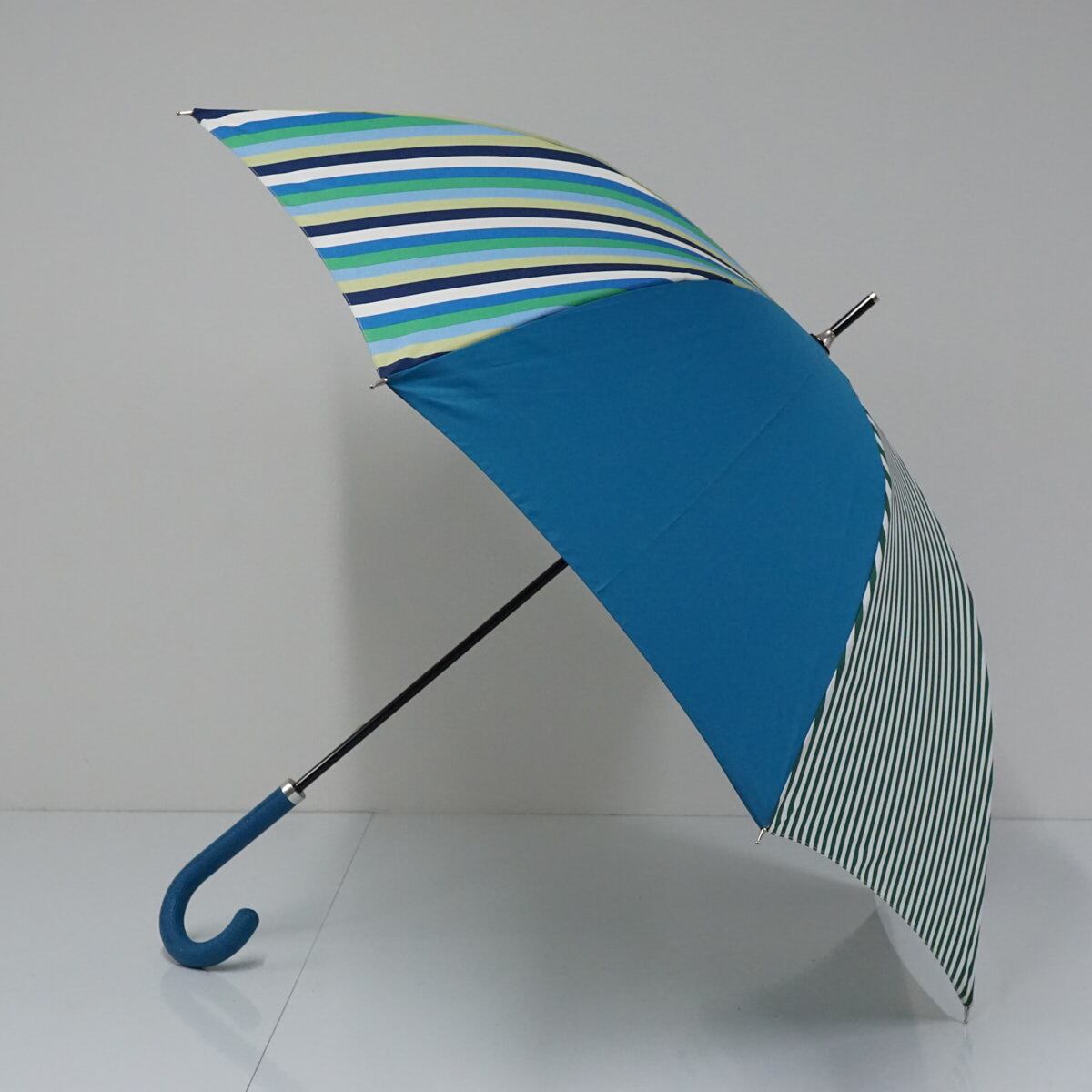 傘の1コマ1コマ異なった色柄のものを組み合わせた張り分けタイプのパターン傘です。