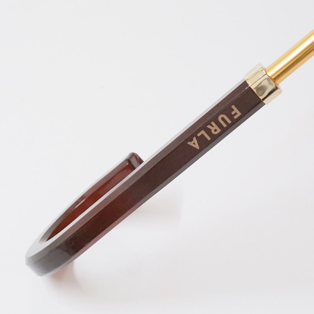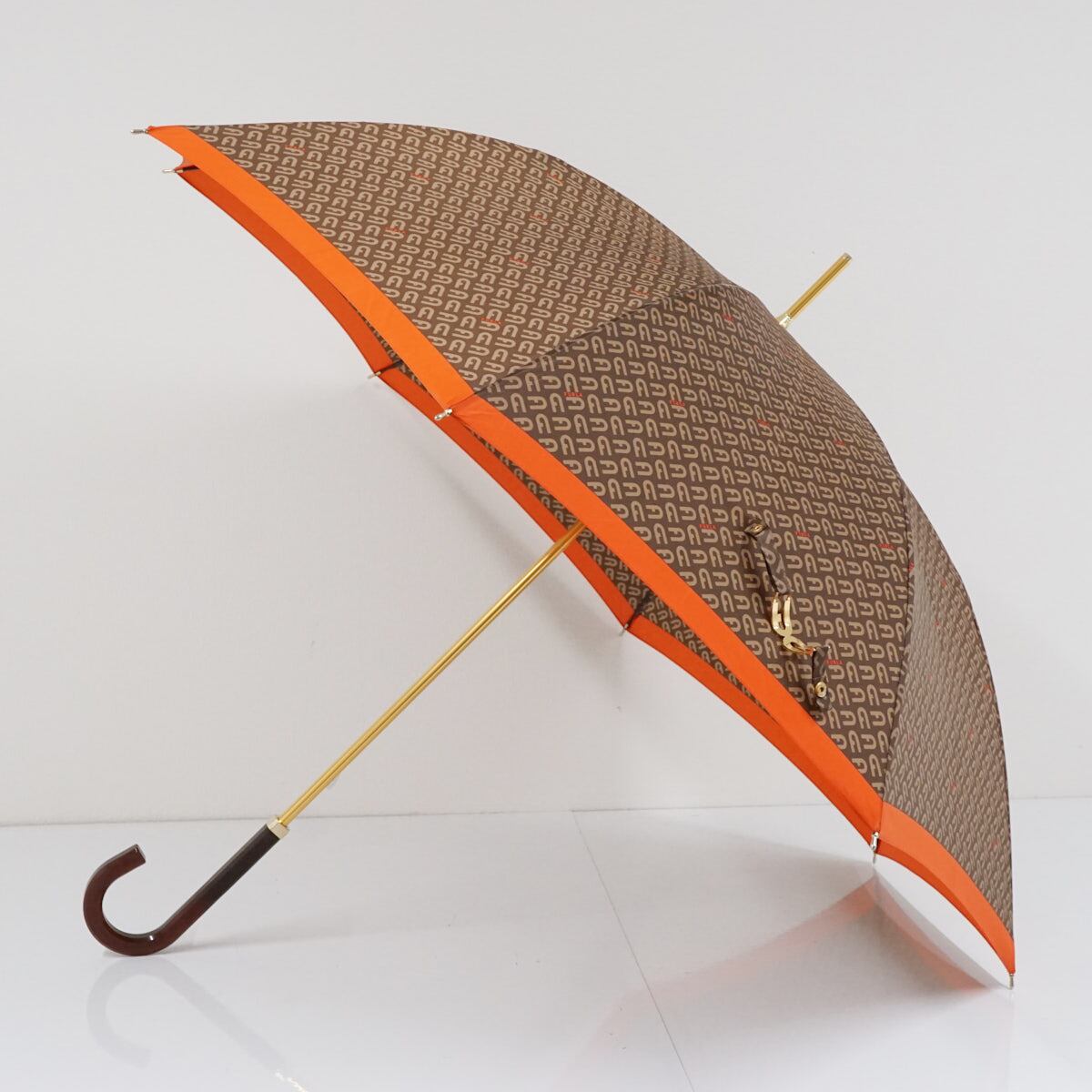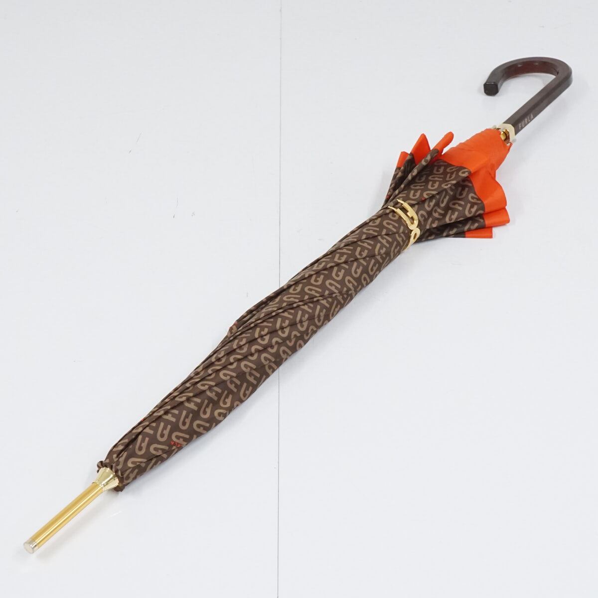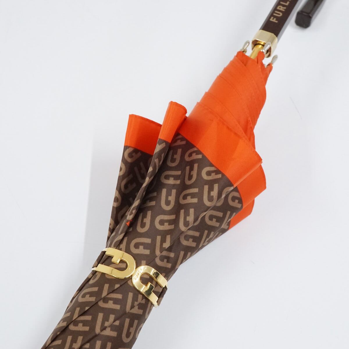 傘 FURLA フルラ USED美品 モノグラムロゴ ブラウン オレンジ 60cm グラス骨 S2761