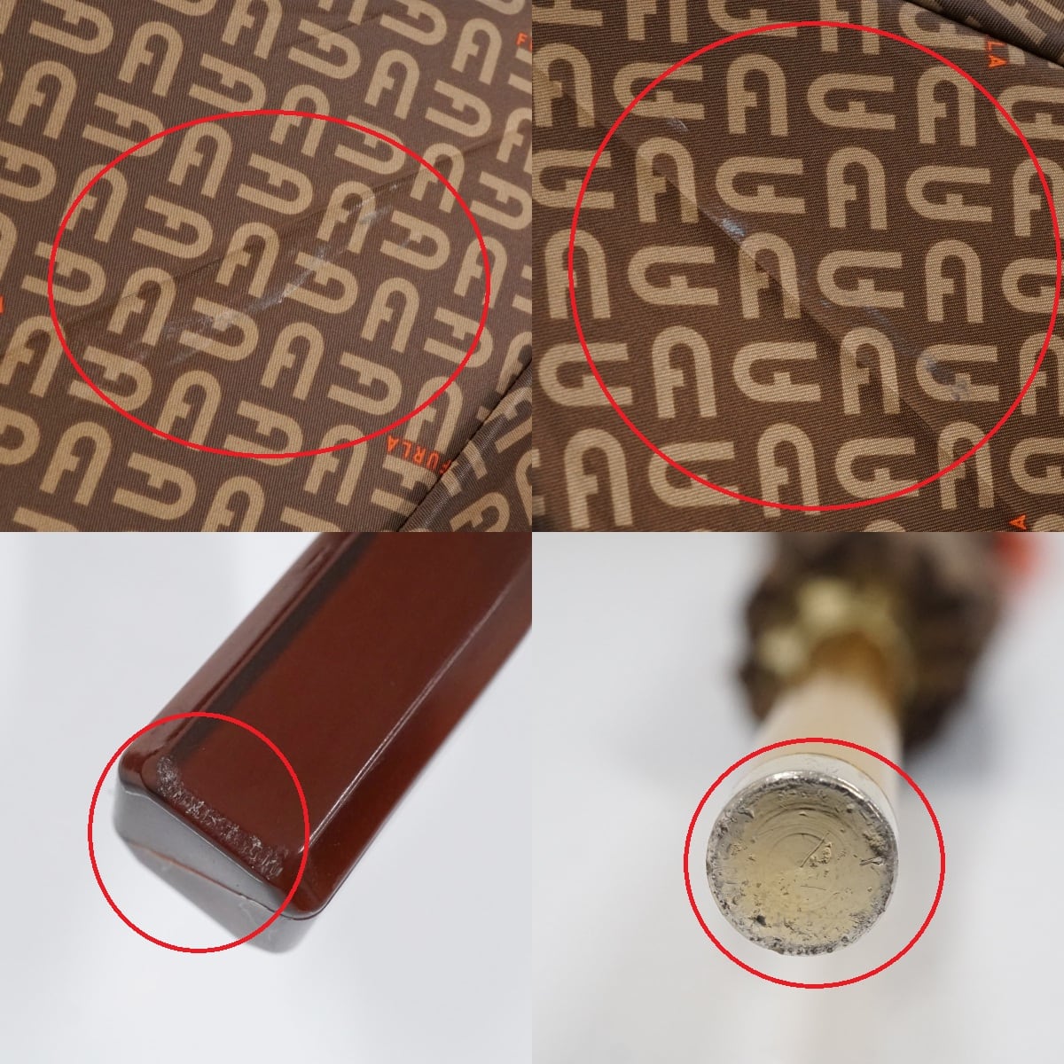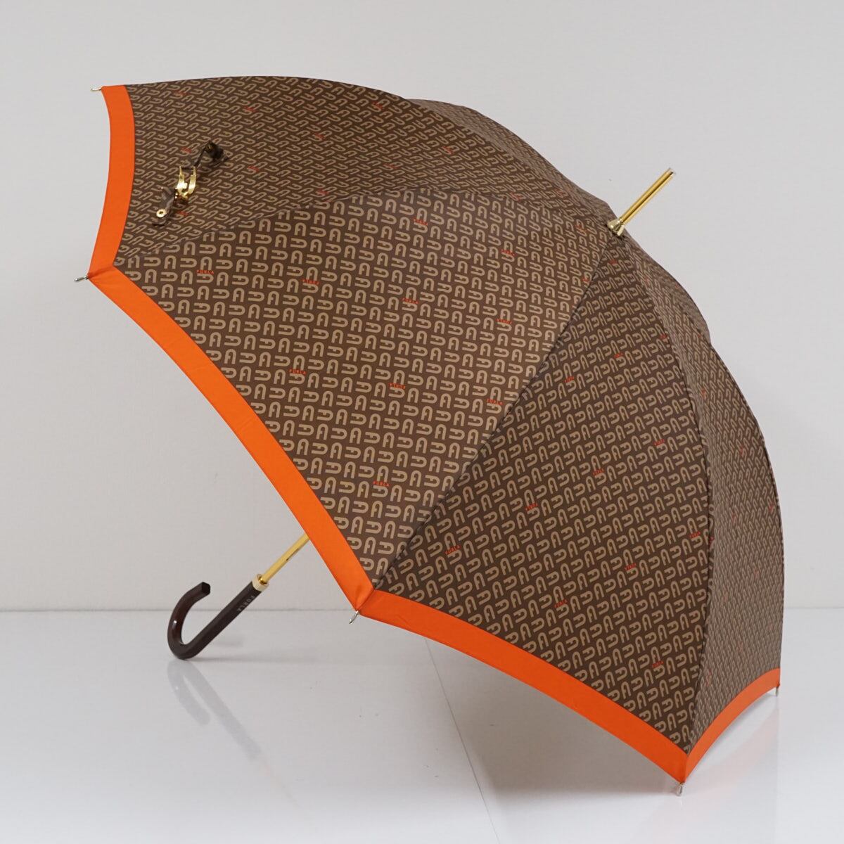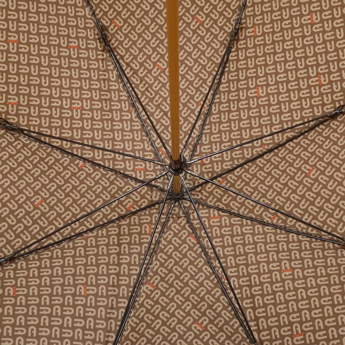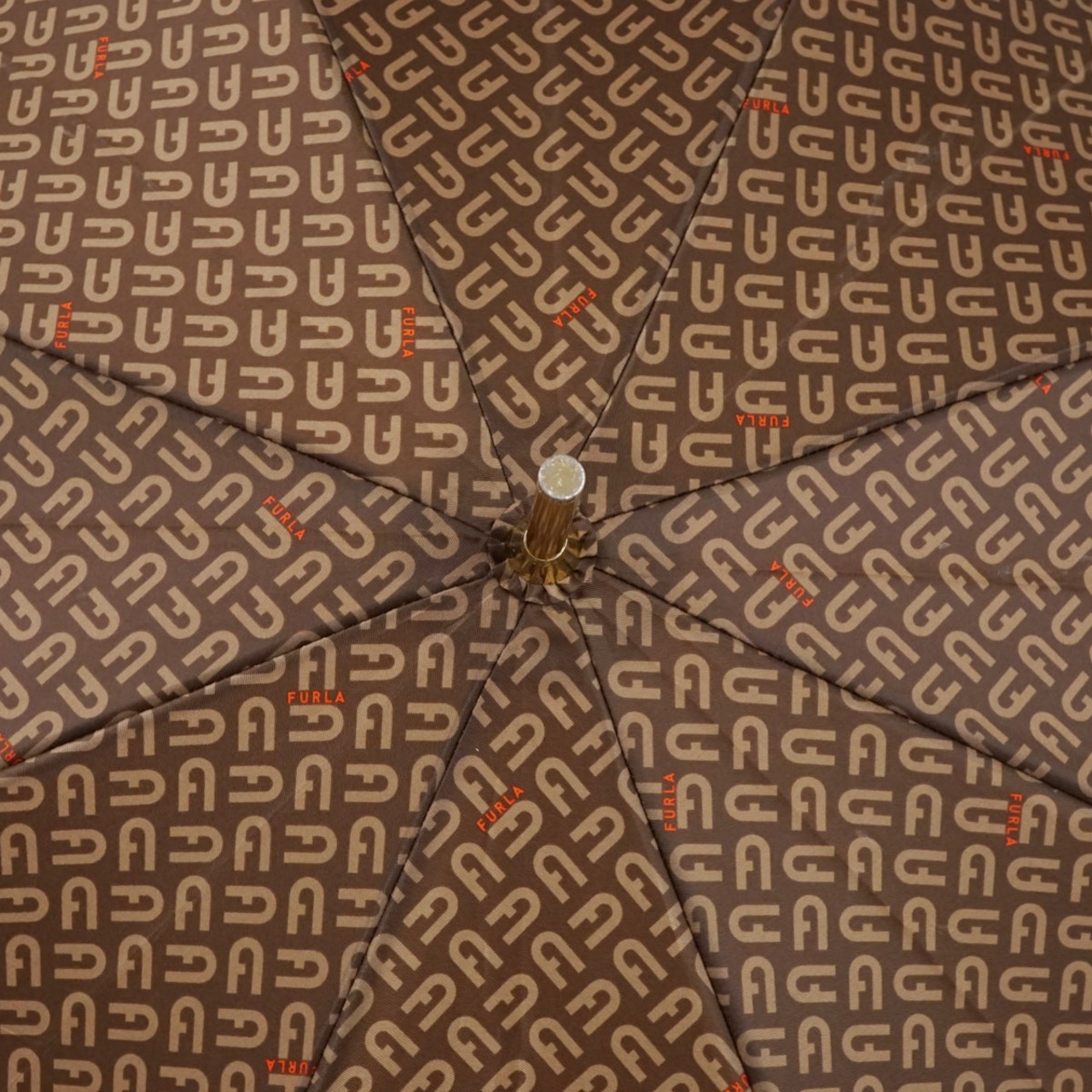 傘 FURLA フルラ USED美品 モノグラムロゴ ブラウン オレンジ 60cm グラス骨 S2761