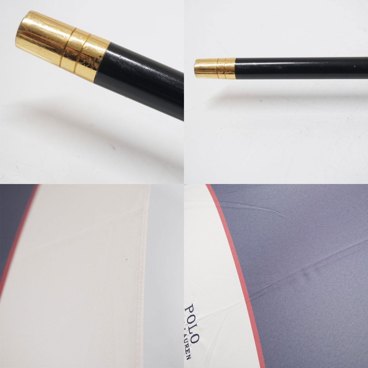傘 POLO RALPH LAUREN ポロ ラルフ ローレン USED品 バイカラー ロゴ刺繍 ブルー×ホワイト グラス骨 軽量 高級 58cm A3094