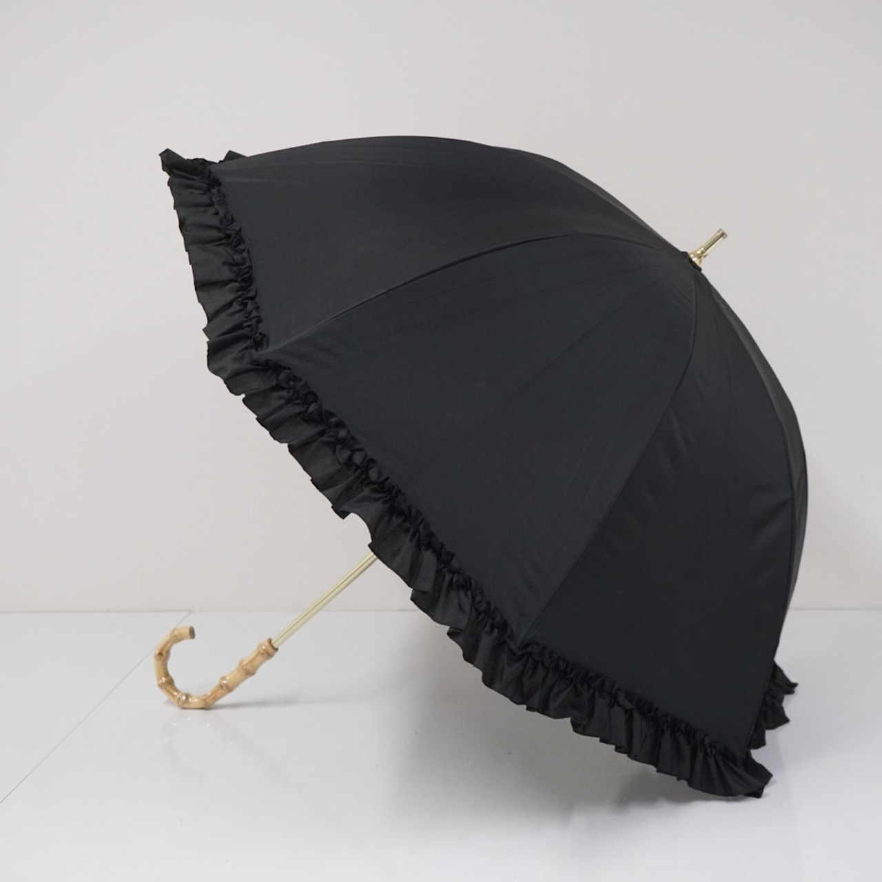 傘 NOEMIE ノエミー ボリュームフリル USED美品 晴雨兼用 ブラック 深張り バンブーハンドル グラス骨 60cm ロリィタ ロリータ B2771