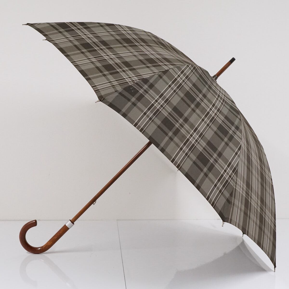 細かなチェックが織り込まれた生地が、大人っぽくスタイリッシュな傘です。