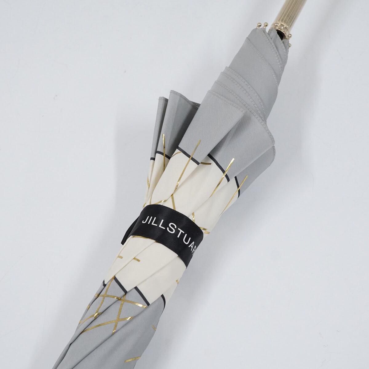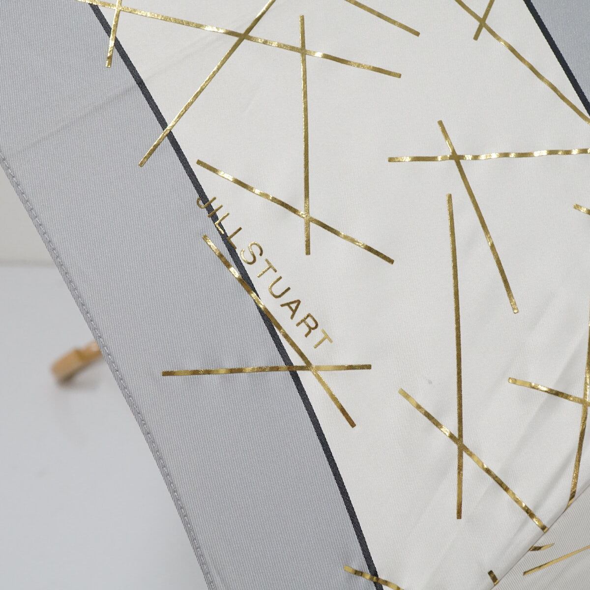 傘 JILLSTUART ジルスチュアート USED美品 グレー 箔プリント グラス骨 ツートン 60cm A2787