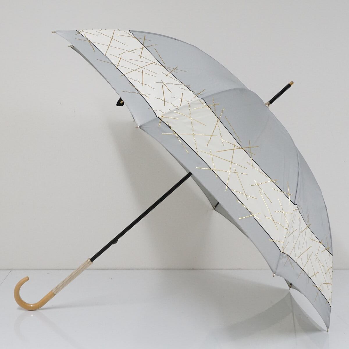 シックなツートンの生地に箔プリントで彩られたアーティスティックなデザインの傘です。