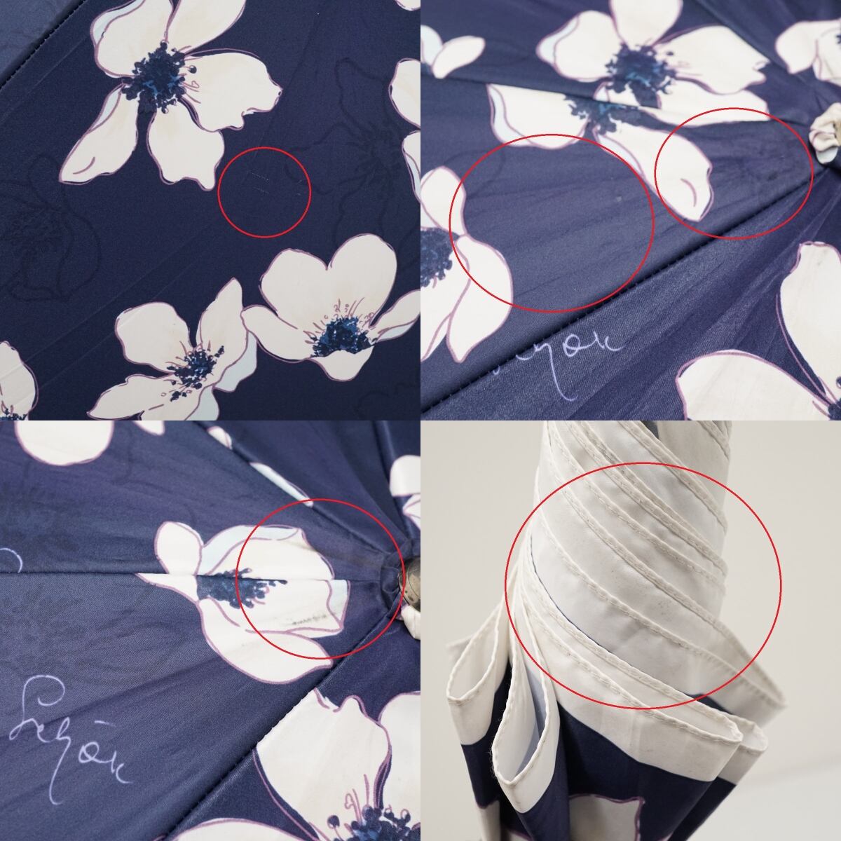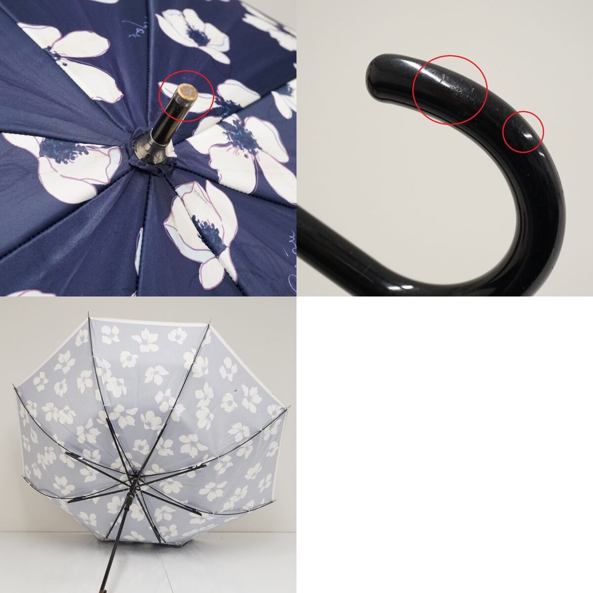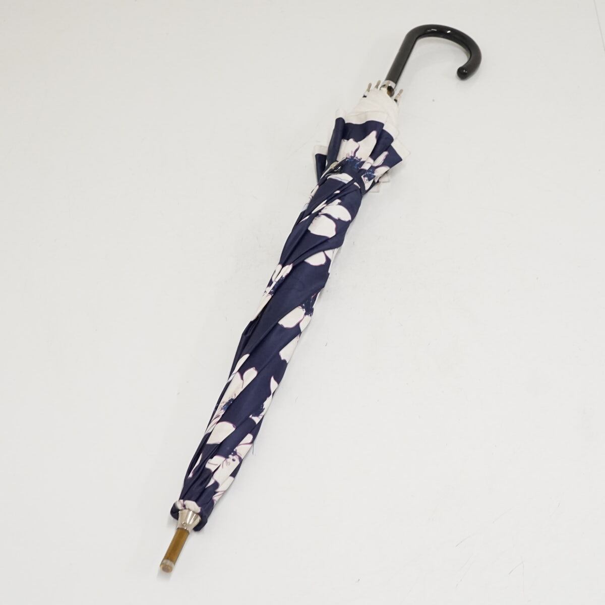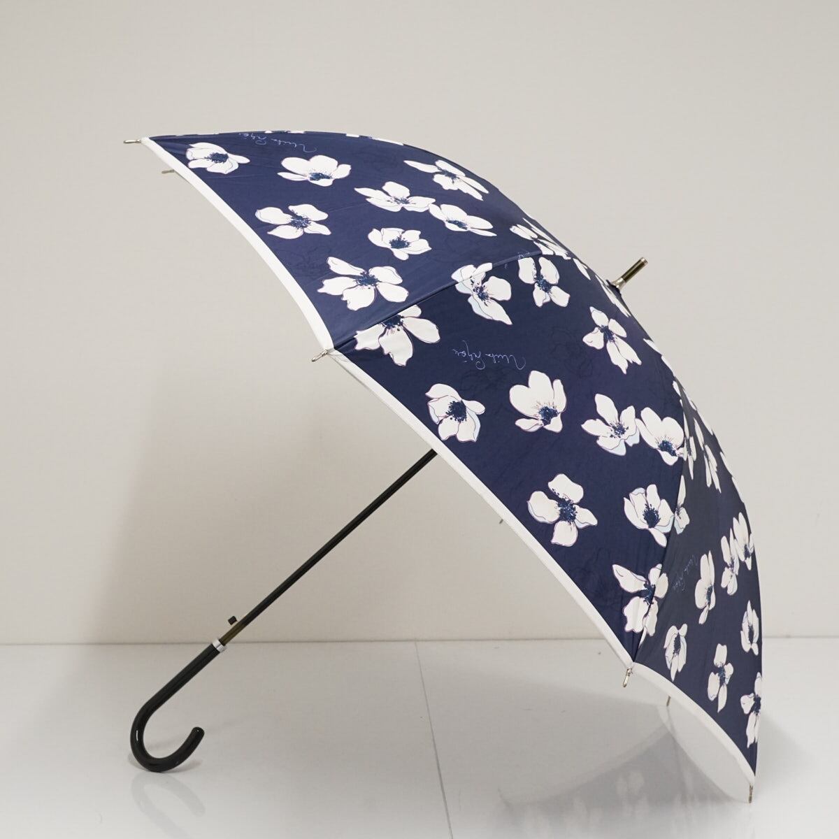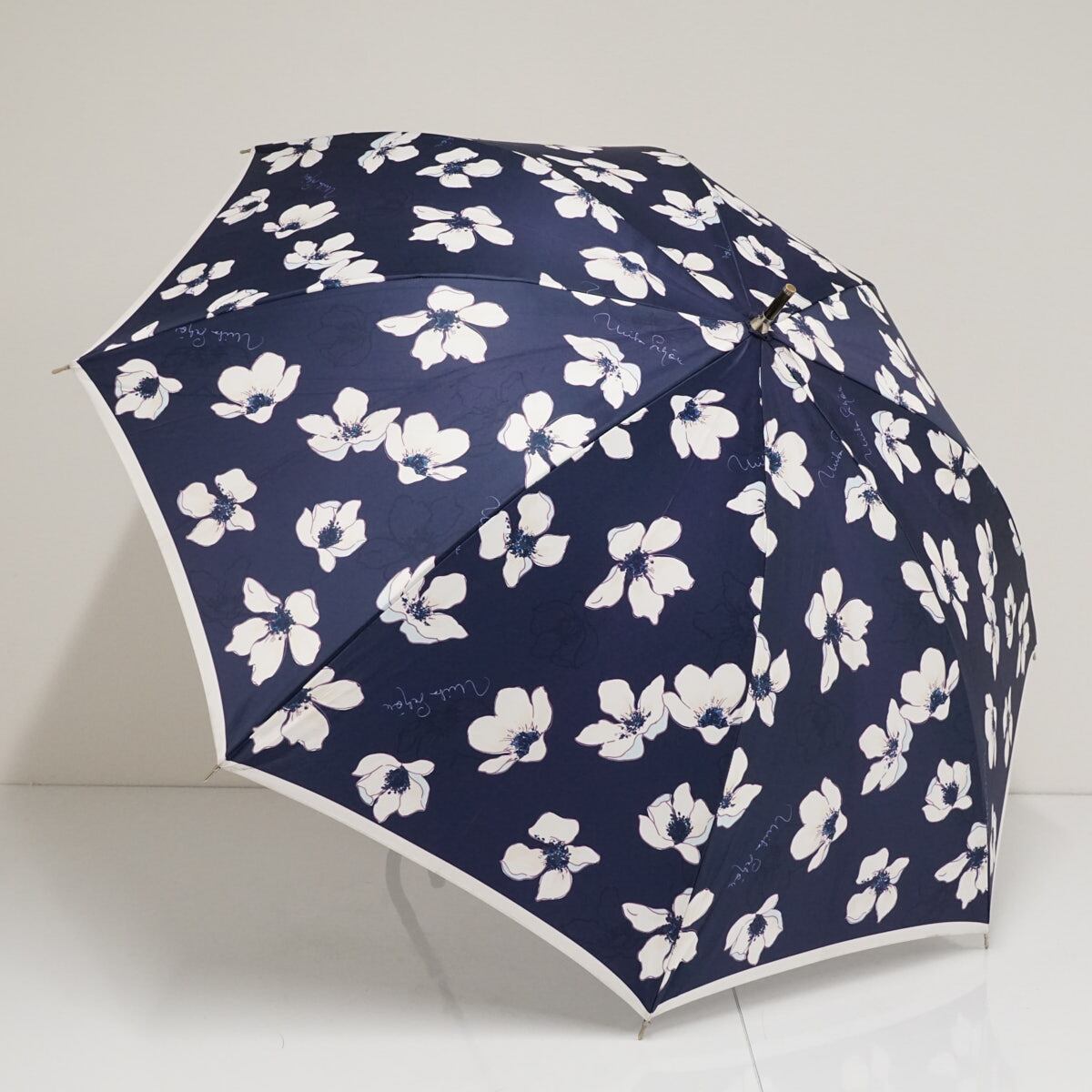 耐風傘 mila schon ミラショーン USED品 フラワープリント 花柄 ロゴ ジャンプ グラス骨 ネイビー 60cm A2779
