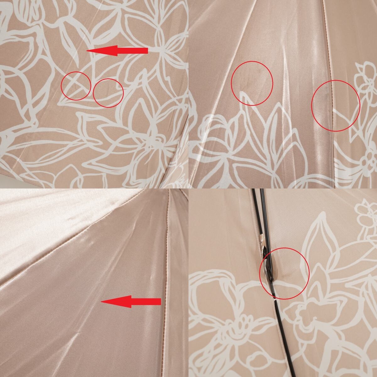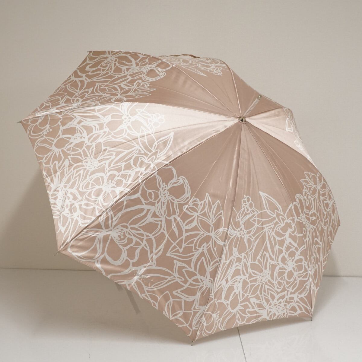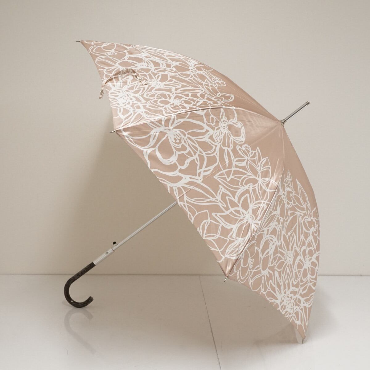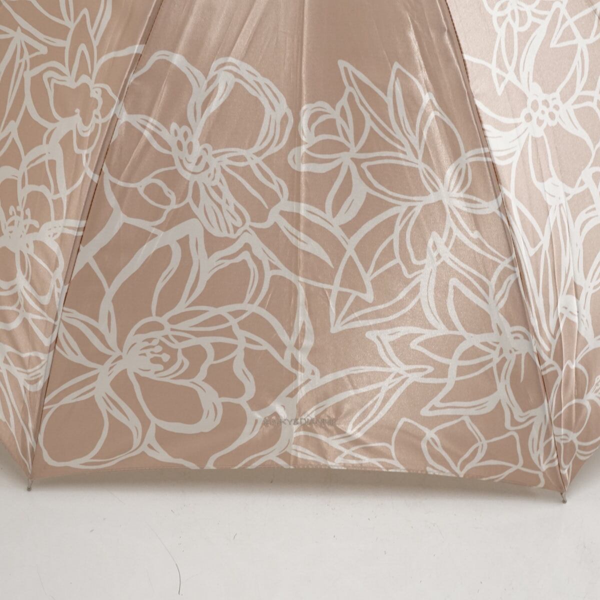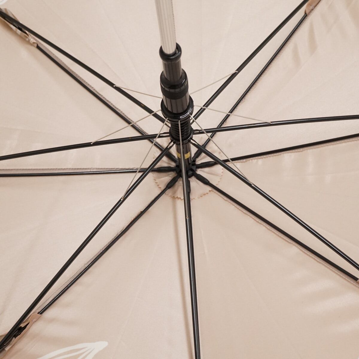 ブランドロゴ刺繍が、傘のデザインを際立たせながらも、さりげないアピールをしています。