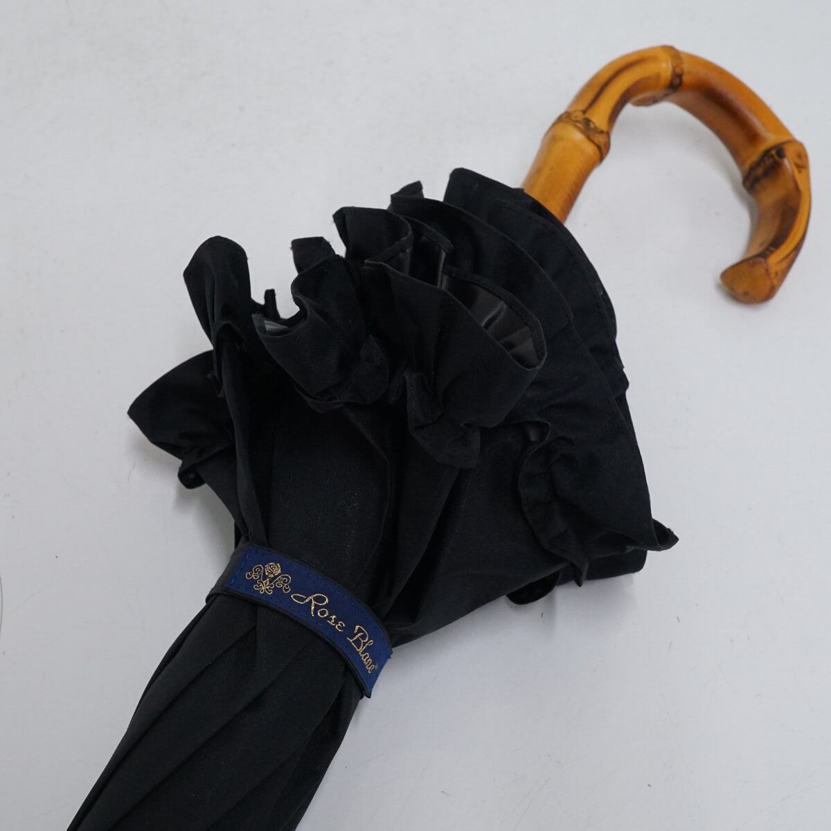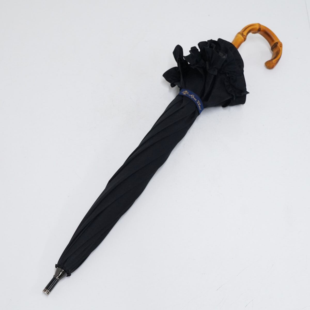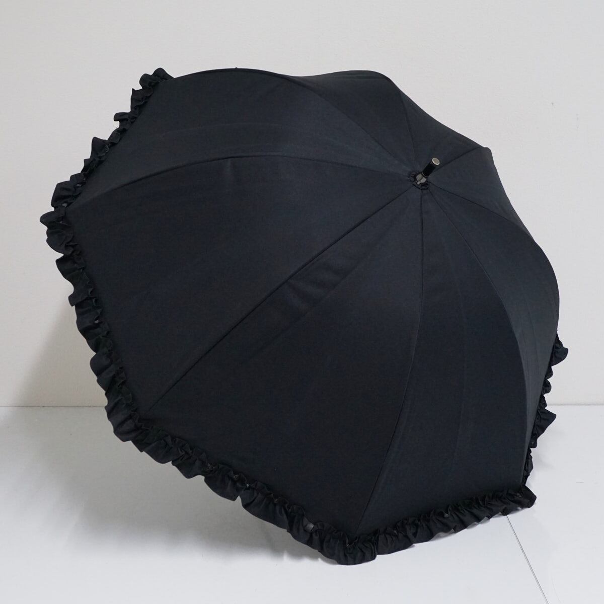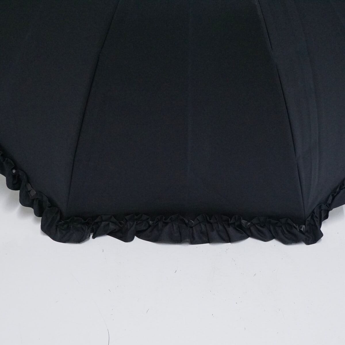 日傘 芦屋ロサブラン USED美品 完全遮光 ショートサイズ シングル フリル ブラック 遮光 遮熱 UV 50cm S2804