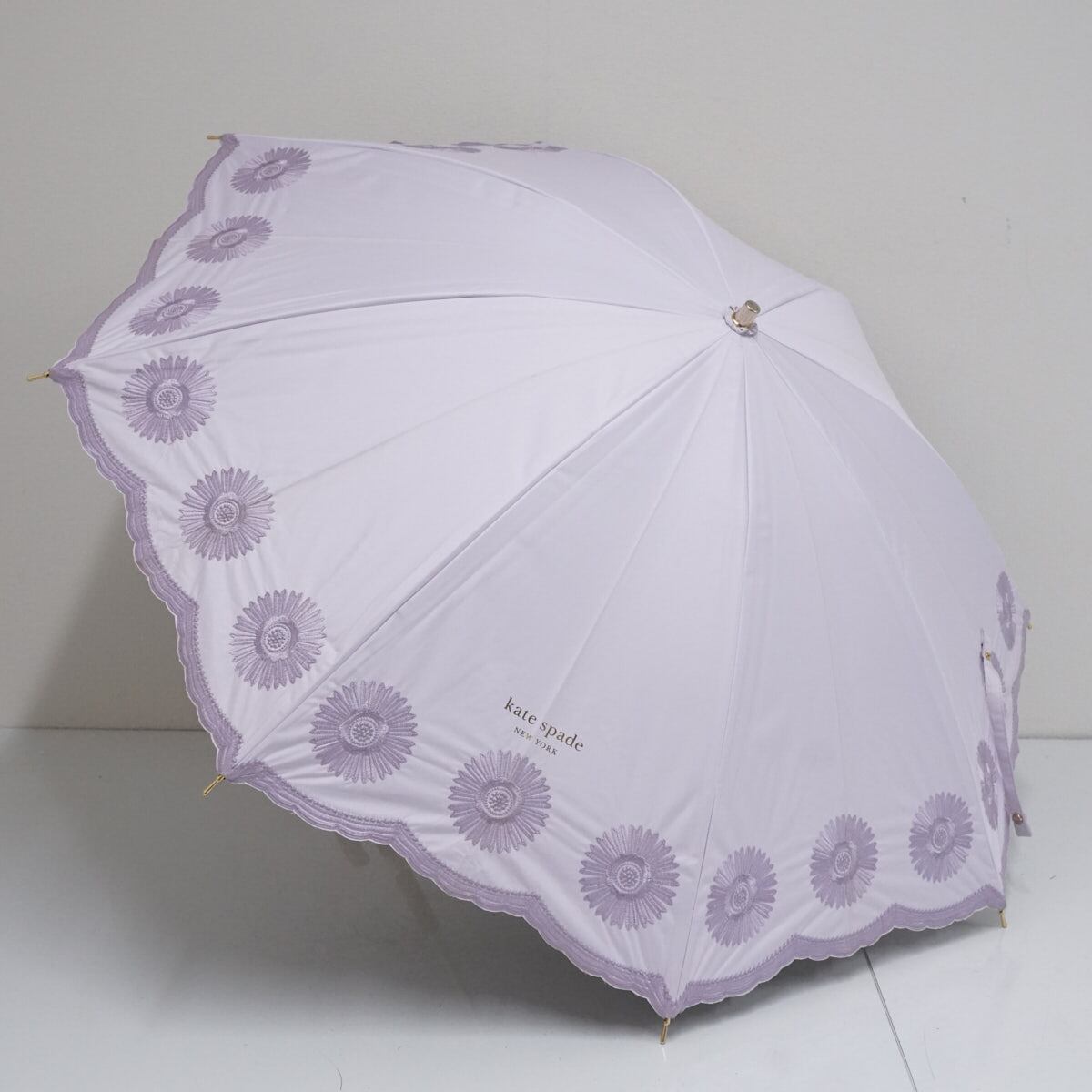 晴雨兼用日傘 Kate spade new york ケイトスペード USED美品 サマーシールドLi 刺繍 フラワー 軽量 ペールピンク 50cm S2807