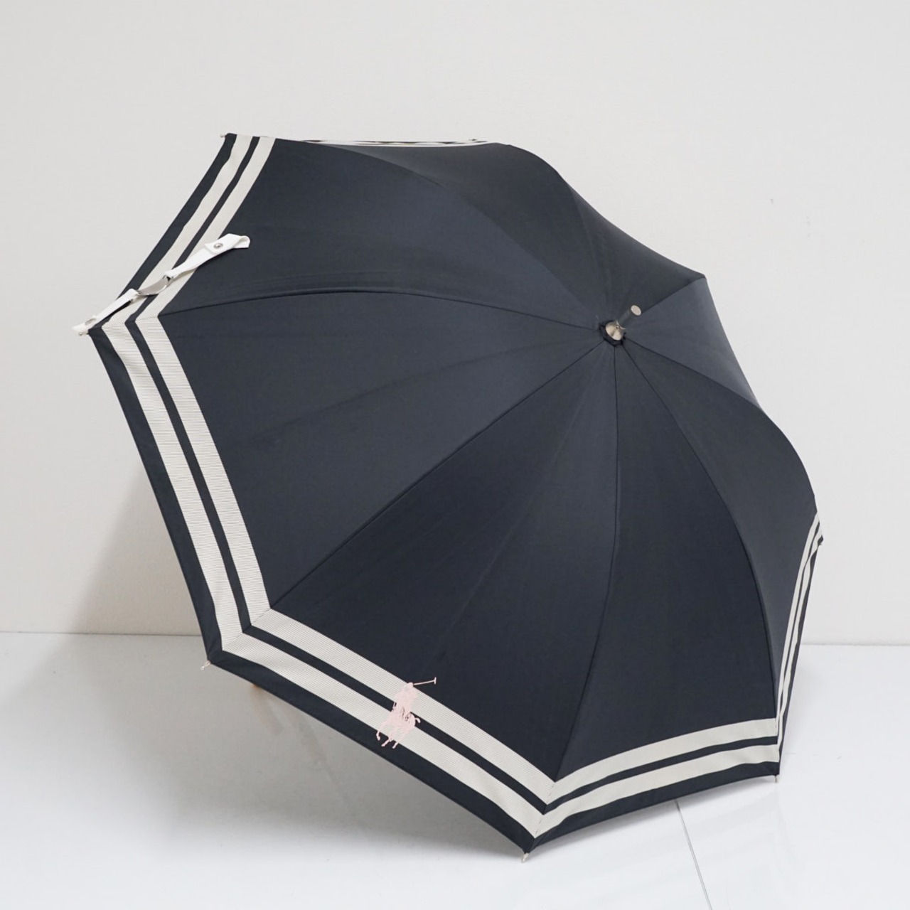 ブラックの生地にボーダーラインをデザインしたシンプルでおしゃれな晴雨兼用日傘です。